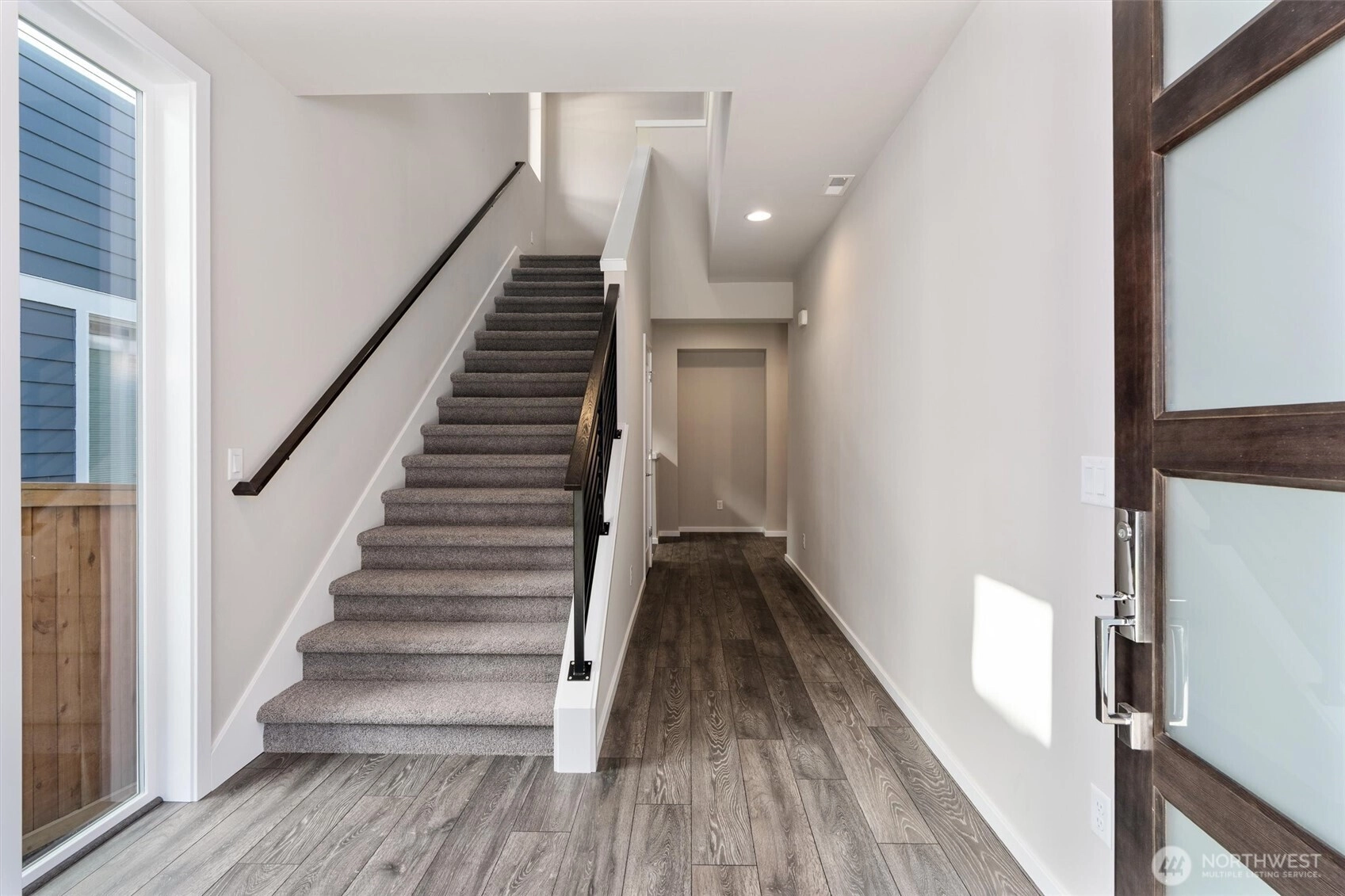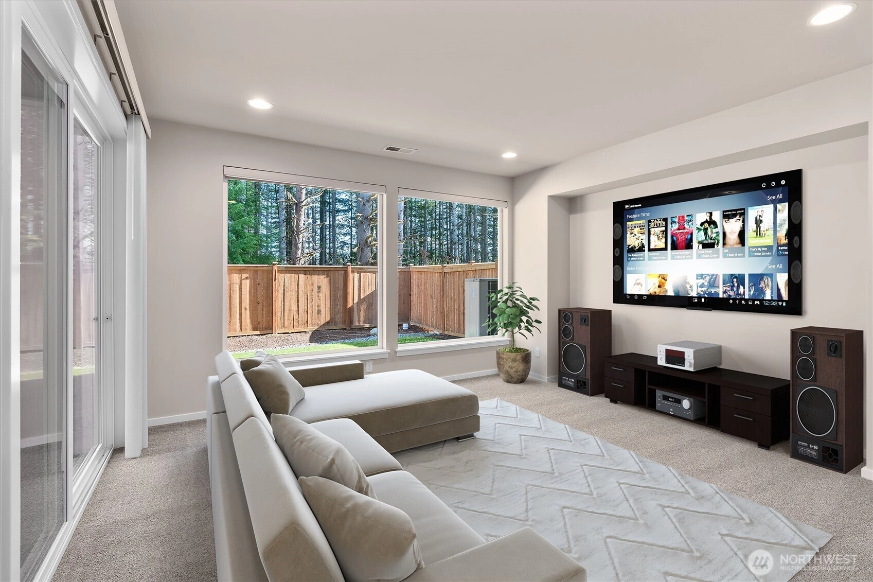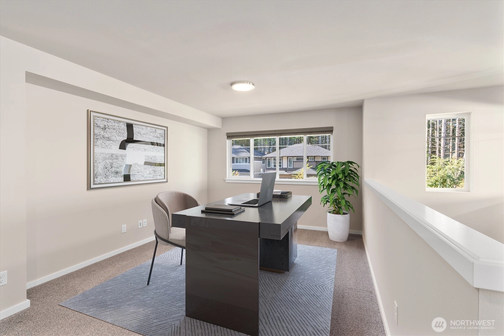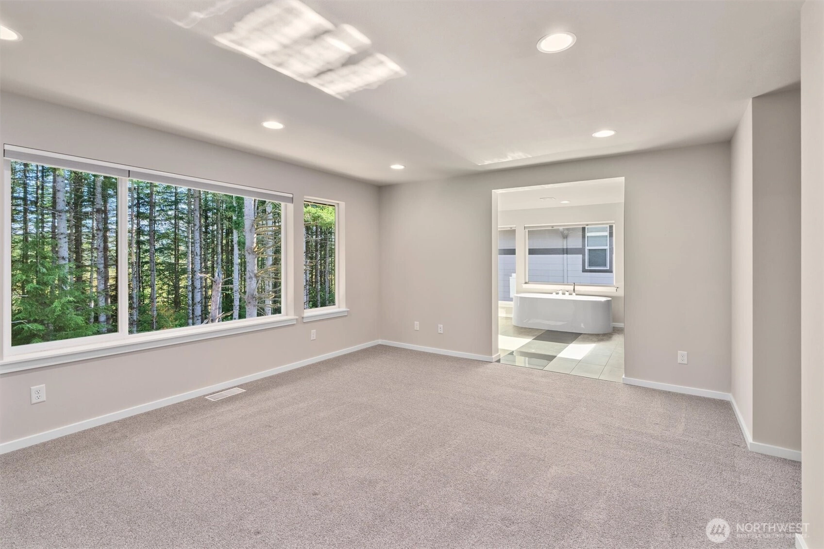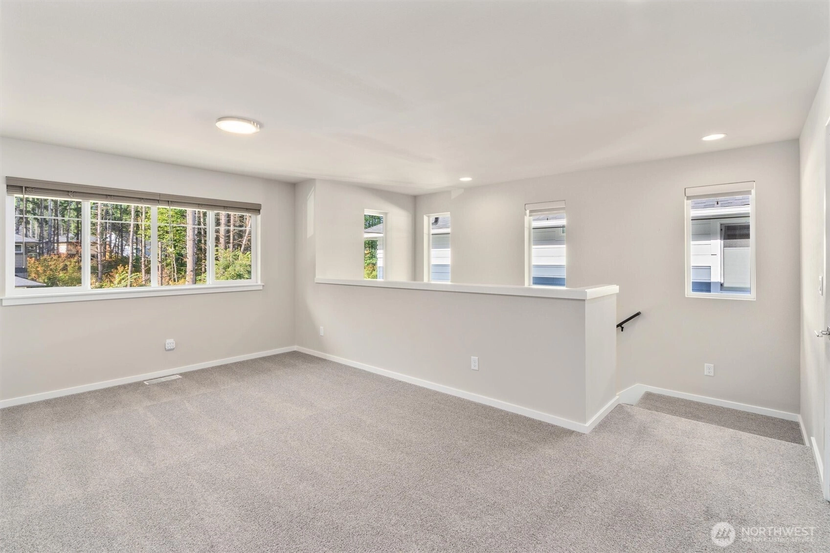 Perfect 4 bed 3.5 bath Home backing greenbelt in Ten Trails. Miles of walking trails accessed a few hundred feet from home. Close to parks. MainVue resale is a three-story basement design. On the main level you’ll feel one with the forest as you look out from the spacious great room: Gourmet kitchen (quartz counters, large pantry, etc), dining room, living room w/ gas fp, & covered deck. Separate entrance on lower-level w/ large bed, full bath, rec room, covered patio & large storage area – home gym? Upstairs sports a large loft area, two secondary beds + the primary w/ huge en suite. Home has AC. HOA covers 1 gig high speed internet & weekly front landscaping. Custom high-quality window coverings. This place is turnkey and ready for you!