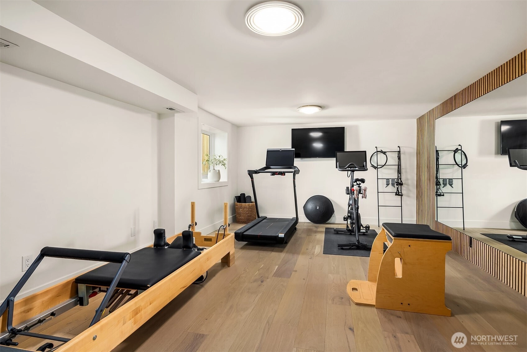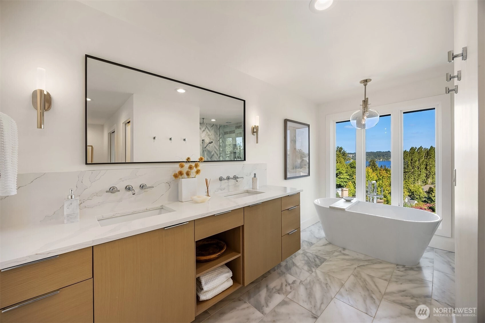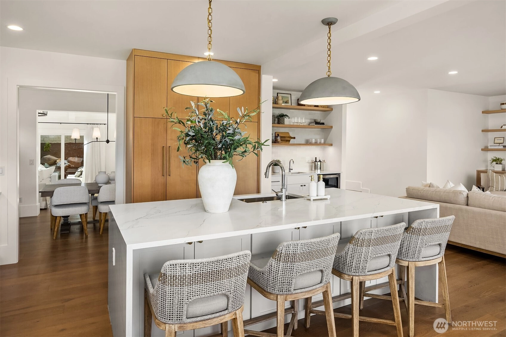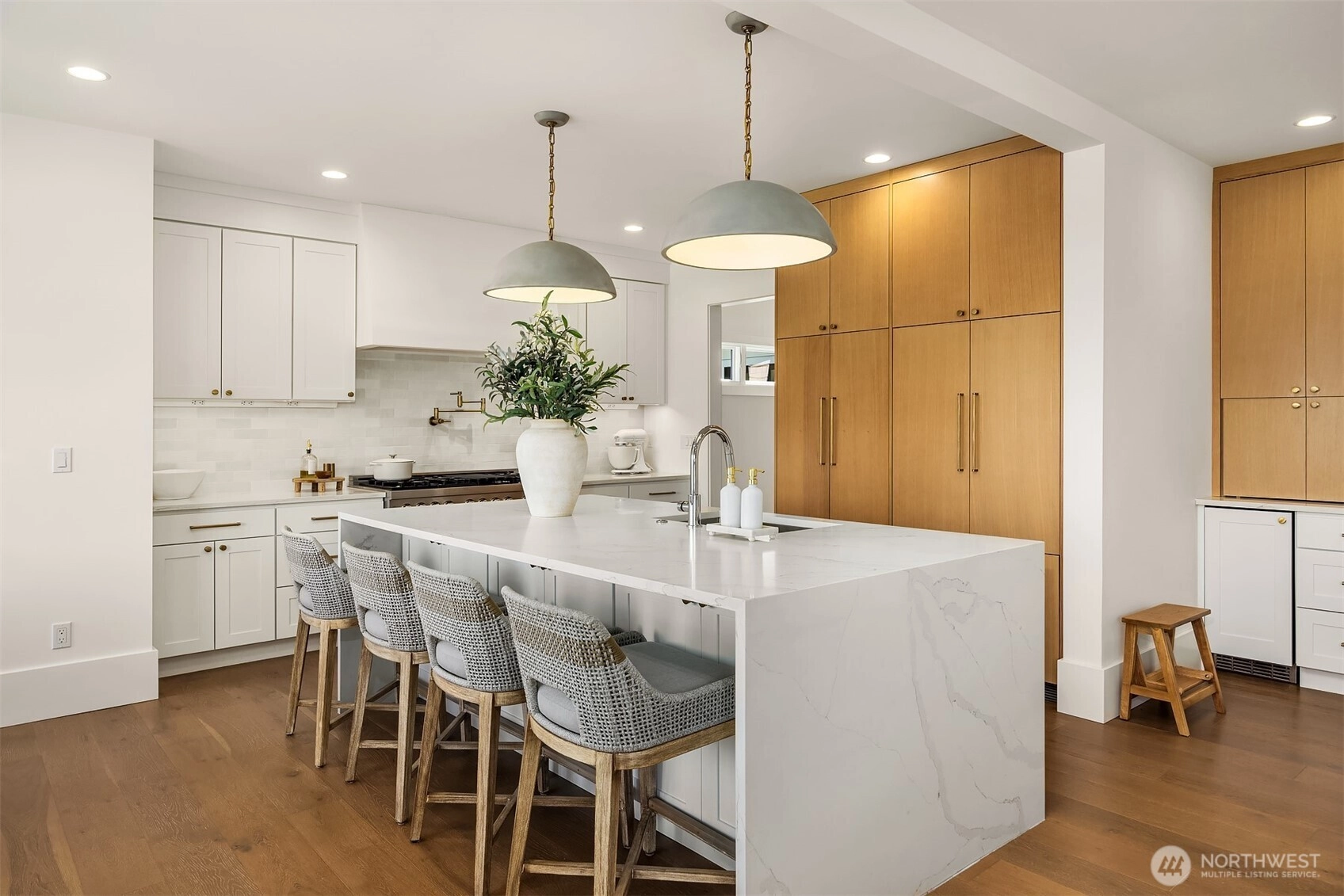 Stunningly renovated thoughtfully designed home catering to the most discerning homeowner. 2-level grand entry, formal living and dining rooms, chef inspired eat-in kitchen with high-end appliances, wet bar and ice maker. Family room with fireplace and large deck off of kitchen. Main floor also boasts 2 bds, 1 full bath, a powder room and door leading to 3-car garage. Expansive primary on the second floor w/5-piece spa like bathroom. Extremely large walk-in closet has it's own washer and dryer. Incredible lower level of home has a family room, a full kitchen, second laundry room (large storage room attached) 2 beds, full bath & exercise studio. Air conditioning, 200V car charger in garage. This home has it all!!