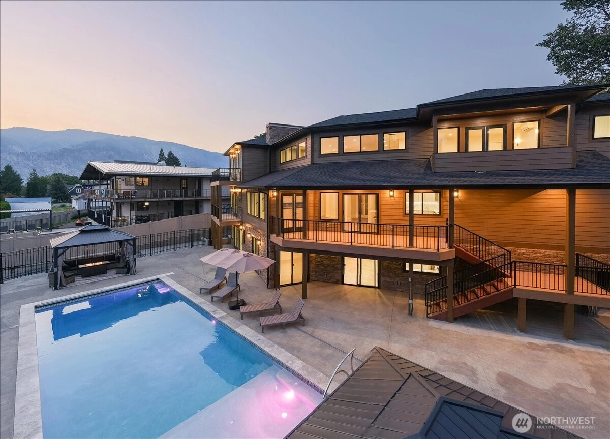 Experience stunning Lake Chelan views from this exceptional 5-bedroom, 6-bathroom home in charming Manson. Just a short walk to the marina, this property boasts spacious living with two kitchens, a media room, and a private pool for ultimate relaxation & entertaining. The secondary living quarters with a separate entrance offer flexibility for guests or extended living. Located in a boutique town known for its friendly community and scenic beauty, this home perfectly blends luxury and comfort. This home is just minutes from many local wineries & eateries. Seven miles from downtown Lake Chelan with great local golf courses & year round activities. Don’t miss the chance to own a piece of paradise with breathtaking views & unbeatable location.