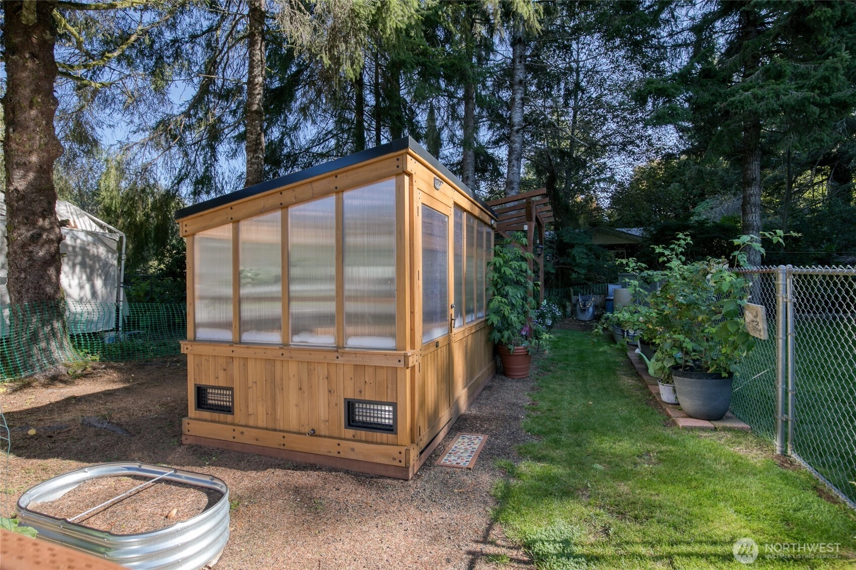 This charming 2-bedroom, 1-bath home has been significantly upgraded for comfort and peace of mind! A Propane Fire place will keep you cozy throughout the winter! Structural reinforcements have been added beneath the home, with 5 steal beams under the kitchen and bathroom. Modern finishes shine throughout—sleek quartz countertops and fresh paint inside and out as well as new gutters and new french drain system. Step outside to your own private oasis featuring a new front porch, covered patio, and a fully fenced yard. The added greenhouse—with its own fan and window—is perfect for plant lovers, while the inviting sitting area offers the ideal place to relax and unwind. Move-in ready and beautifully maintained and RIGHT next to the beach!