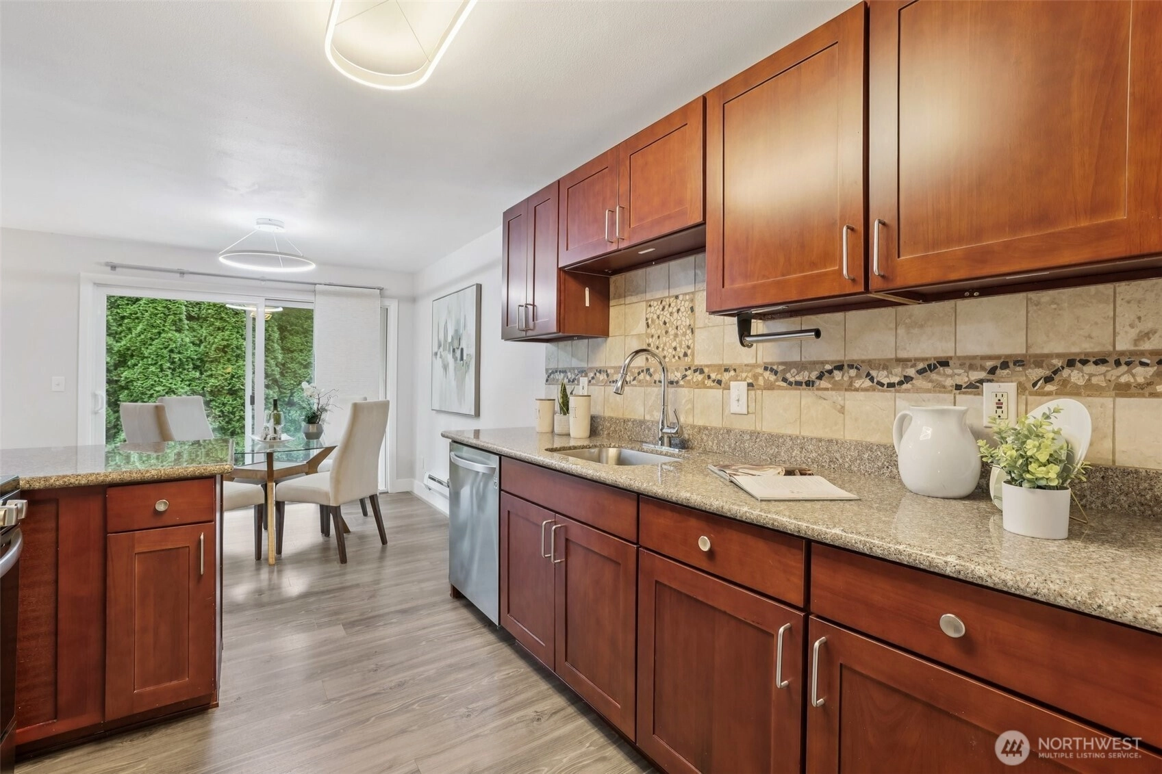 Your gateway to Bellevue living—stylish, connected & surrounded by the Eastside’s thriving tech & lifestyle scene. This refreshed 2-bedroom at Heatherstone shines w/ LVP floors, fresh paint, maple cabinetry, slab granite counters, in-unit W/D, picture windows & a cozy fireplace. Sip coffee on your private patio w/ tranquil views of lush landscaped grounds & the pool just steps away. Sought-after, well-managed community provides plentiful parking & low HOA dues that include water, sewer & garbage. Nestled in a quiet community, yet moments from 520/405/I-90, Microsoft, T-Mobile, Meta, & Bellevue’s best restaurants & shopping w/ Lake Sammamish & parks nearby for outdoor adventures—this home perfectly blends comfort, convenience & lifestyle.