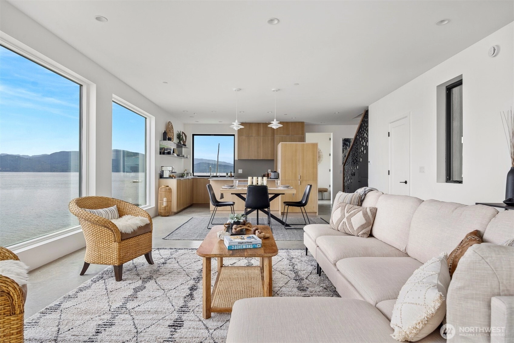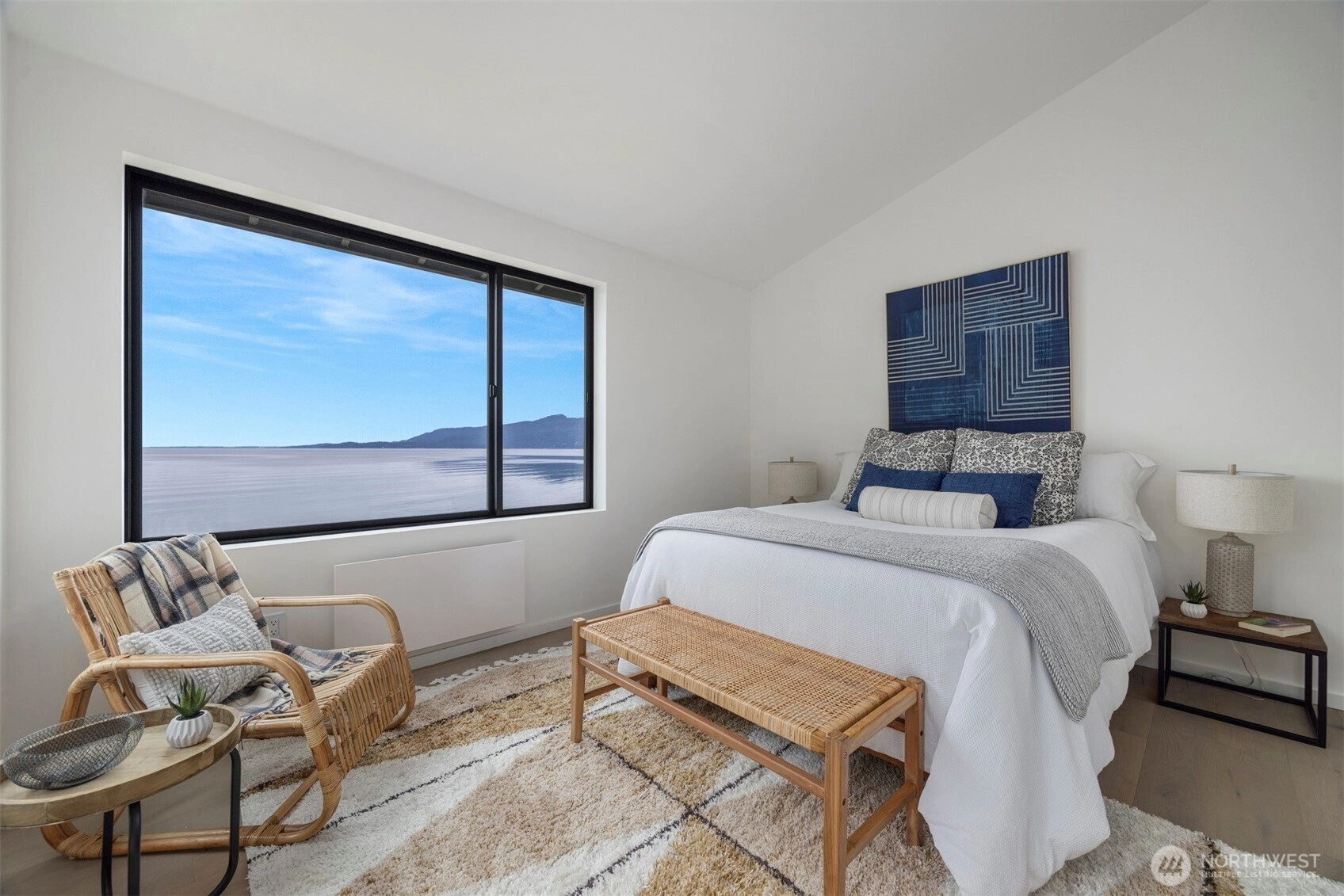 Attention - NEW PRICE!! Exquisite water views & natural light flood this architect-designed modern home set on 130' of waterfront. Featuring bespoke railings, polished concrete floors, custom cabinetry & gourmet kitchen w/ Mt. Baker views, this property blends unique style & comfort. Every bedroom offers panoramic sunrise views over the bay & the spa-inspired walk-in steam shower is a true retreat. A low-maintenance exterior allows for more time enjoying the flat, sunny yard or relaxing by the water. Direct access to kayaking, clamming & crabbing makes this an outdoor enthusiast’s dream. Just 10 minutes to Edison/Bow restaurants & galleries;1.5 hours from Seattle & no ferry required, this home is the ideal weekend retreat or full time home!