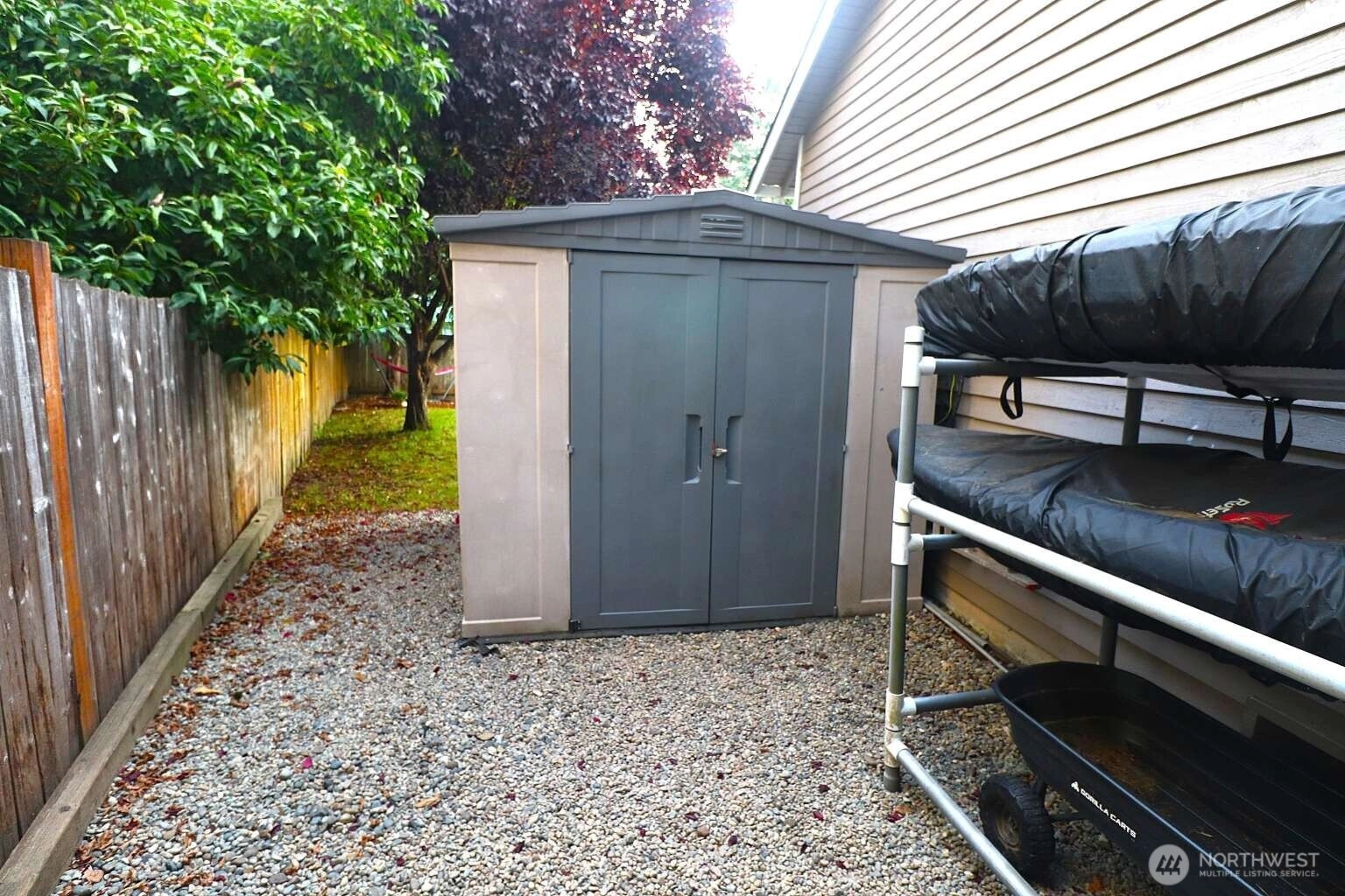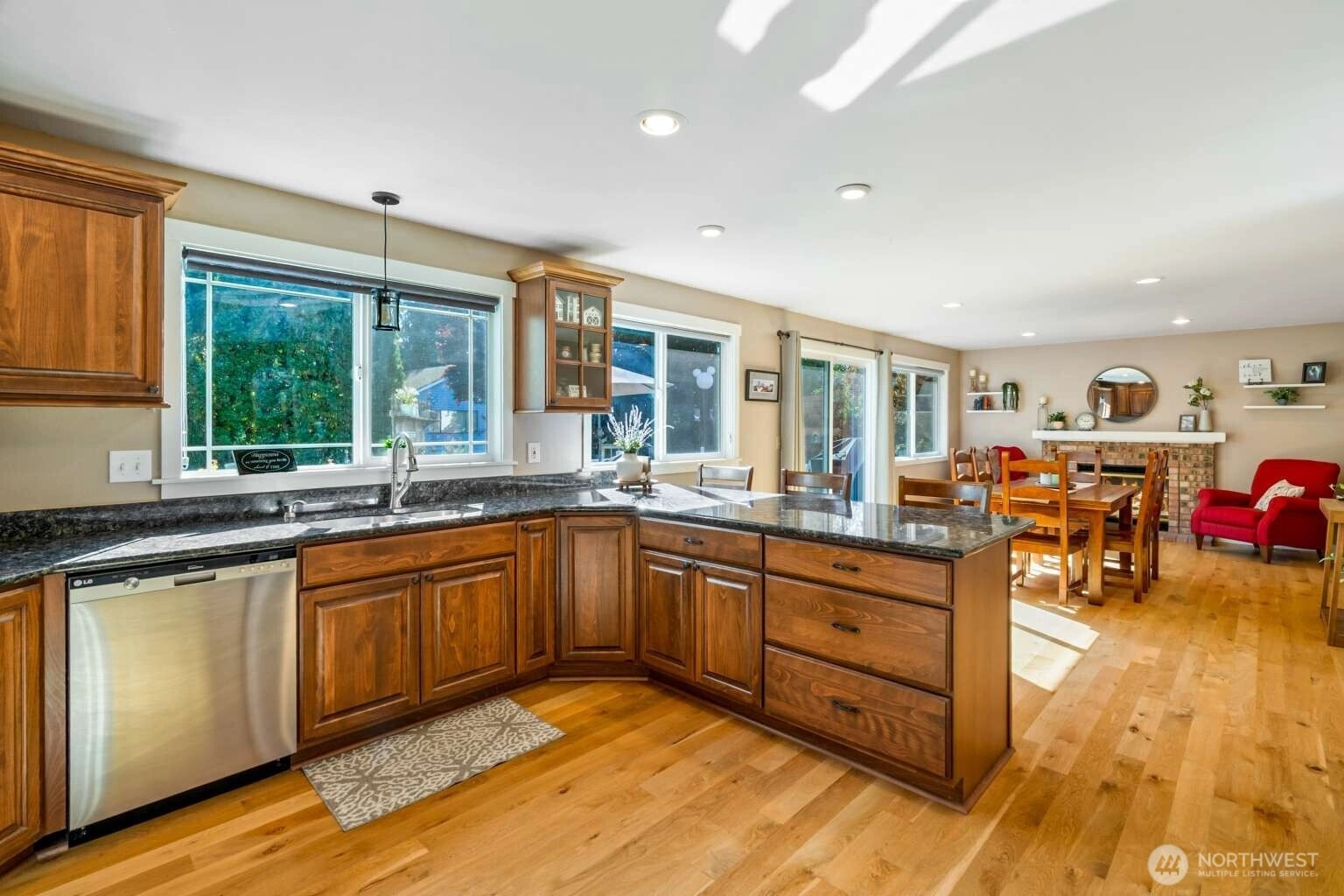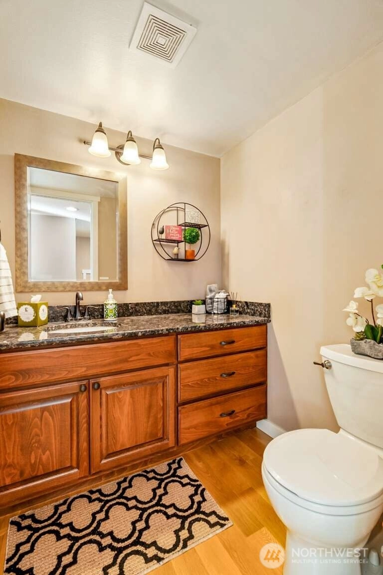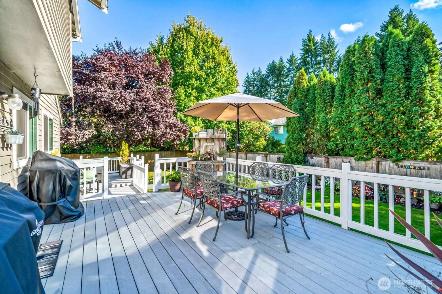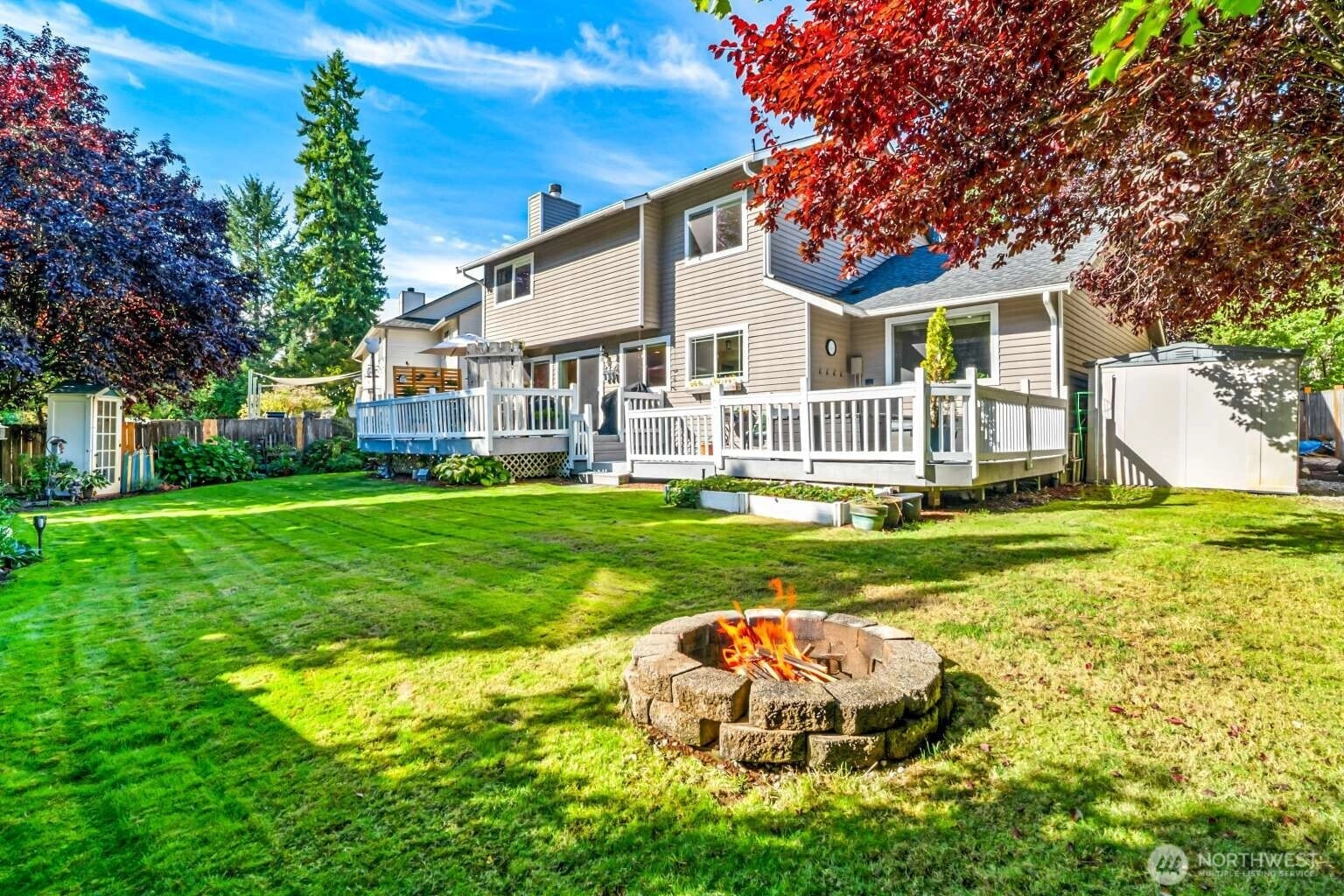 Beautifully maintained 4 bed, 2.5 bath home in the desirable Forest Trails neighborhood! Inviting living room features vaulted ceilings and cozy free-standing gas stove. Rich hardwood floors. Fully updated kitchen features granite countertops, Hunter cabinets, and stainless appliances, perfect for entertaining. The spacious primary suite offers a walk-in closet. Dual-pane windows, composite roof and a new aggregate driveway adds instant curb appeal. Enjoy a beautiful fully-fenced backyard with extended deck, hot tub, and fire pit—ideal for outdoor gatherings. A spacious 2-car garage features abundant storage and just minutes away to shopping with a surplus of outdoor trails nearby. Don't miss this gem!