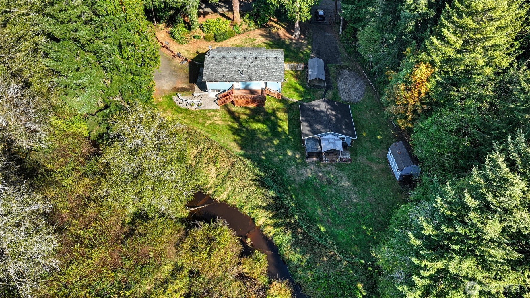 Tucked away on 1.75 peaceful acres, this beautifully maintained 4-bedroom, 2-bath home & 1-bedroom detached ADU for multi-generational needs, guests, or hobbies feels like your own private retreat. Enjoy the soothing sounds of the creek, unwind in the saltwater hot tub, or relax in the sauna after a long day. The huge, updated country kitchen w/granite & stainless is perfect for cooking, canning & gathering. With plenty of space for your RV—including 50-amp power and septic hookup—this property combines comfort, privacy, & practicality in one serene, nature-filled setting. Located just 30 minutes from I-5, and 1.5 hours from Ocean Shores, you'll find a comfortable commute to work or ... clamming & kites? Freshly painted & ready to go!
