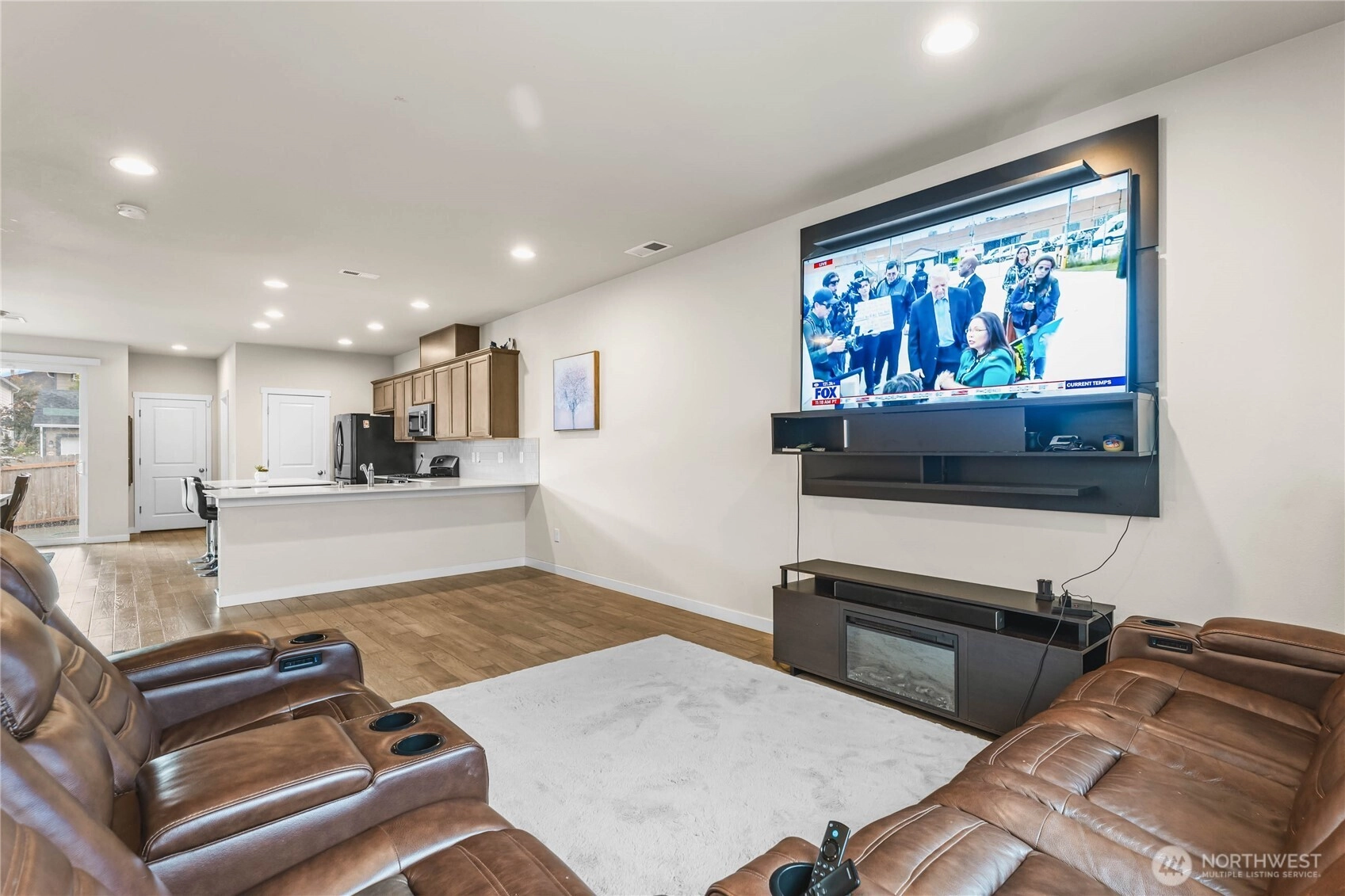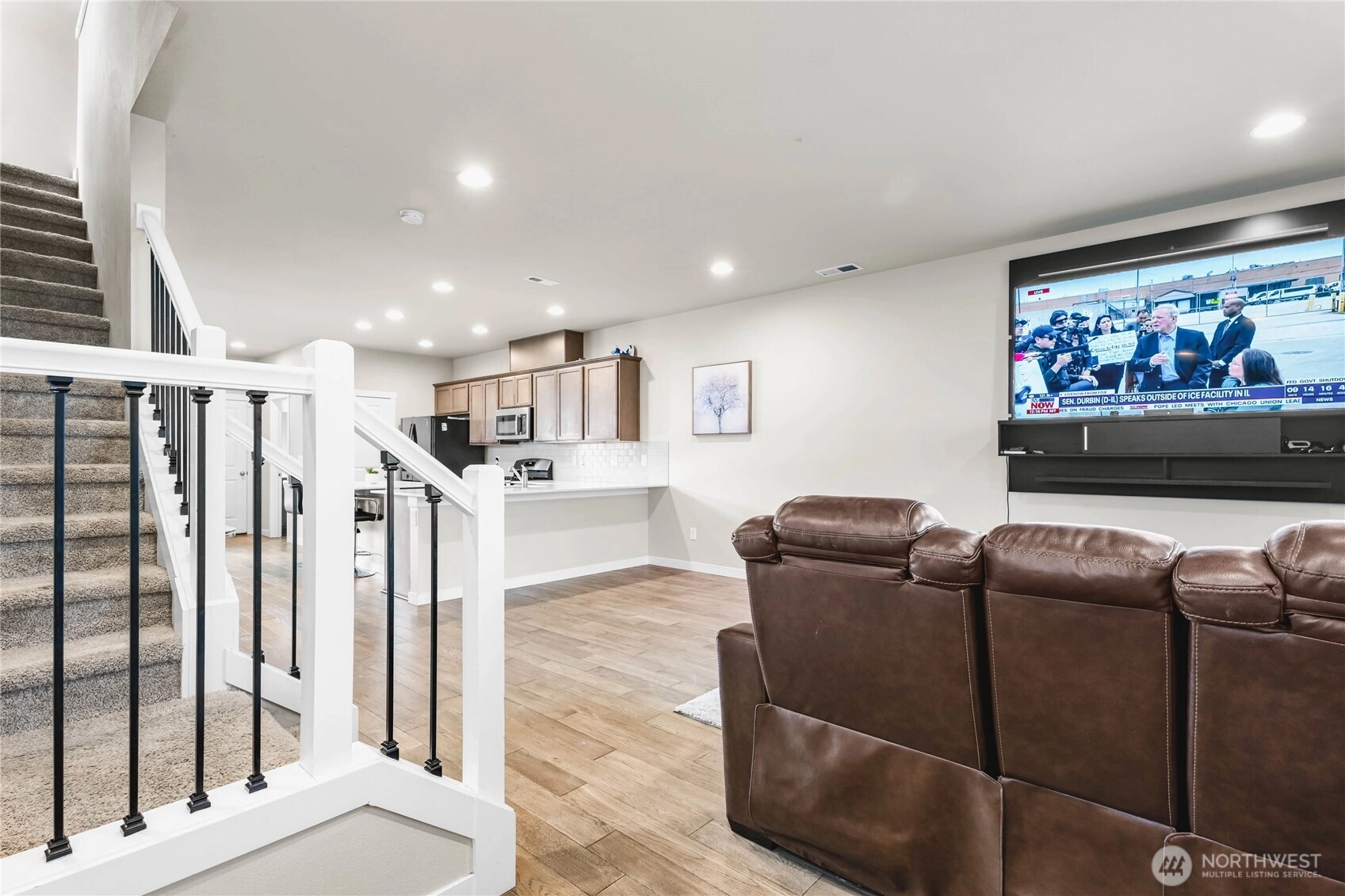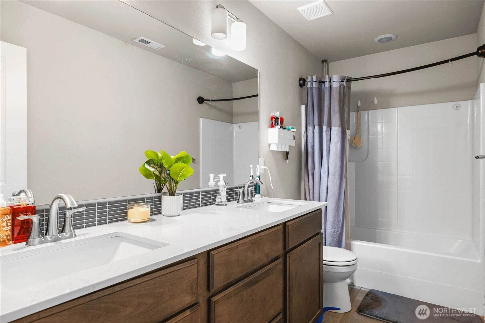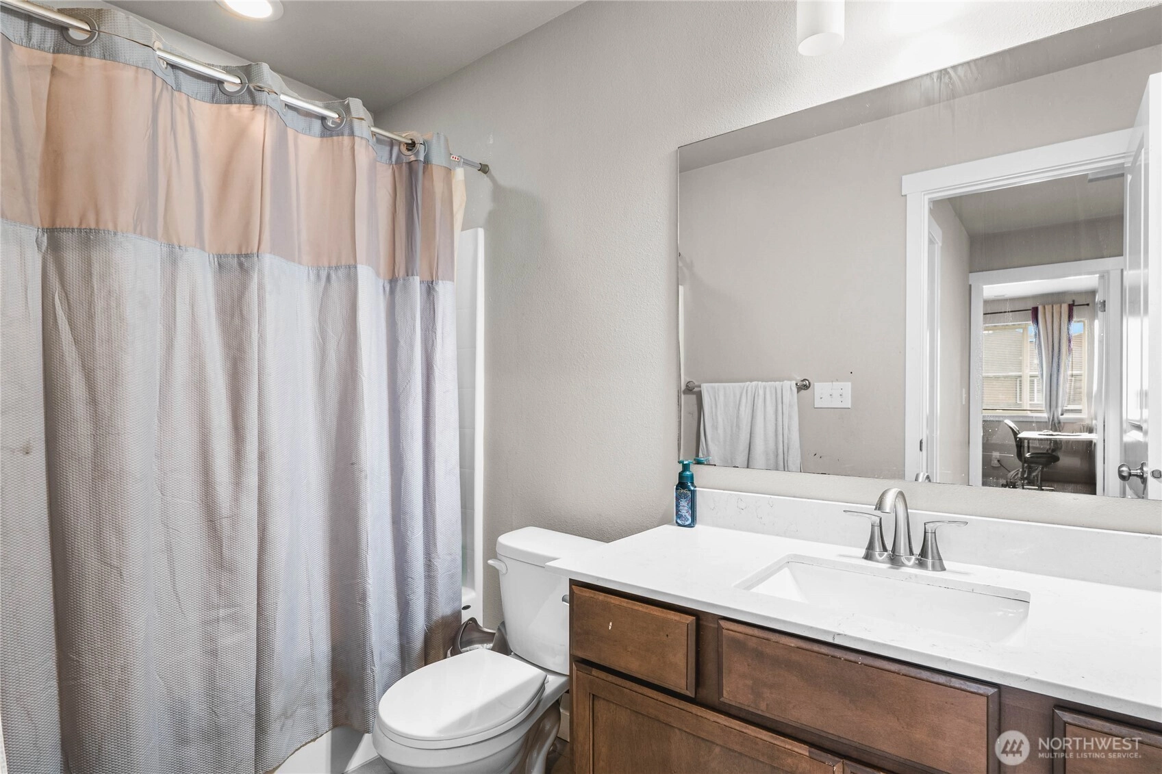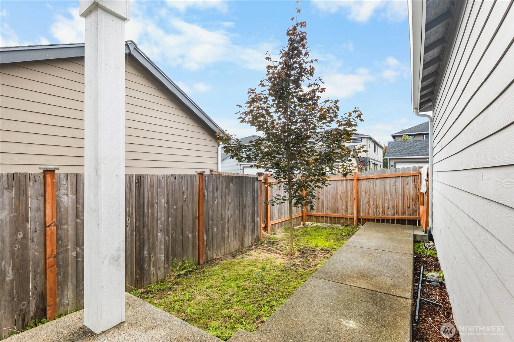 Beautifully maintained with engineered hardwoods and curated finishes. The open kitchen features quartz counters, wood cabinets, stainless appliances, and a dining bar. Dining area opens to the patio with fully fenced side yard. Upstairs you will find the primary suite with private bath and two more spacious bedrooms. Utility room also conveniently located upstairs. No HOA!