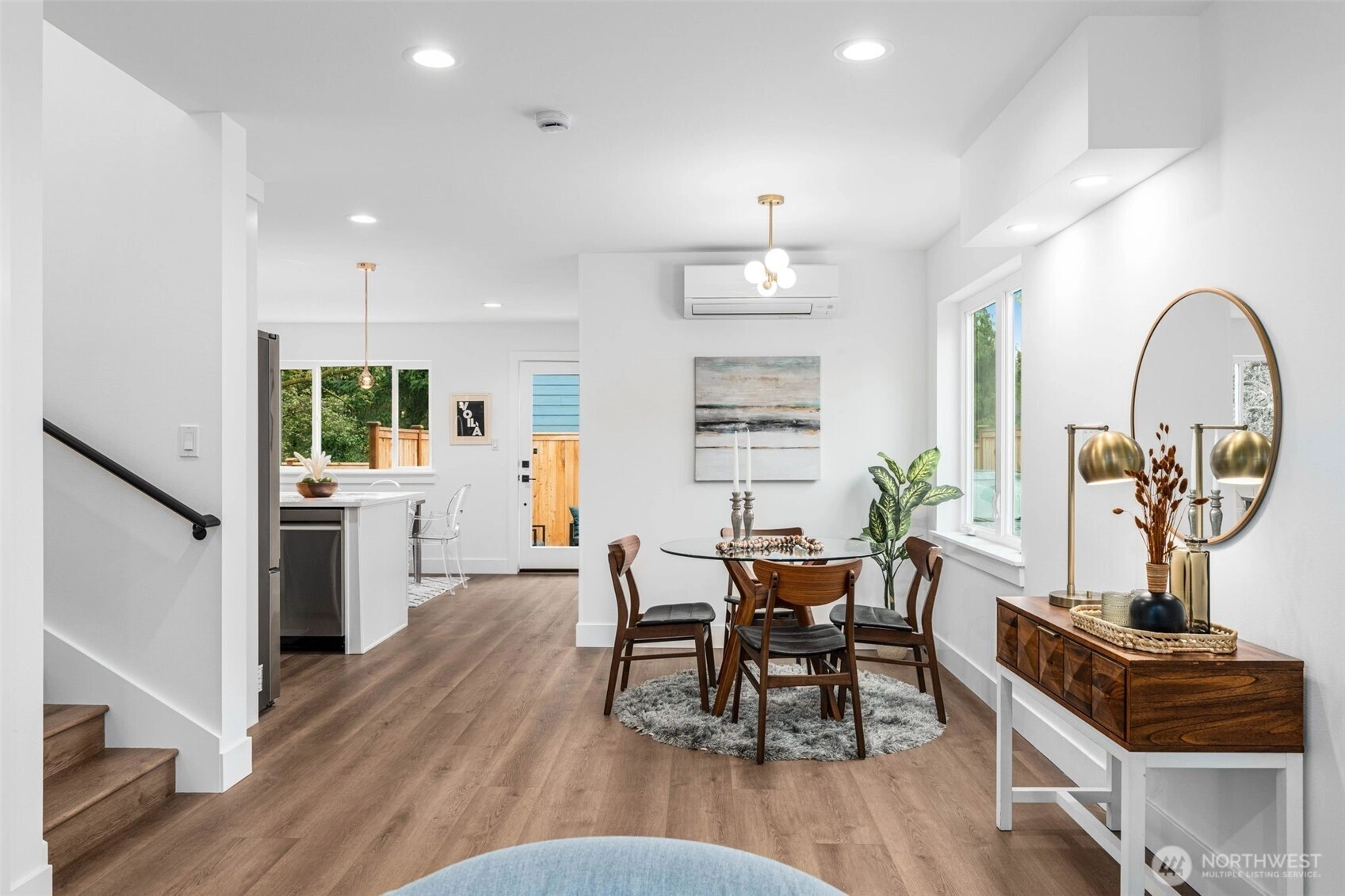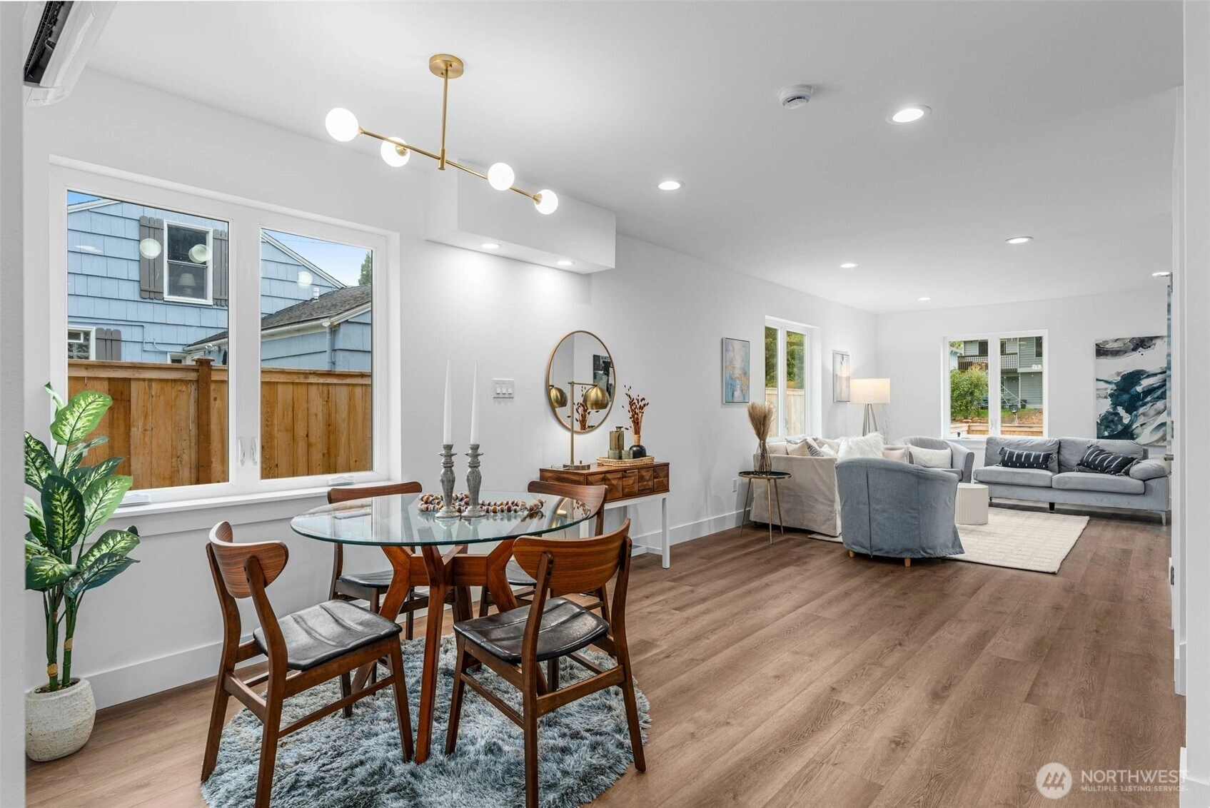 Discover this stunning 3BR, 2.25BA home featuring an open-concept kitchen with a stylish horseshoe island, perfect for entertaining. Vaulted ceilings add elegance, and mini-splits in each bedroom ensure year-round comfort. The primary bathroom features heated floors for a touch of luxury. Enjoy a fully fenced, generous front yard with off-street parking that can accommodate up to three midsize cars. Ideally located near a top-rated school (98% math, 97% reading) and just blocks from a Kiddie Academy. The rear unit (998 sq ft) sold for $775,000; 2 of 3 new construction homes remain. Prime location—don’t miss out! Property is priced $25K below Appraisal.