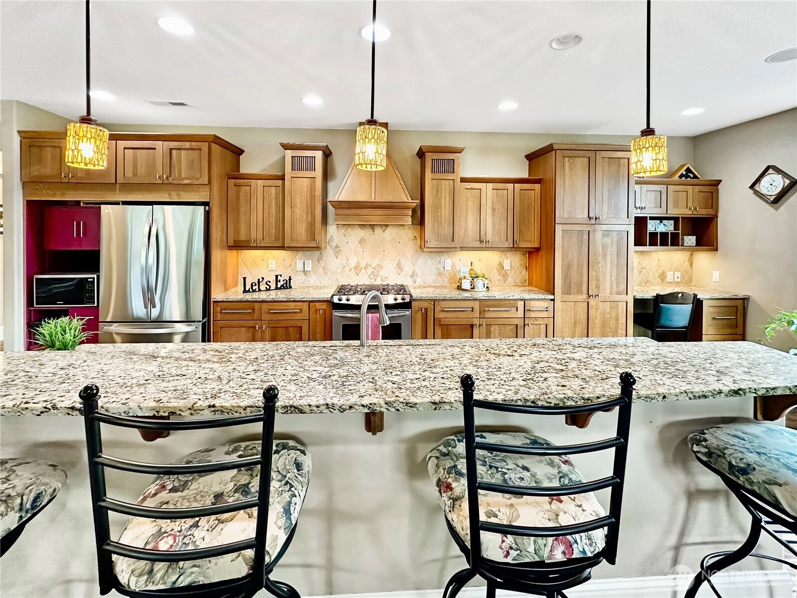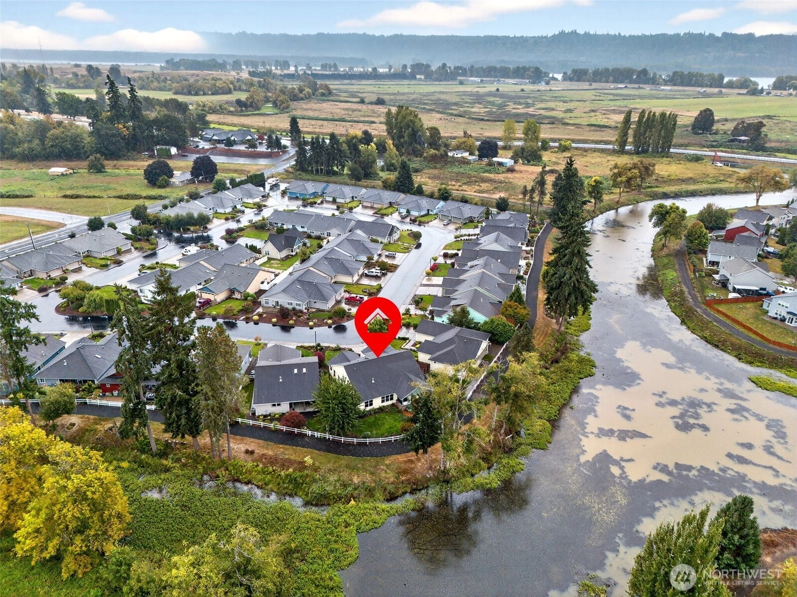 Beautiful, Craftsman Style Rambler, 55+ gated community in West Longview! Elegant entry w/Travertine tile floor & gorgeous front door w/transom & side lights. Open & airy great rm w/rich engineered hardwd flrs, surround sound, gas fireplace w/custom built-ins, spacious dining w/easy access to covered rear patio w/hot tub, gourmet style kitchen w/granite slab counters, stainless appliances, planning desk, island w/eating counter & oak cabinets. Spacious primary bdrm w/5 piece bath w/heated tile flr, full tile walk-in shower & lg walk-in closet. 2 additional bdrms w/easy access to 3/4 bath. Fenced rear & side yards w/views of the canal waterfront & bird activity. 2 car garage, bonus/hobby rm, AC, Sprinker system. Club house & walking trails.