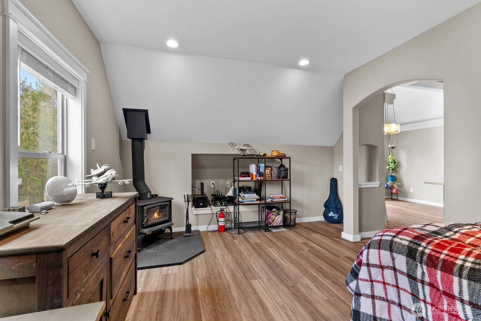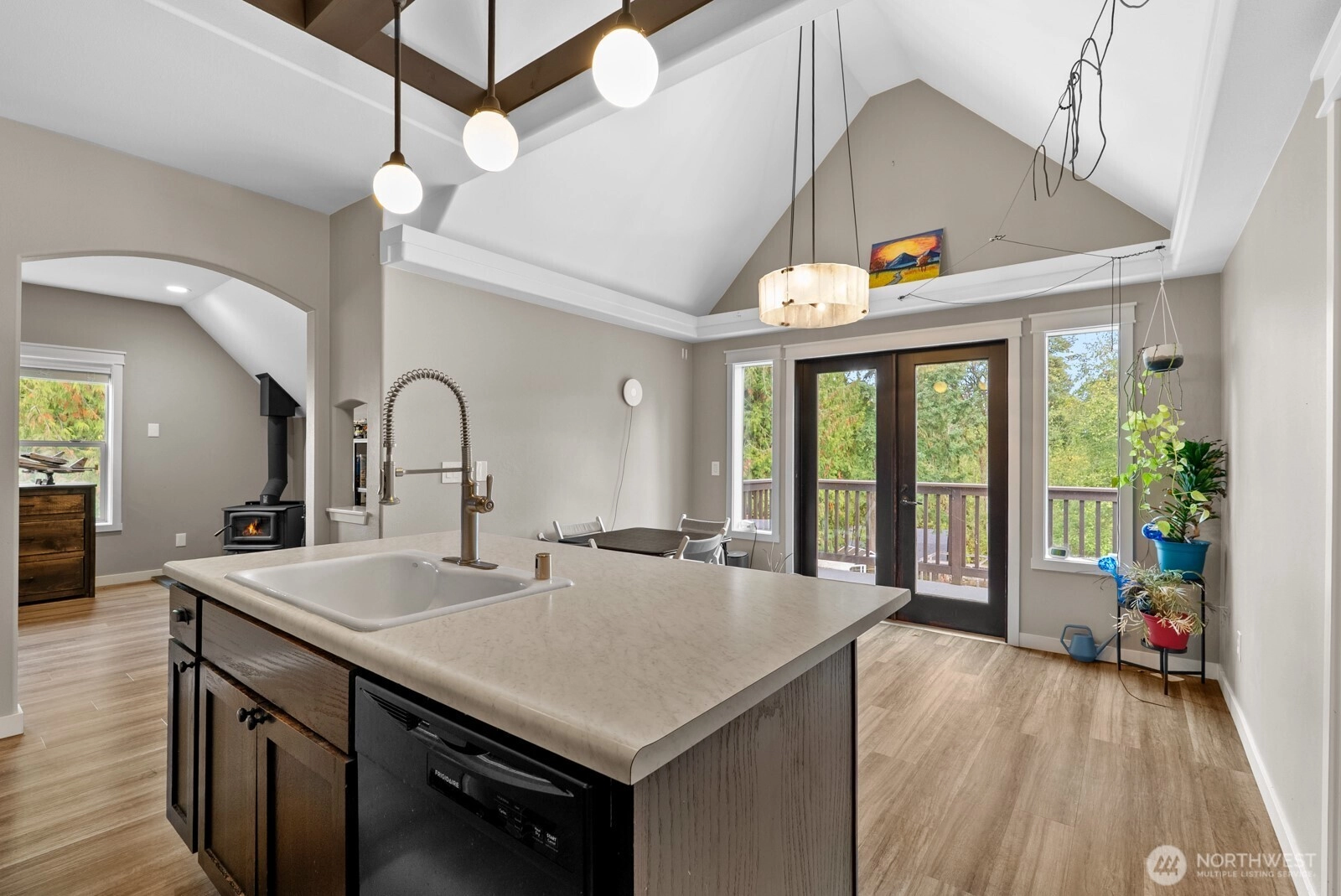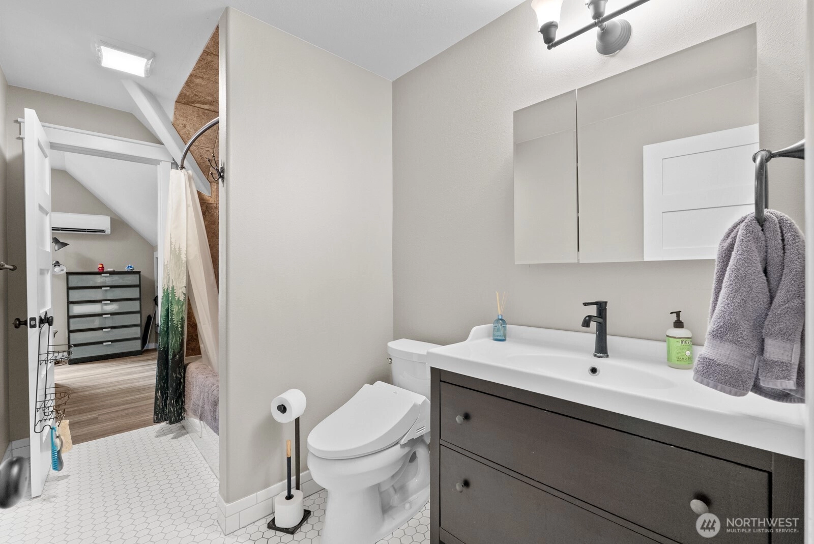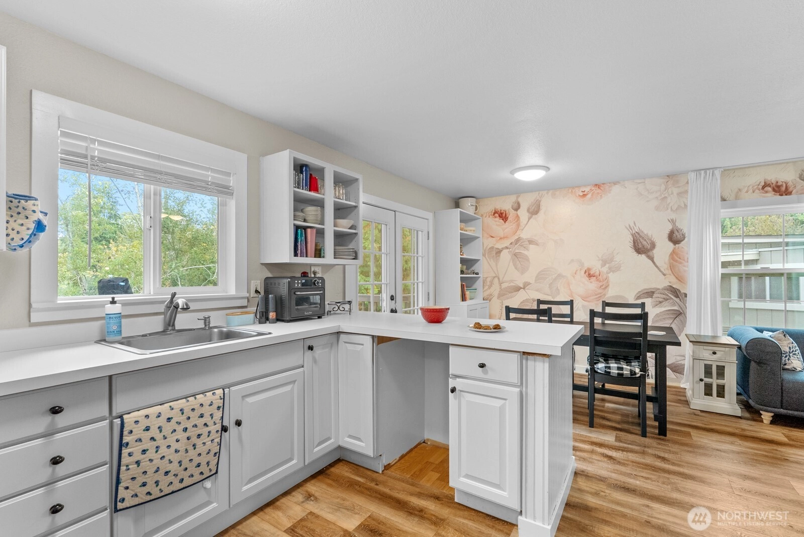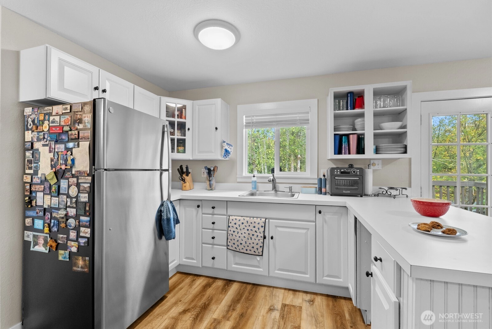 Two fully renovated homes on one acre near Lake Tapps. This 1400sqft, 2 bedroom with a loft, full bath, open kitchen w/eating space, living room with french doors open to the balcony, 50 year comp roof, 2 laundry hookups and primary suite is built over 1079sqft 3 car garage with half bath. 797 sqf DADU is a 1 bedroom, full bath, kitchen, dining area, living room, laundry hook-ups, metal roof and a deck. Property features solar panels, ductless AC, wood stoves, and tankless H20 heater. Gated entry, chicken coops, garden space, 2 outbuildings, gazebo with hot tub hookups, greenhouse, low maintenance landscaping, and dog run. Live in one and rent out the other or vacation rental would be a good investment for this property. Close to Lake Tapps
