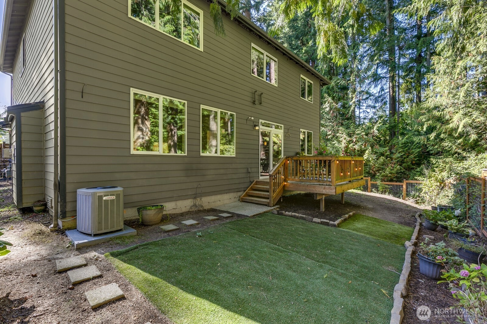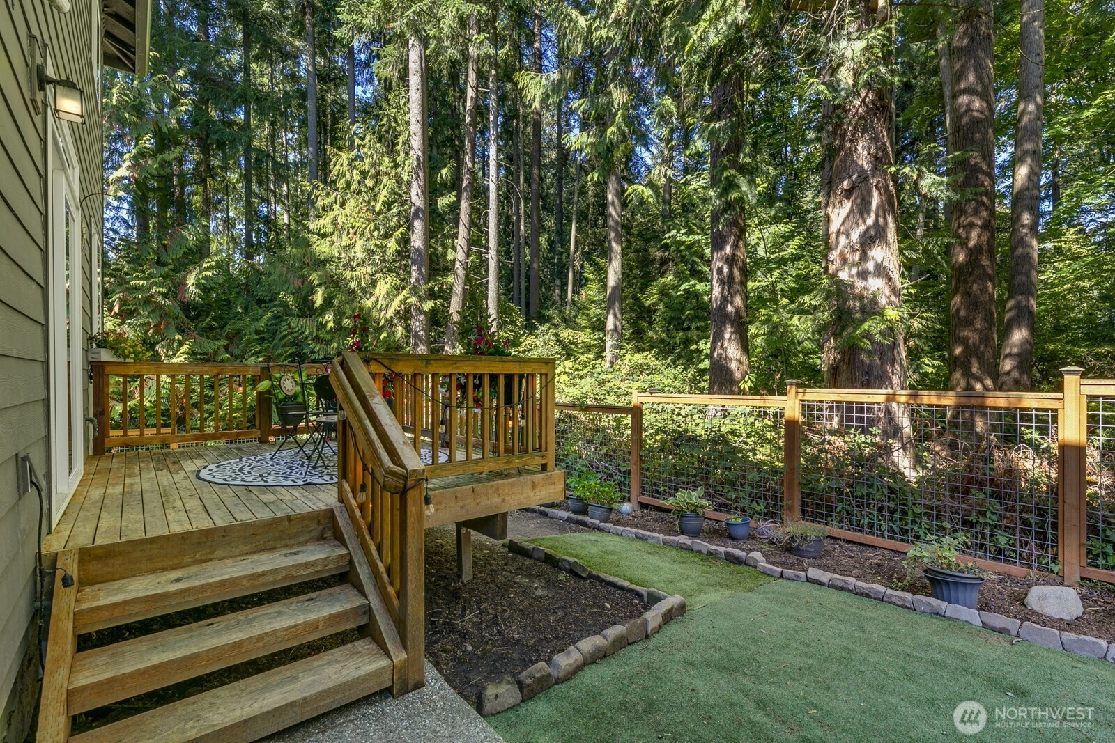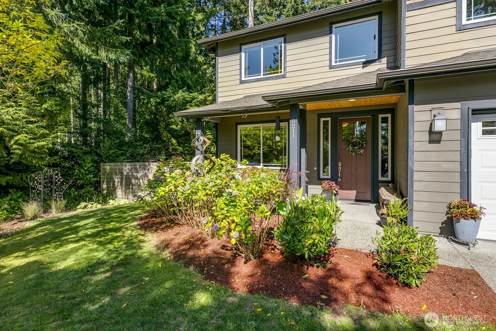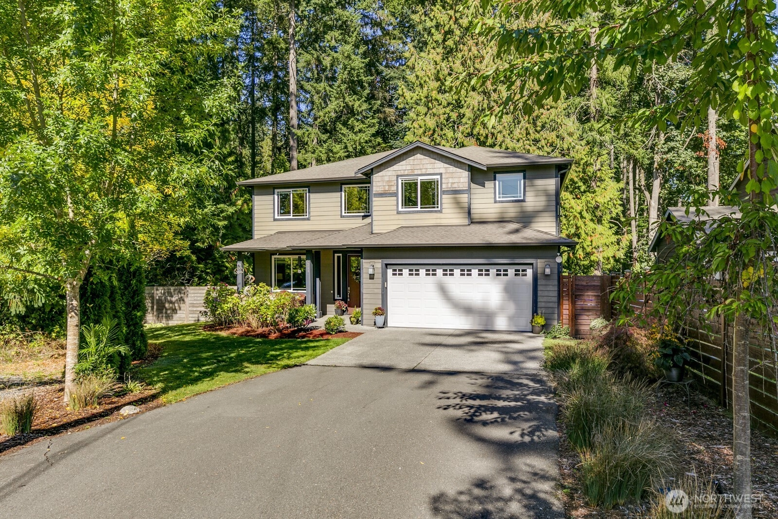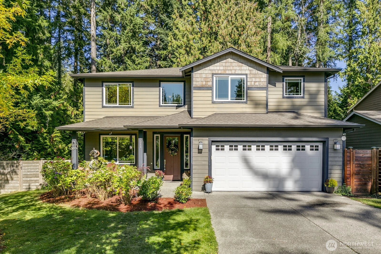 Tucked at the end of a quiet street this home is wonderfully located backed to a greenbelt, seemingly so far away yet just minutes to shops, restaurants, Boeing and EZ commutes. Enjoy sunshine on the covered front porch with SW exposure. Formal living room welcomes you through the front door, while the kitchen & family room are open & spacious, ready for gatherings. Enjoy new carpet and vinyl flooring, stone counters, SS appliances and plenty of cupboards. Upstairs find a nice landing bonus space and 4 bedrooms. Primary w/ensuite bath and plenty of closet space. Nature abounds in the backyard as woods surround the home with peace & privacy. No HOA.