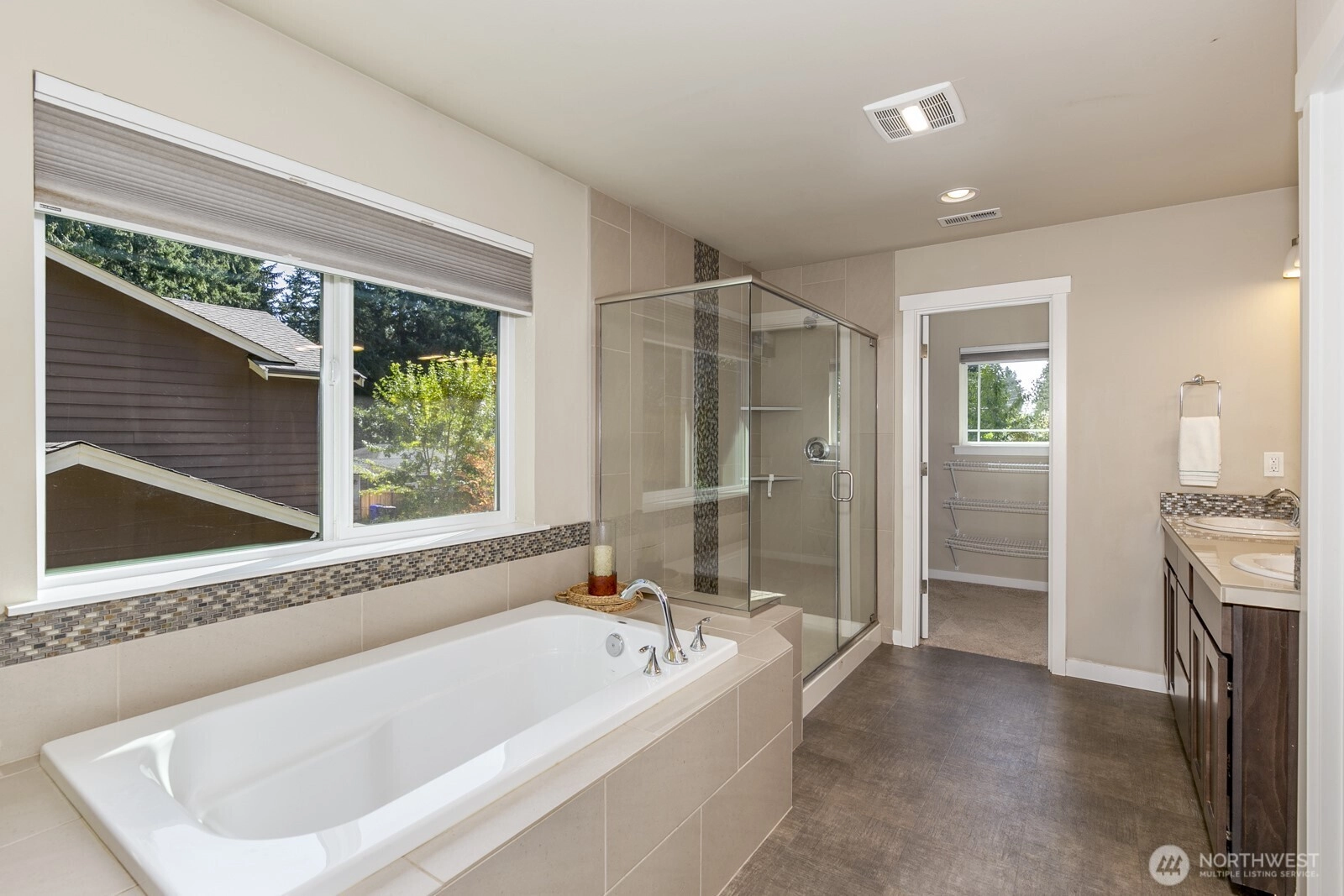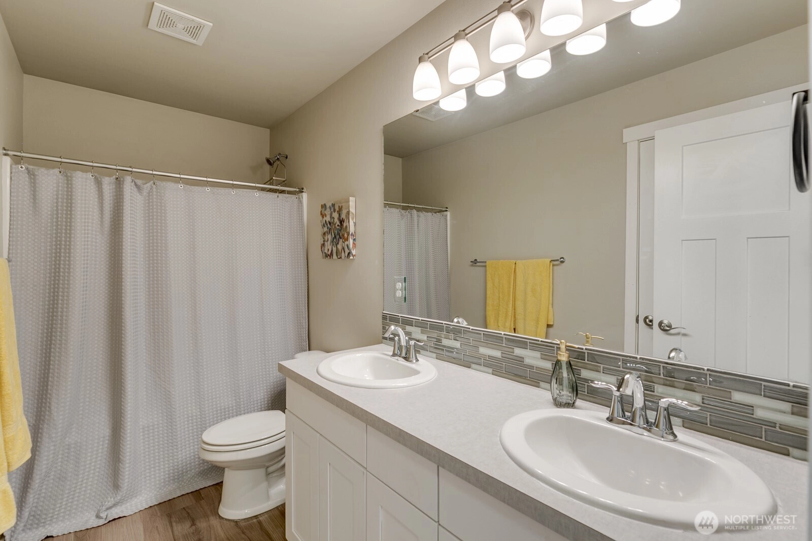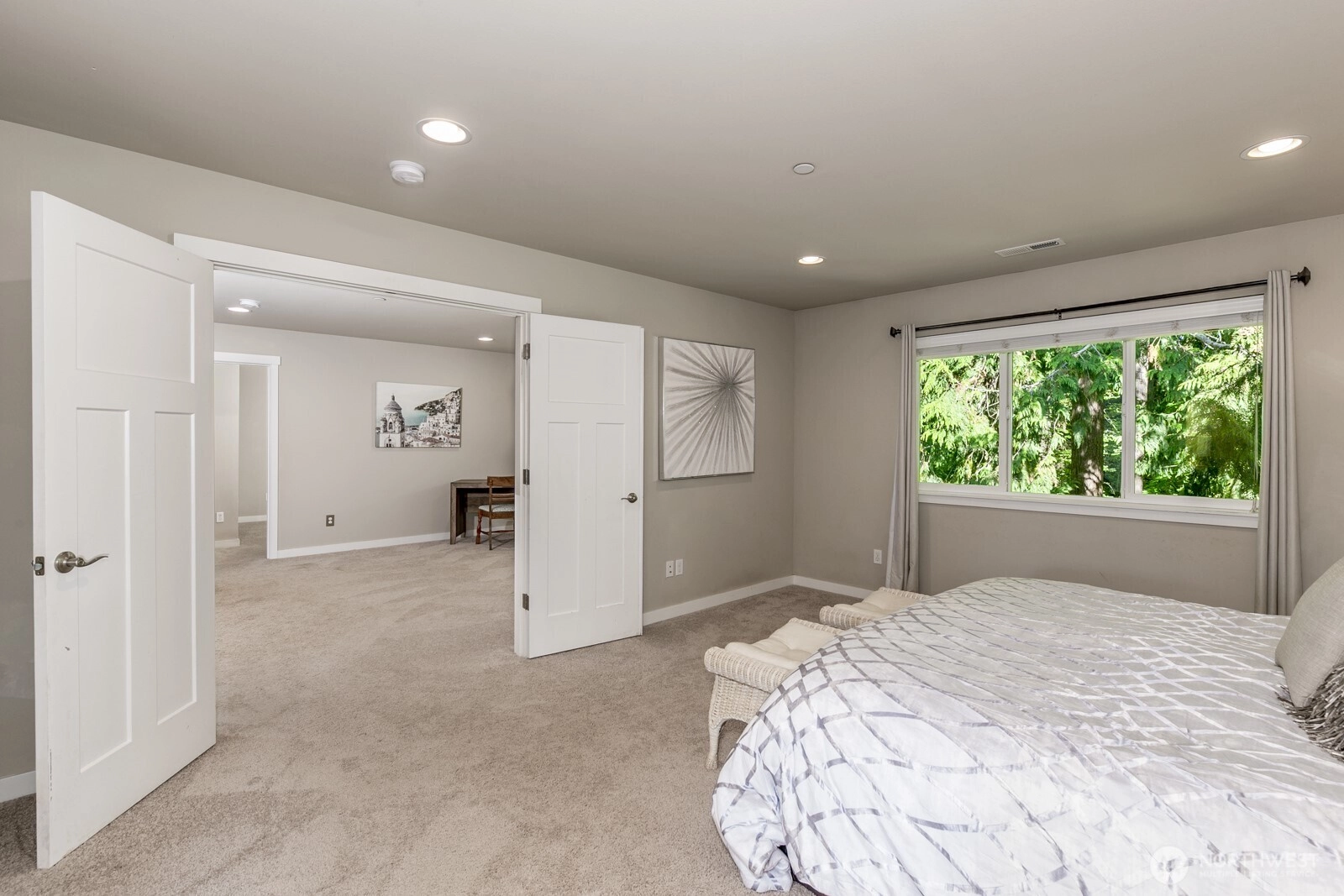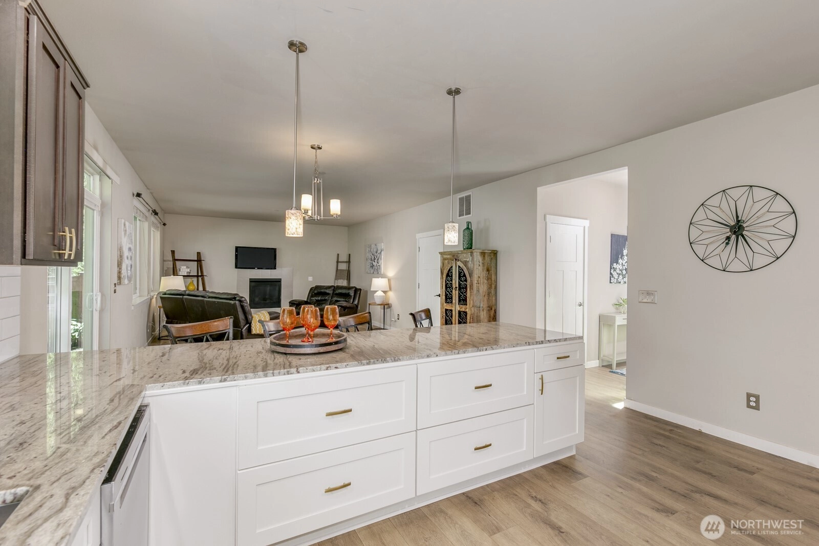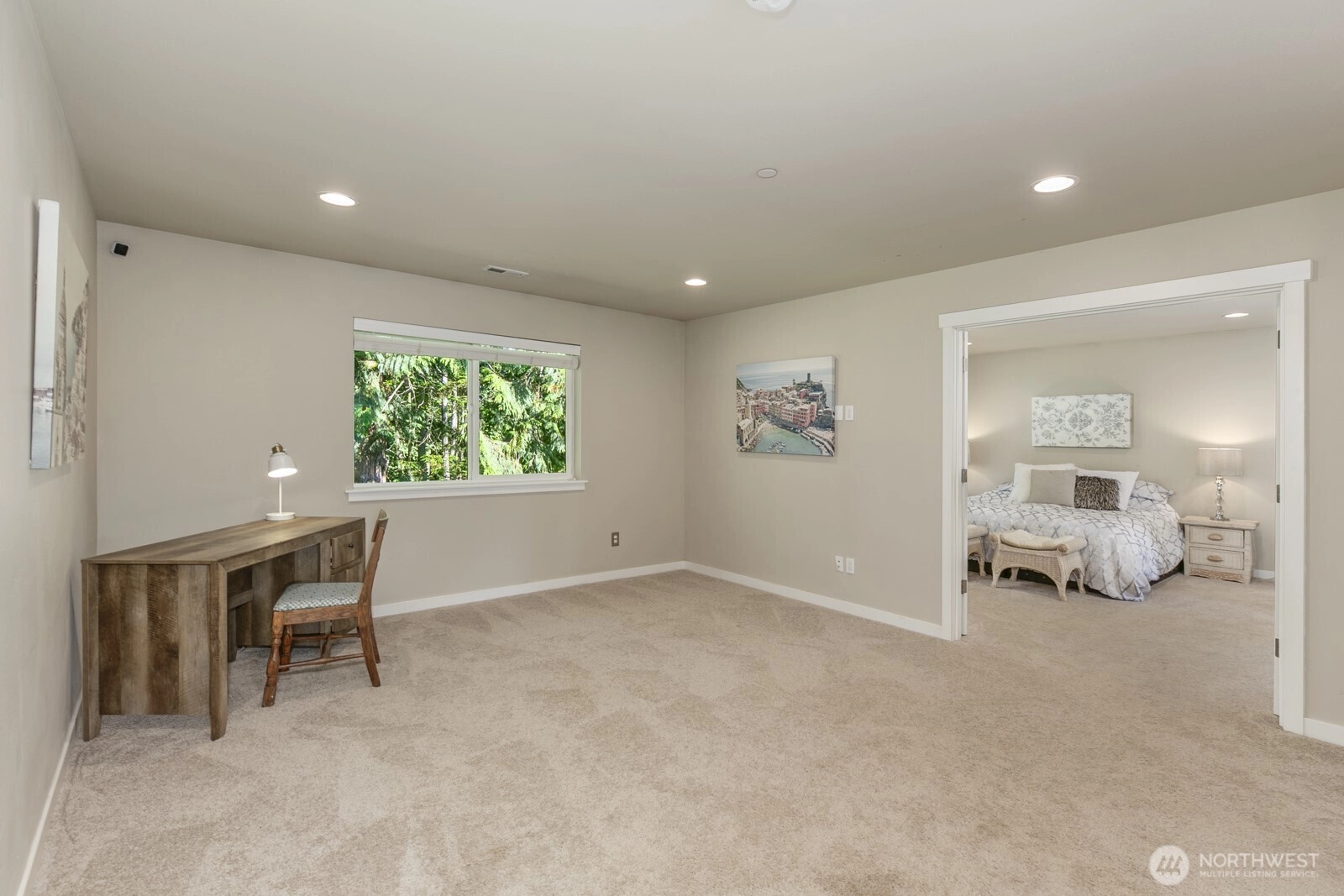 Tucked at the end of a quiet street this home is wonderfully located backed to a greenbelt, seemingly so far away yet just minutes to shops, restaurants, Boeing and EZ commutes. Enjoy sunshine on the covered front porch with SW exposure. Formal living room welcomes you through the front door, while the kitchen & family room are open & spacious, ready for gatherings. Enjoy new carpet and vinyl flooring, stone counters, SS appliances and plenty of cupboards. Upstairs find a nice landing bonus space and 4 bedrooms. Primary w/ensuite bath and plenty of closet space. Nature abounds in the backyard as woods surround the home with peace & privacy. No HOA.
