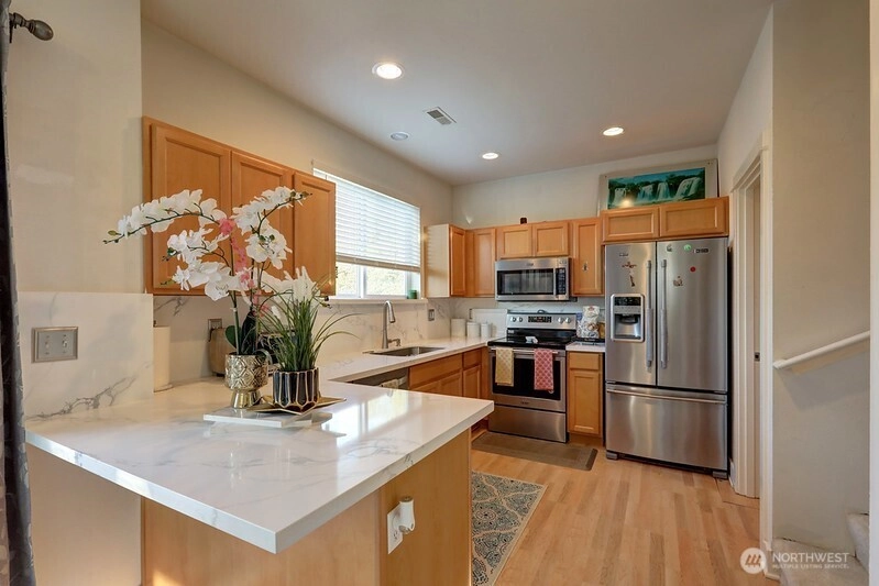 Located near the Light Rail Station and within walking distance to Rainier Beach Parks, Boeing, I-5, Dunlap, and three public schools, this well-kept and spacious townhome offers both comfort and convenience. No HOA dues. Carpeted floors upstairs and laminate flooring downstairs, which is tenant-occupied and generating rental income.The kitchen opens to a bright living and dining area, quartz countertops and a large food pantry. One designated parking spot, with plenty of additional parking available nearby. The owner remodeled the kitchen three years ago with stainless steel appliances. Walk-in closets in each bedroom.