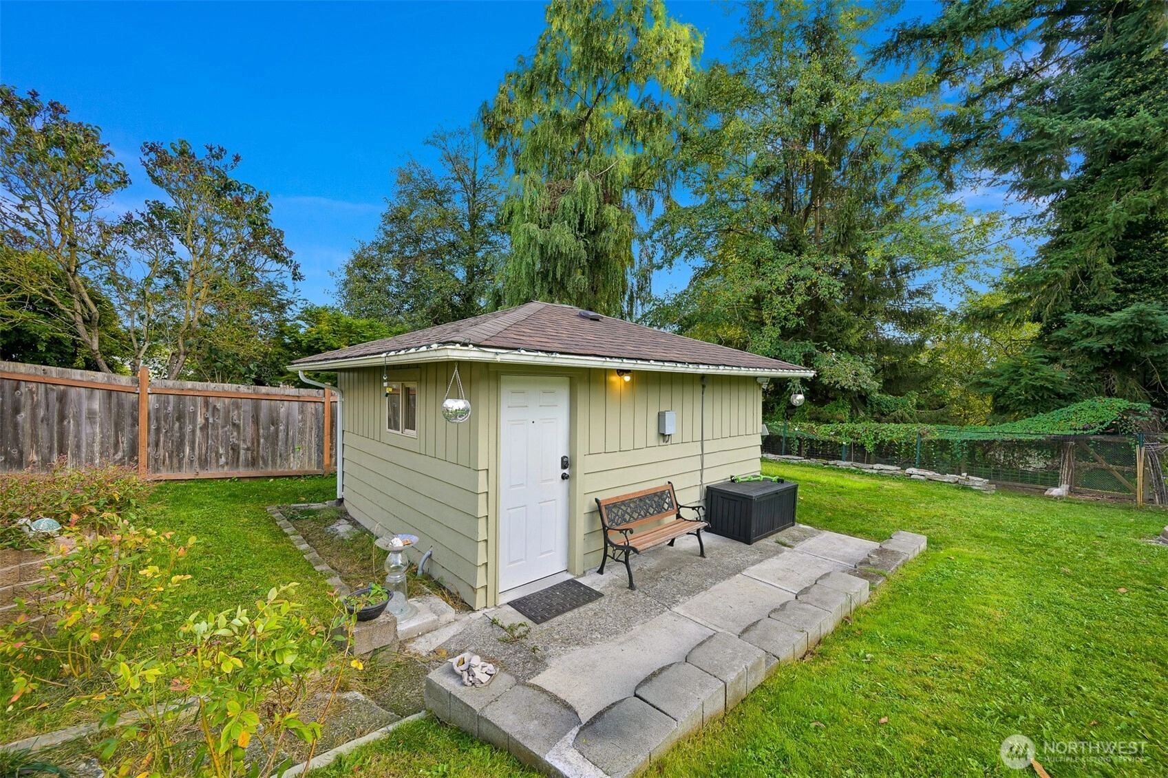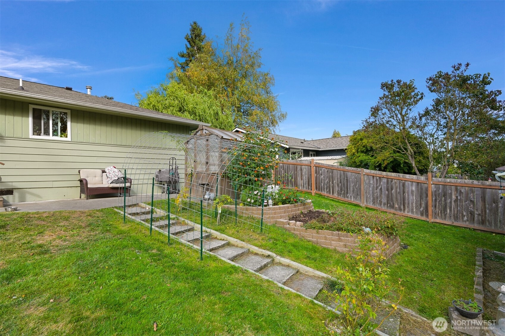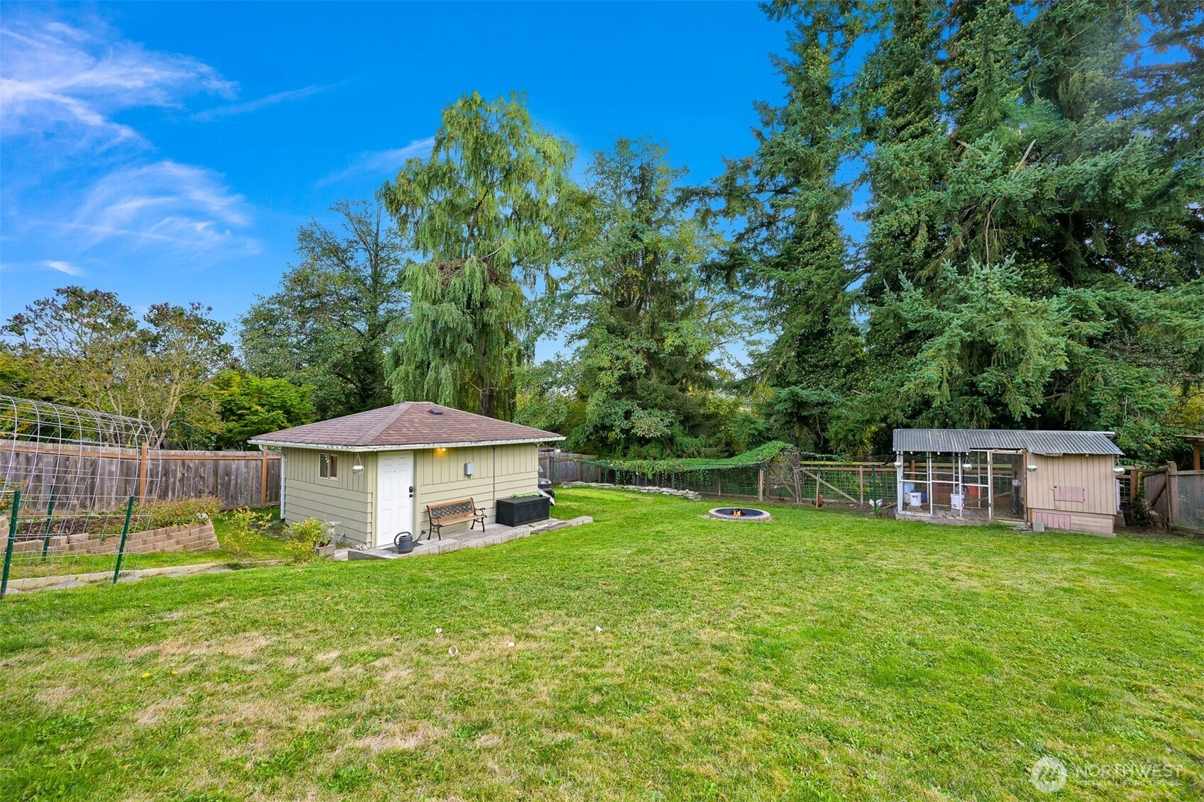 Welcome to this beautifully remodeled home, ideally situated in the heart of Burlington—just minutes from parks, top-rated schools, and downtown conveniences! Completely renovated in 2014, including a new roof, flooring, mechanical systems, & more—everything has been updated for peace of mind and easy living. Vaulted ceilings & engineered hardwood floors, open-concept layout. Bright & airy living and dining areas connect to a spacious kitchen featuring S/S appliances, gas cooktop, ample cabinetry, pantry storage, and easy access to the attached garage and convenient half bath. Detached bonus studio in the backyard—perfect for an art space, music room, home office, or creative retreat. Newly built chicken coop, greenhouse, and storage shed!