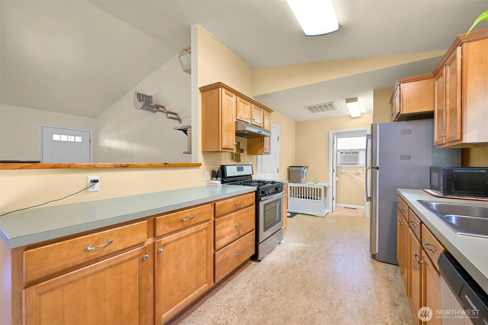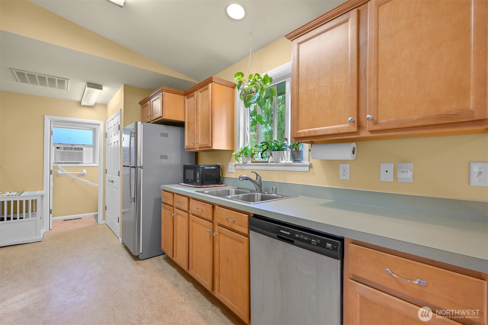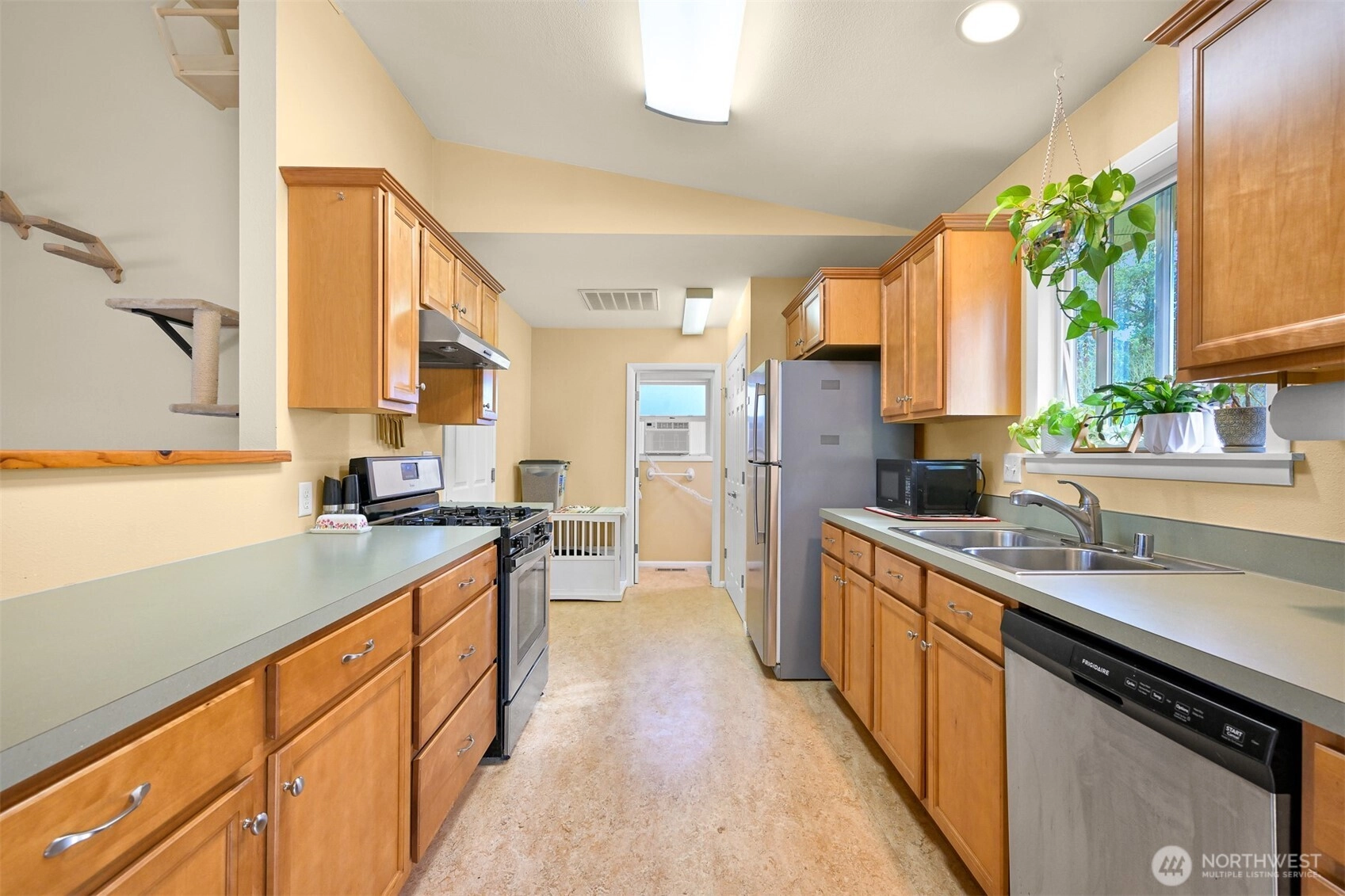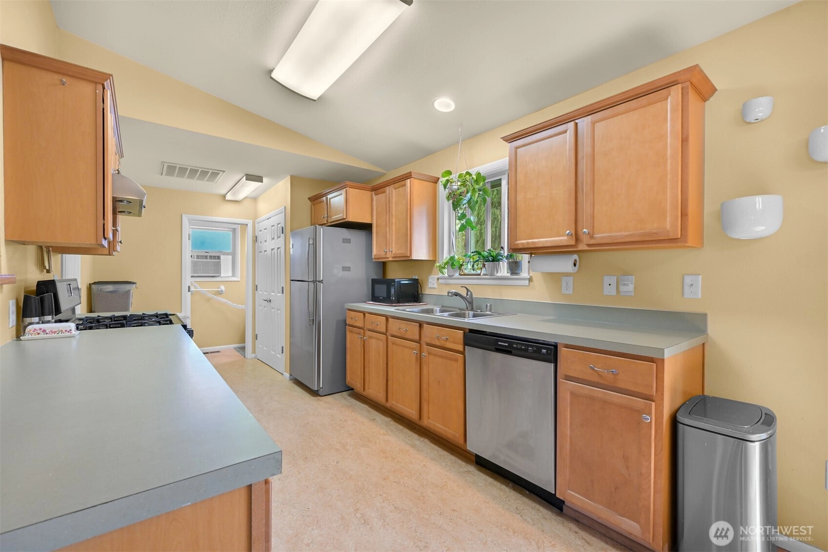 Welcome to this beautifully remodeled home, ideally situated in the heart of Burlington—just minutes from parks, top-rated schools, and downtown conveniences! Completely renovated in 2014, including a new roof, flooring, mechanical systems, & more—everything has been updated for peace of mind and easy living. Vaulted ceilings & engineered hardwood floors, open-concept layout. Bright & airy living and dining areas connect to a spacious kitchen featuring S/S appliances, gas cooktop, ample cabinetry, pantry storage, and easy access to the attached garage and convenient half bath. Detached bonus studio in the backyard—perfect for an art space, music room, home office, or creative retreat. Newly built chicken coop, greenhouse, and storage shed!