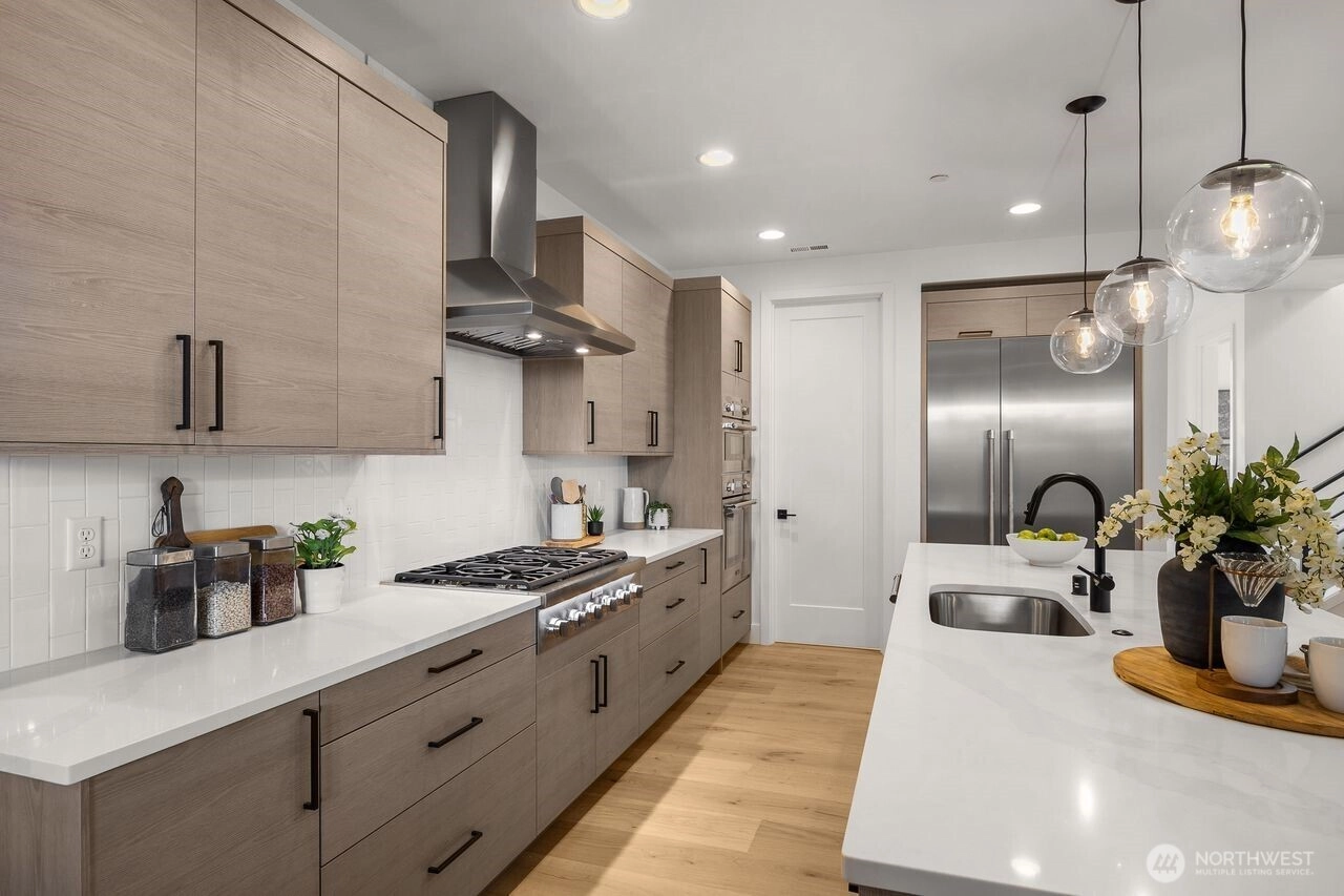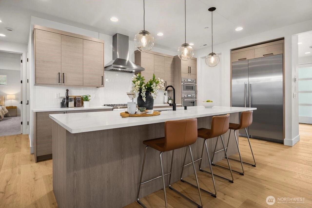 Welcome to Briarstone, a 5 home luxury boutique community in Bothell’s top-rated Northshore SD. Minutes from shopping, dining, & fast Seattle/Eastside access. This upgraded floorplan with 3 car garage has an expansive open floor plan- spacious entrance w/an office & powder rm for guests lead into chef inspired Kitchen w/Thermador Appl, 6 burner Gas cooktop, walk in Pantry, Great Rm/Dining Rm. Main-floor also hosts a Mud Rm & Bedroom suite perfect for Multi-Gen living. Upstairs- Spa-inspired Primary retreat w/WIC, Bonus Rm, Laundry w/sink & cabinets, spacious Secondary Beds, one w/ensuite Bath, offering an abundance of space & comfort. Each home comes w/Refrigerator, Electric Heat Pump -which provides your A/C & Gar Door Opener with remote!