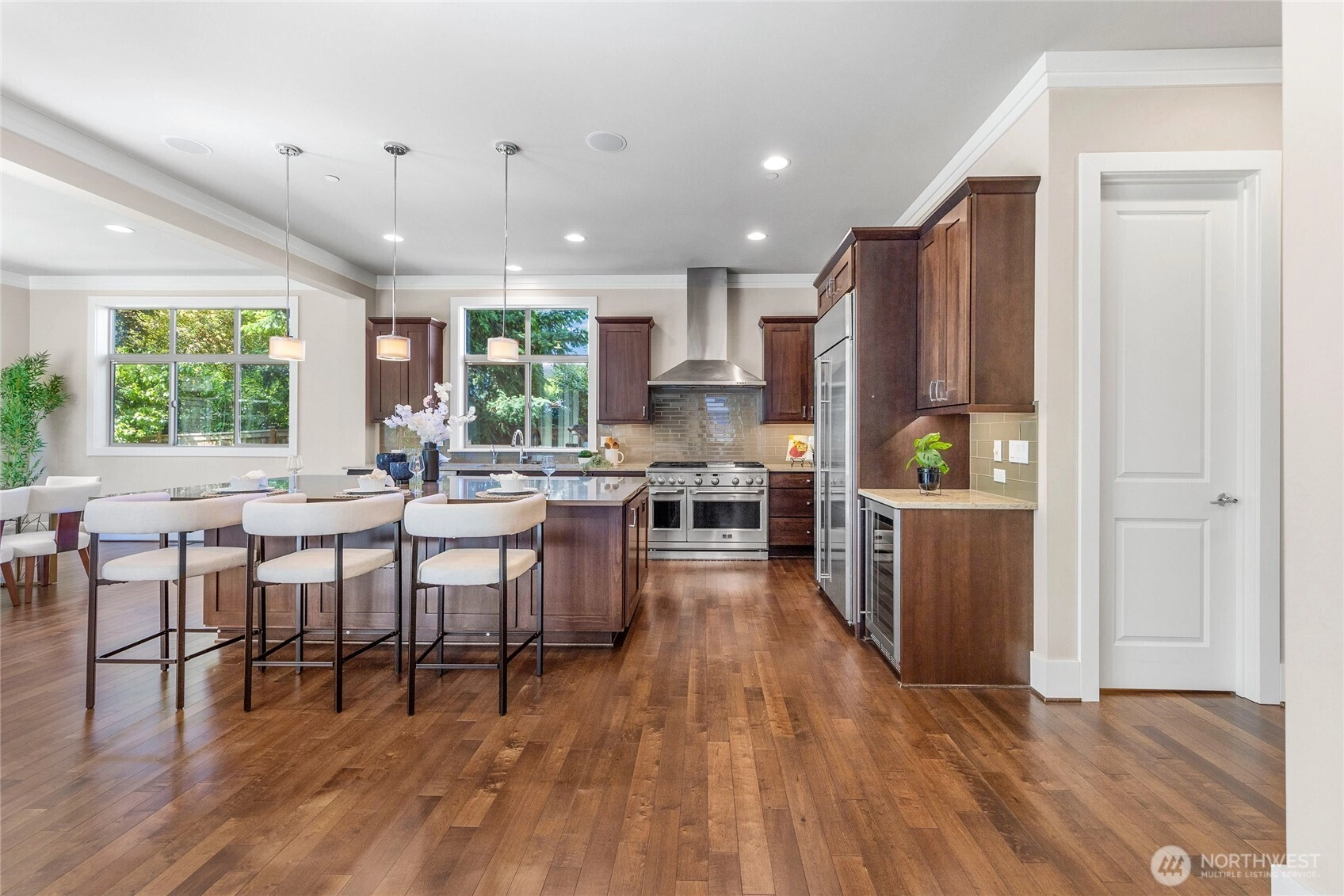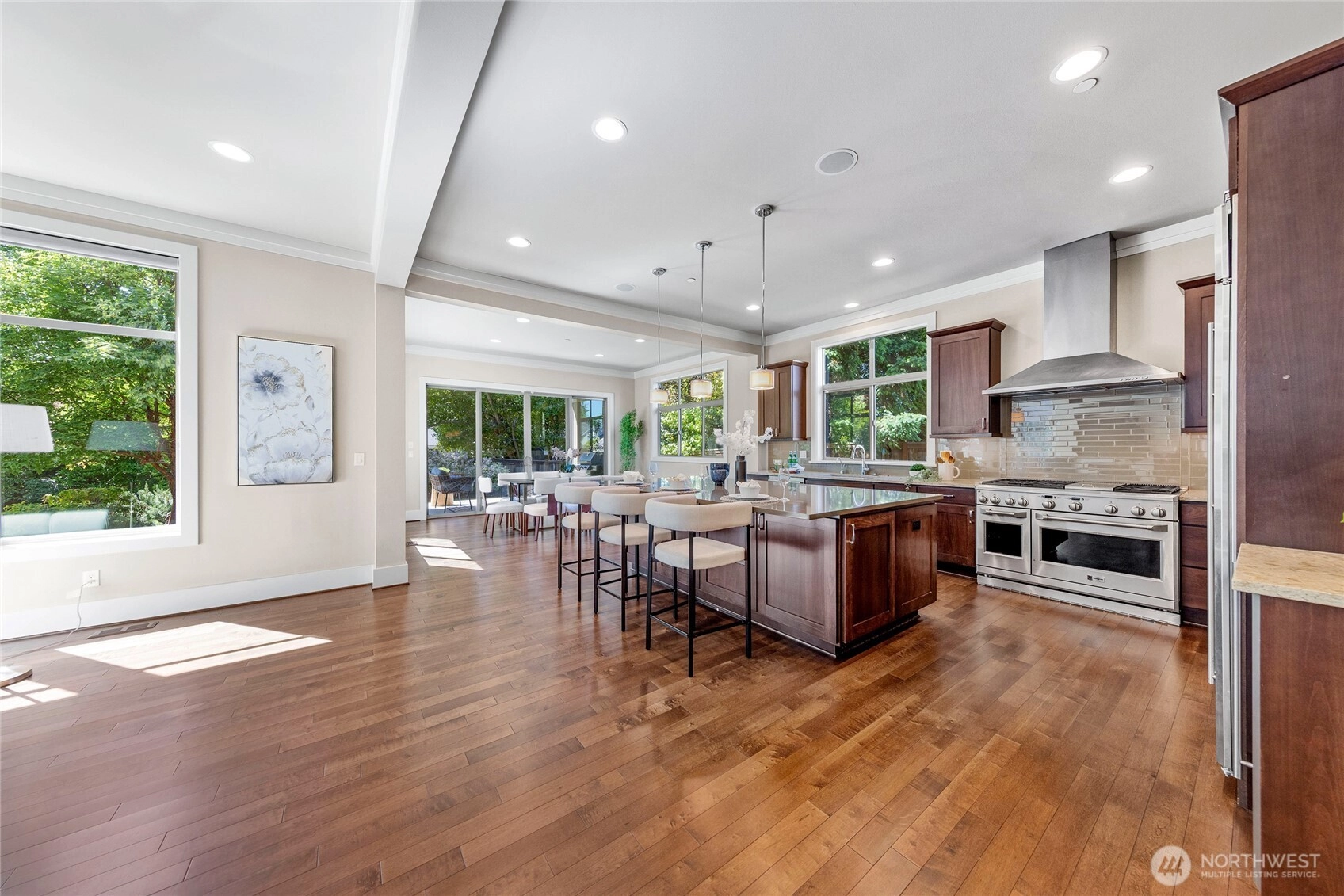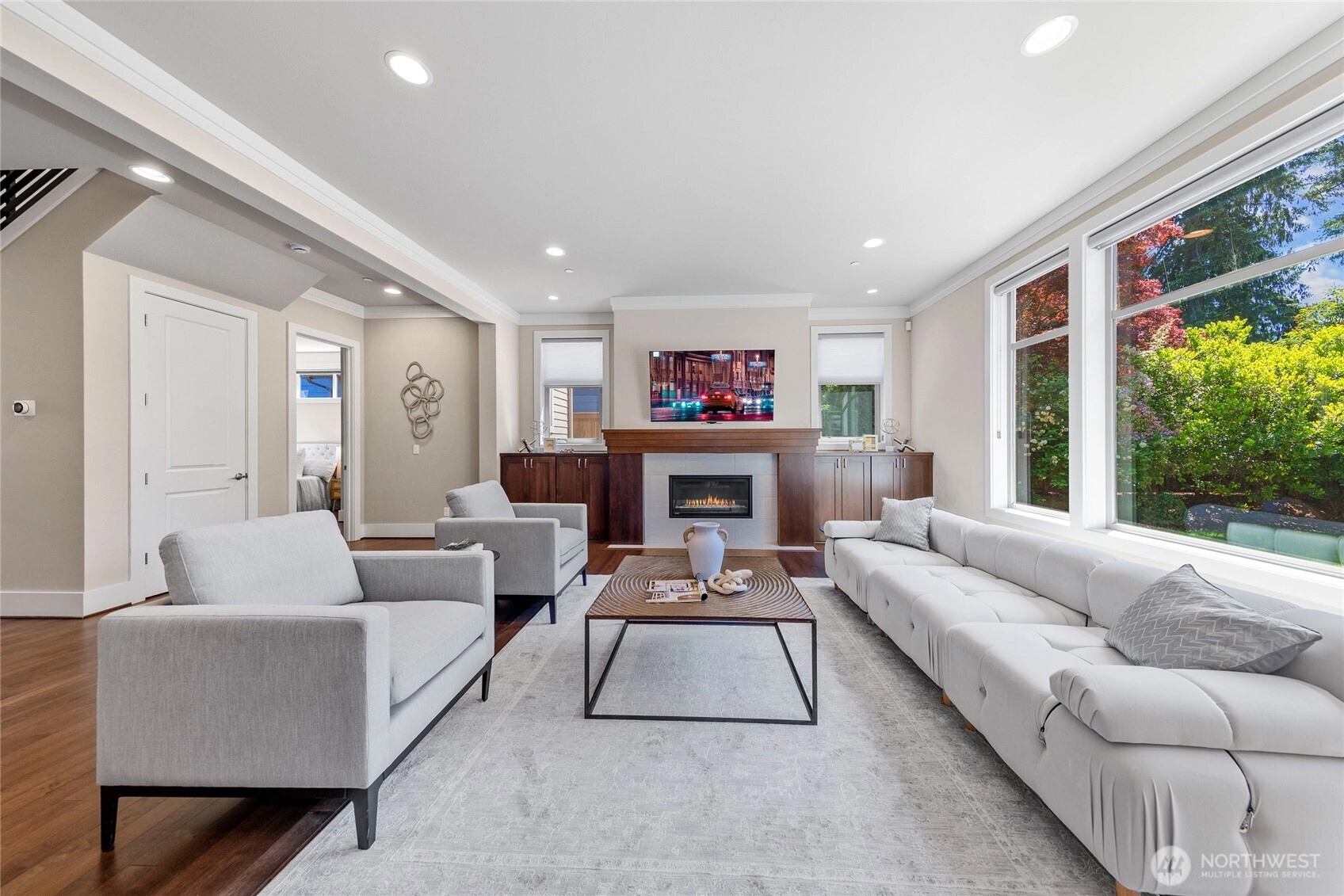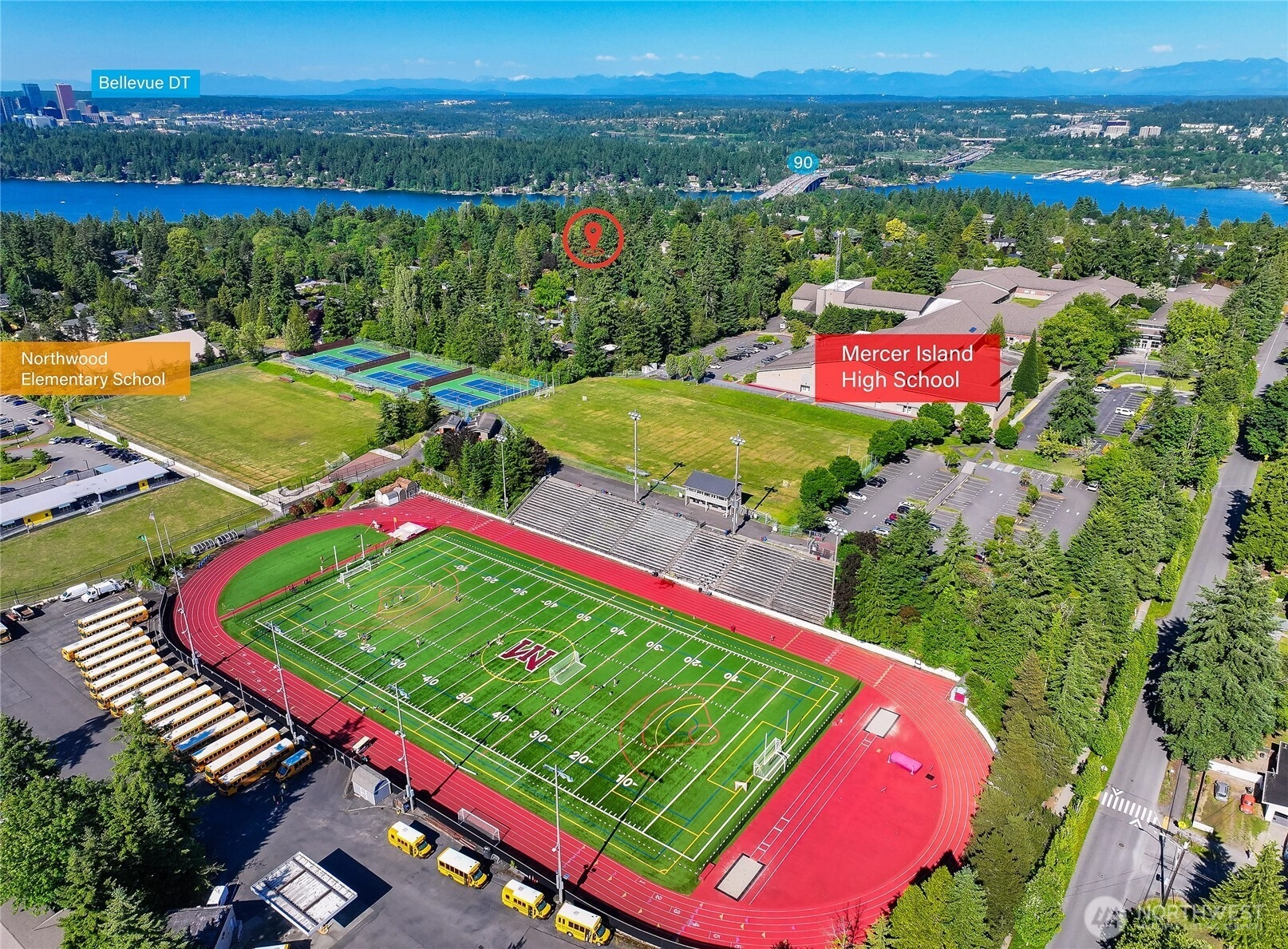Enjoy the best of island living in this impeccably crafted North End home, tucked away on a quiet street just minutes from both Bellevue and Seattle. The main level features 10' ceilings, expansive windows, and a chef’s kitchen with seamless flow into elegant living spaces. A main-floor guest suite offers flexibility. Upstairs includes four bedrooms, including a luxe primary suite with spa-like bath, and a spacious bonus room. The flat backyard invites outdoor entertaining. Upgrades include hardwood floors throughout, EV charger, whole-house generator for peace of mind, Sonos system, and custom California Closets. Walk to Northwood Elementary and MIHS. A rare blend of style, function, and convenience in an award-winning school district.