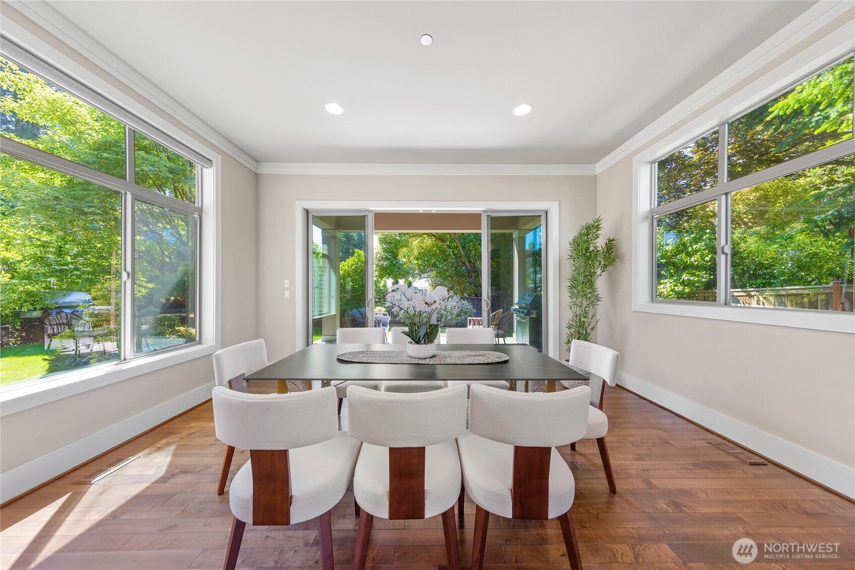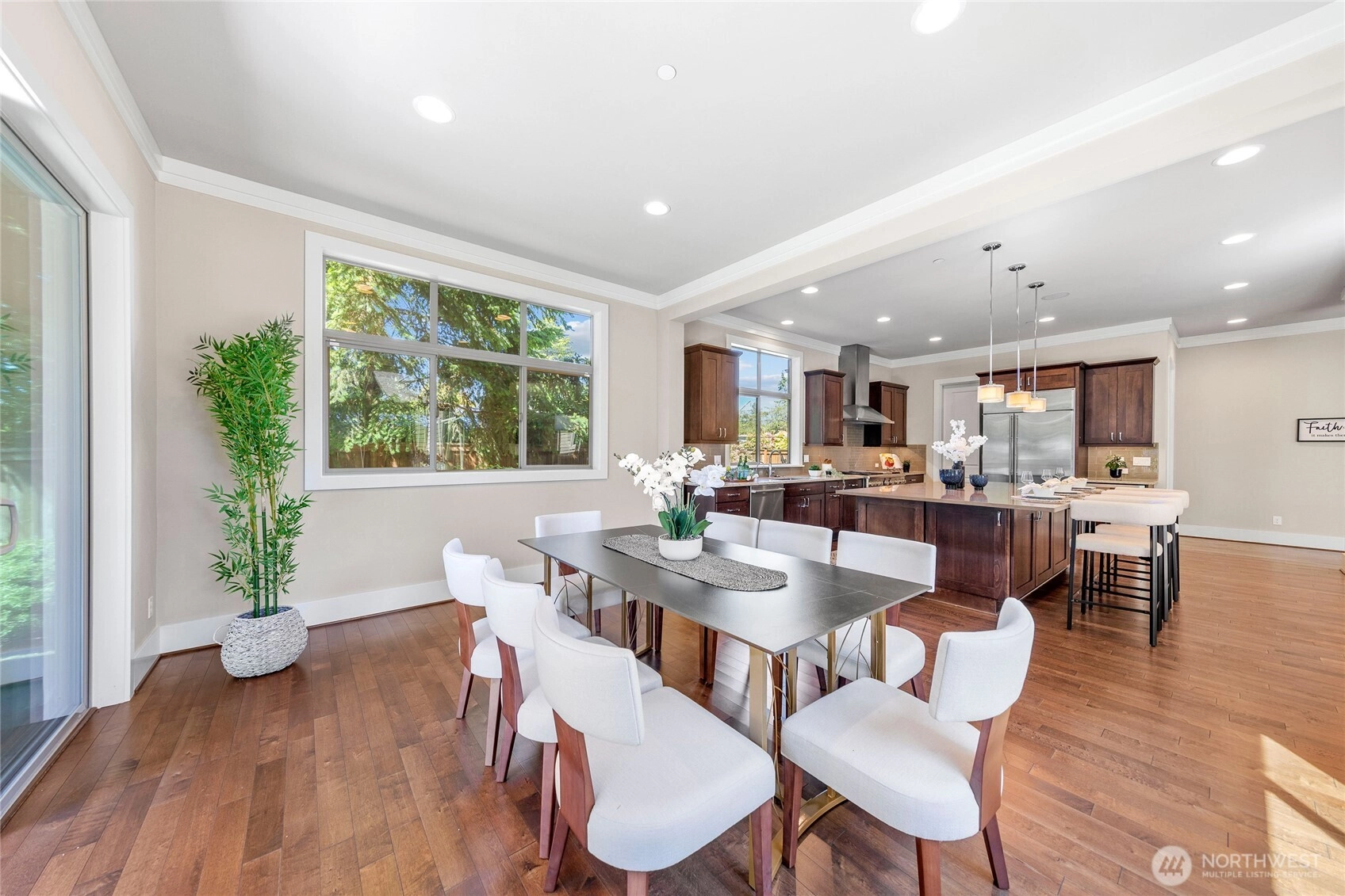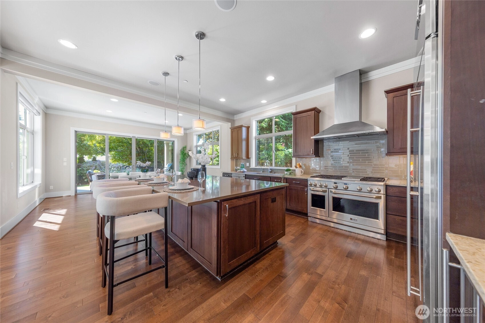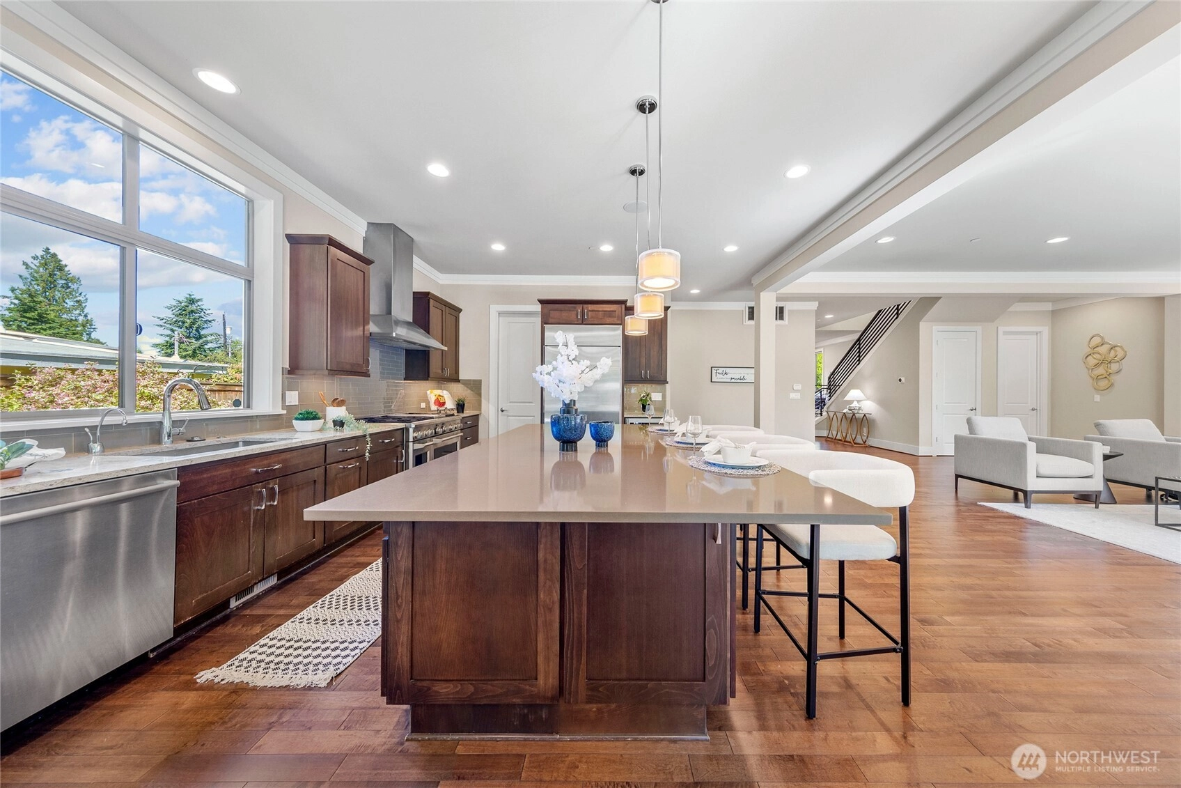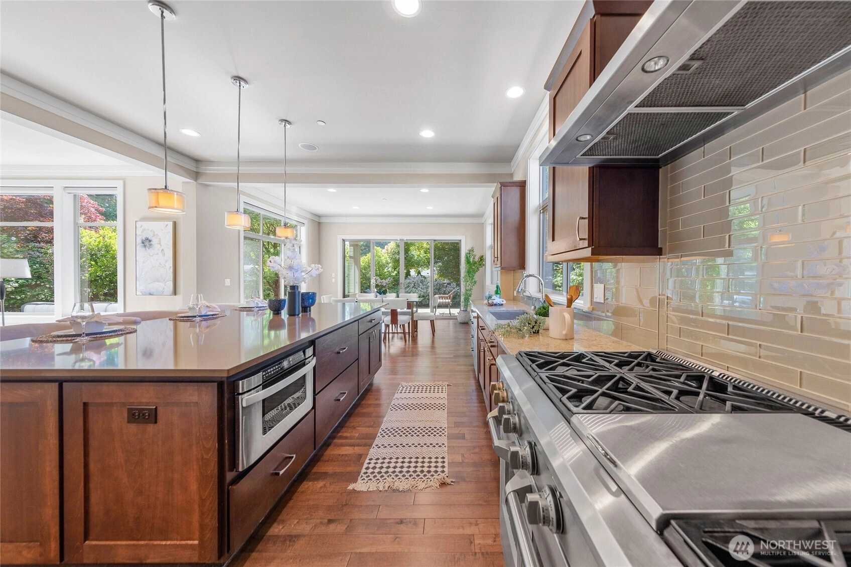 Enjoy the best of island living in this impeccably crafted North End home, tucked away on a quiet street just minutes from both Bellevue and Seattle. The main level features 10' ceilings, expansive windows, and a chef’s kitchen with seamless flow into elegant living spaces. A main-floor guest suite offers flexibility. Upstairs includes four bedrooms, including a luxe primary suite with spa-like bath, and a spacious bonus room. The flat backyard invites outdoor entertaining. Upgrades include hardwood floors throughout, EV charger, whole-house generator for peace of mind, Sonos system, and custom California Closets. Walk to Northwood Elementary and MIHS. A rare blend of style, function, and convenience in an award-winning school district.