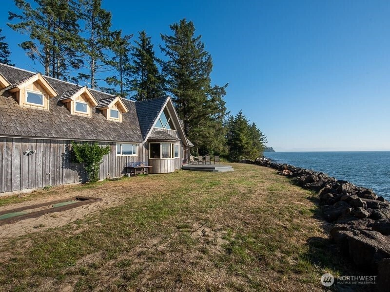 2 secluded acres of waterfront. Over 380 ft. of waterfront and view of Pacific Ocean, Columbia river, and Baker Bay. Here, everyday is an adventure. Live here full-time and enjoy the sandy beach, the closeness of Astoria, Ore. and Long Beach, Wa. or... enjoy vacation rental income provided by this custom designed home. Enjoy sunsets from the new deck and relax watching ocean-going ships arriving from all over the world. Main floor provides primary bedroom, living and family rooms. Second floor game room for entertaining and 3 bedrooms. Perfect for social events, holidays and gatherings. Come see, hear, rest and enjoy.....