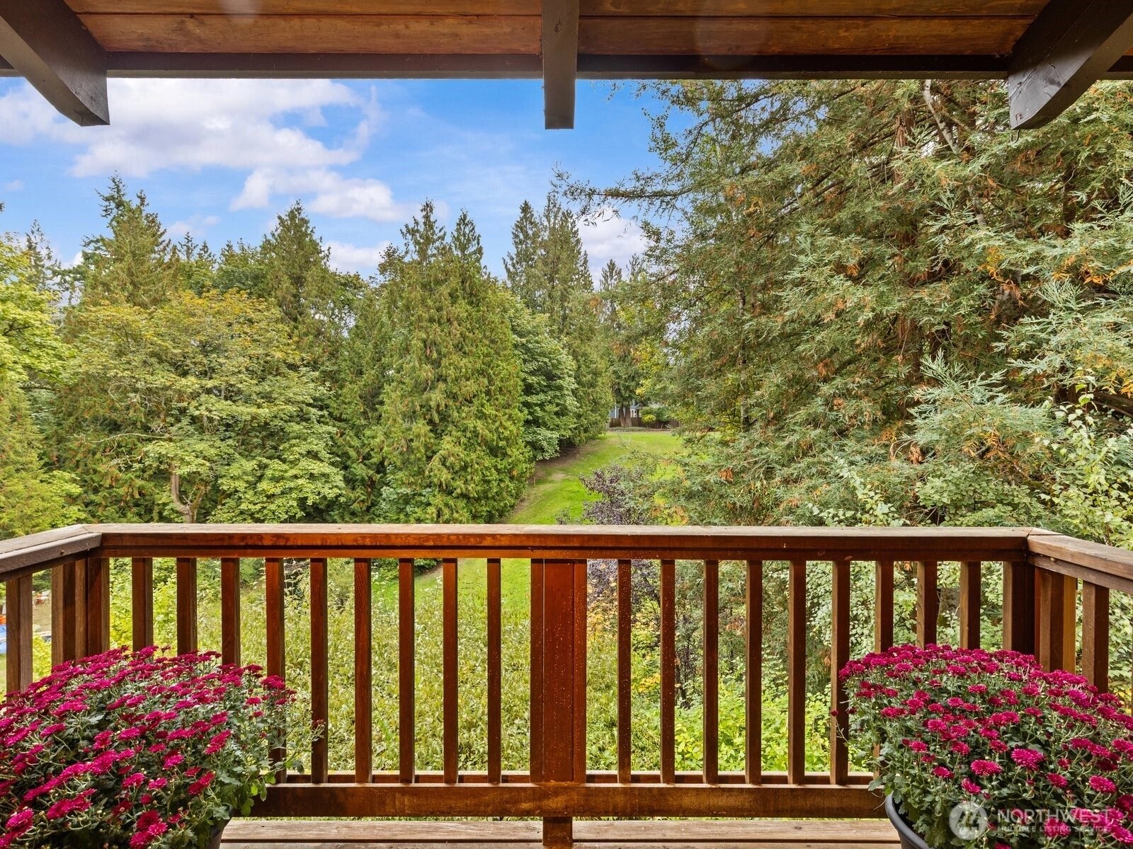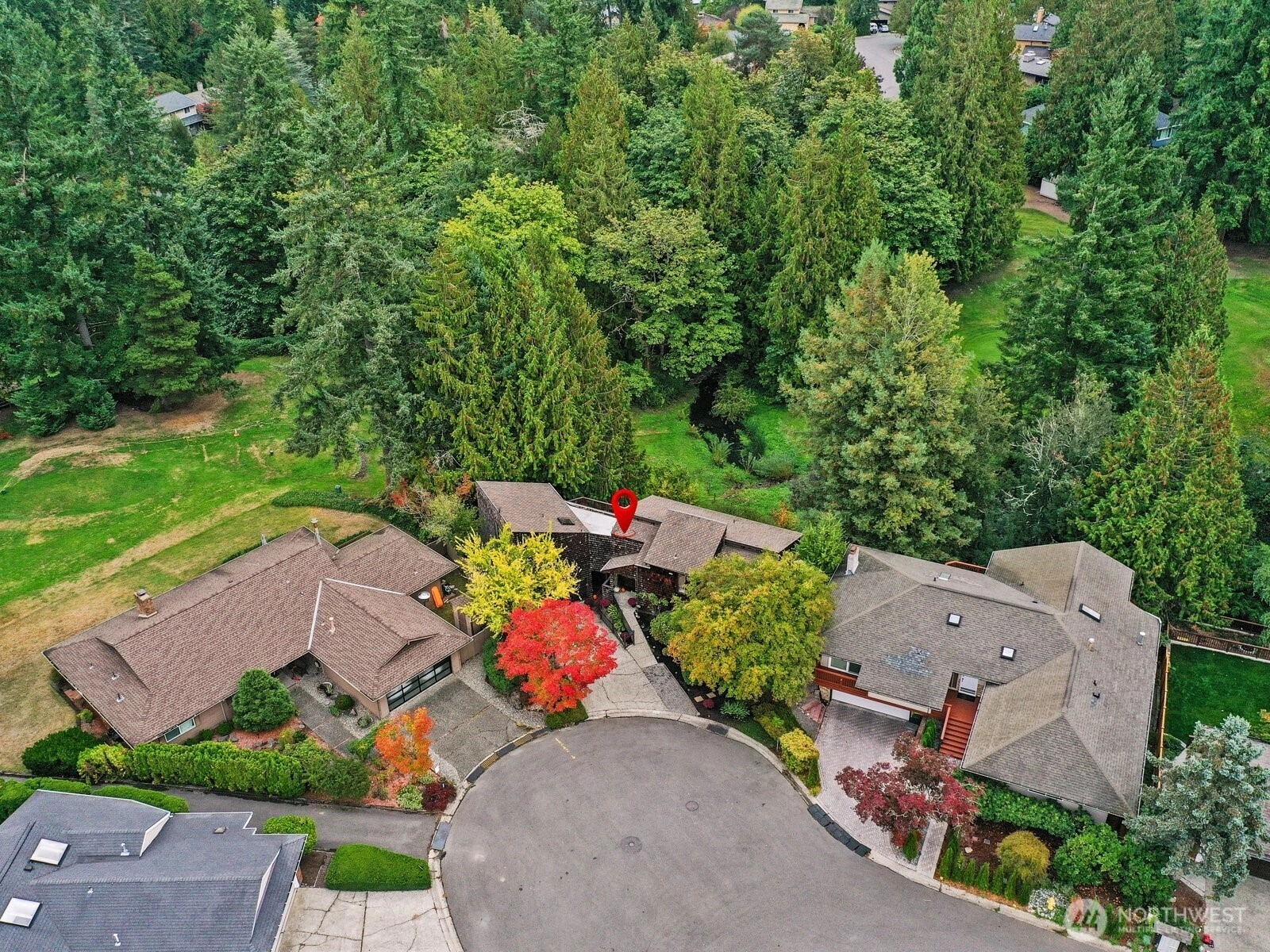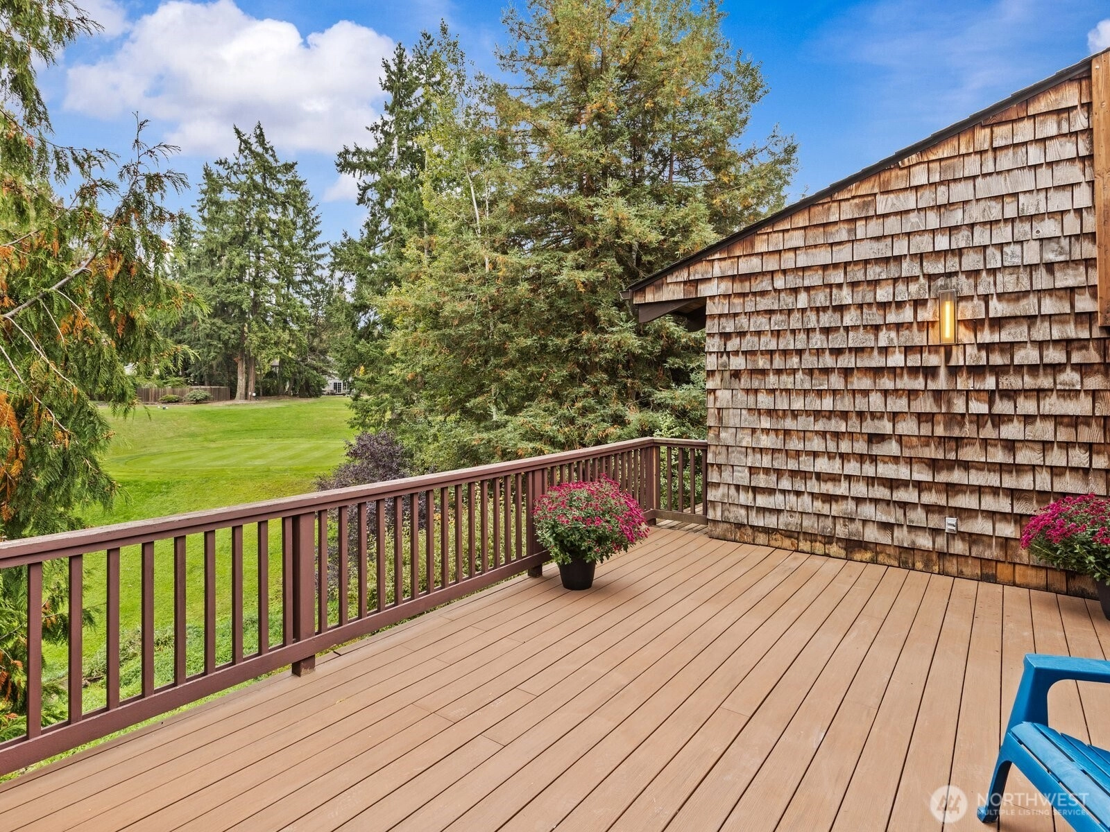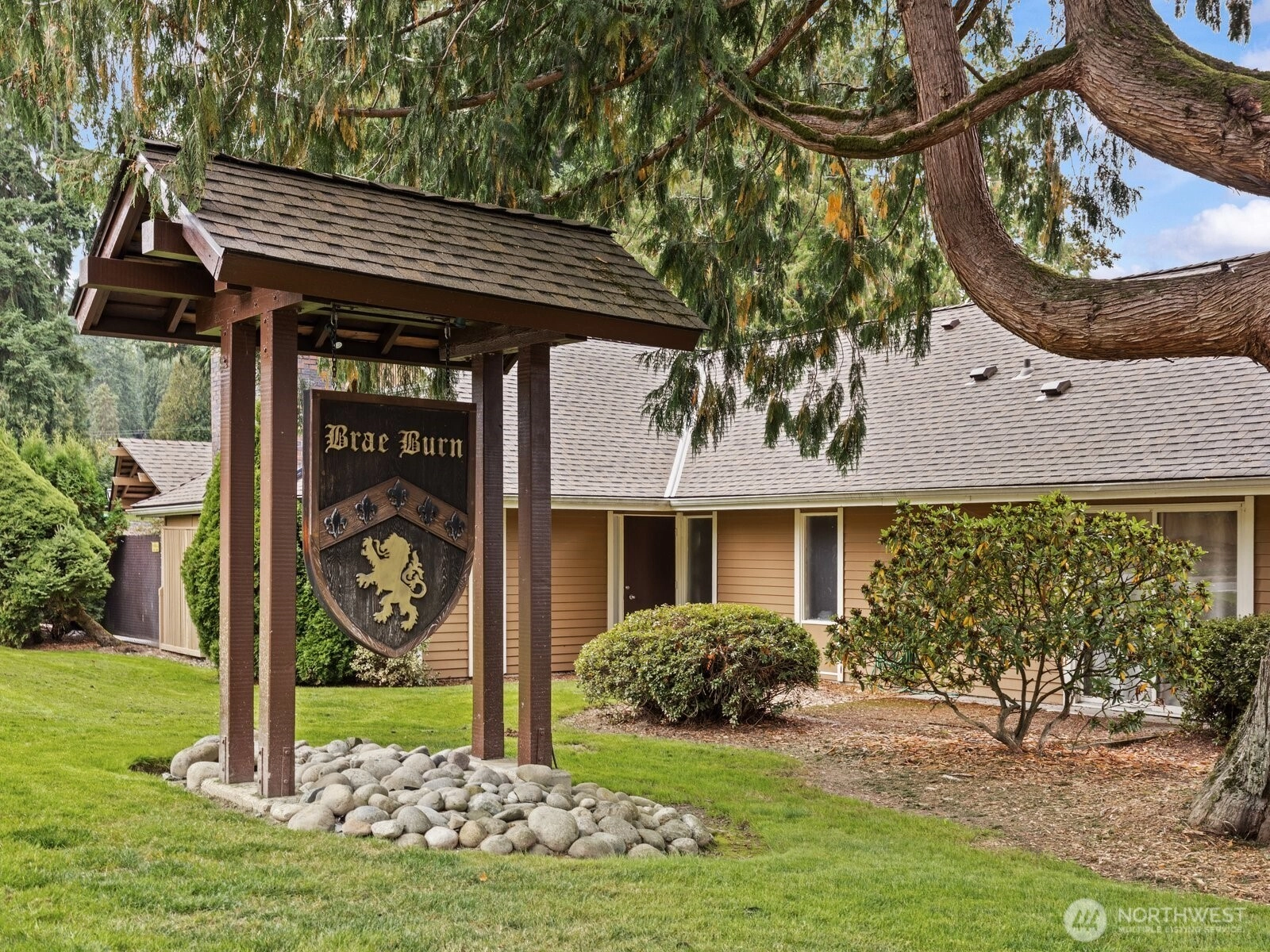 Idyllically located in the prestigious Brae Burn community, this cul-de-sac home showcases views of the 5th hole green. Large windows throughout provide ample light, while the plush carpet gives warmth to the space. Ideal for multigenerational living, both levels feature a spacious kitchen and separate laundry. Upstairs, the kitchen is flanked by 2 living areas and down the hall leads you to the bathroom and bedroom with great walk-in closet. Downstairs, a pass-through bathroom separates the large living room and bedroom. Multiple decks allow you to connect with nature or take in a round of golf. A detached garage with tons of storage space, and easy access to Bellevue, Redmond and 405 round out this great opportunity. Come make it yours!