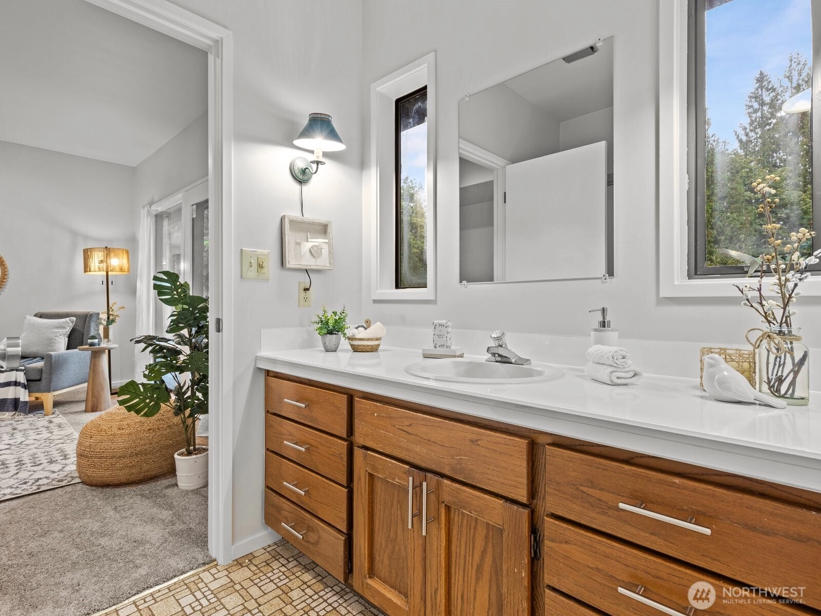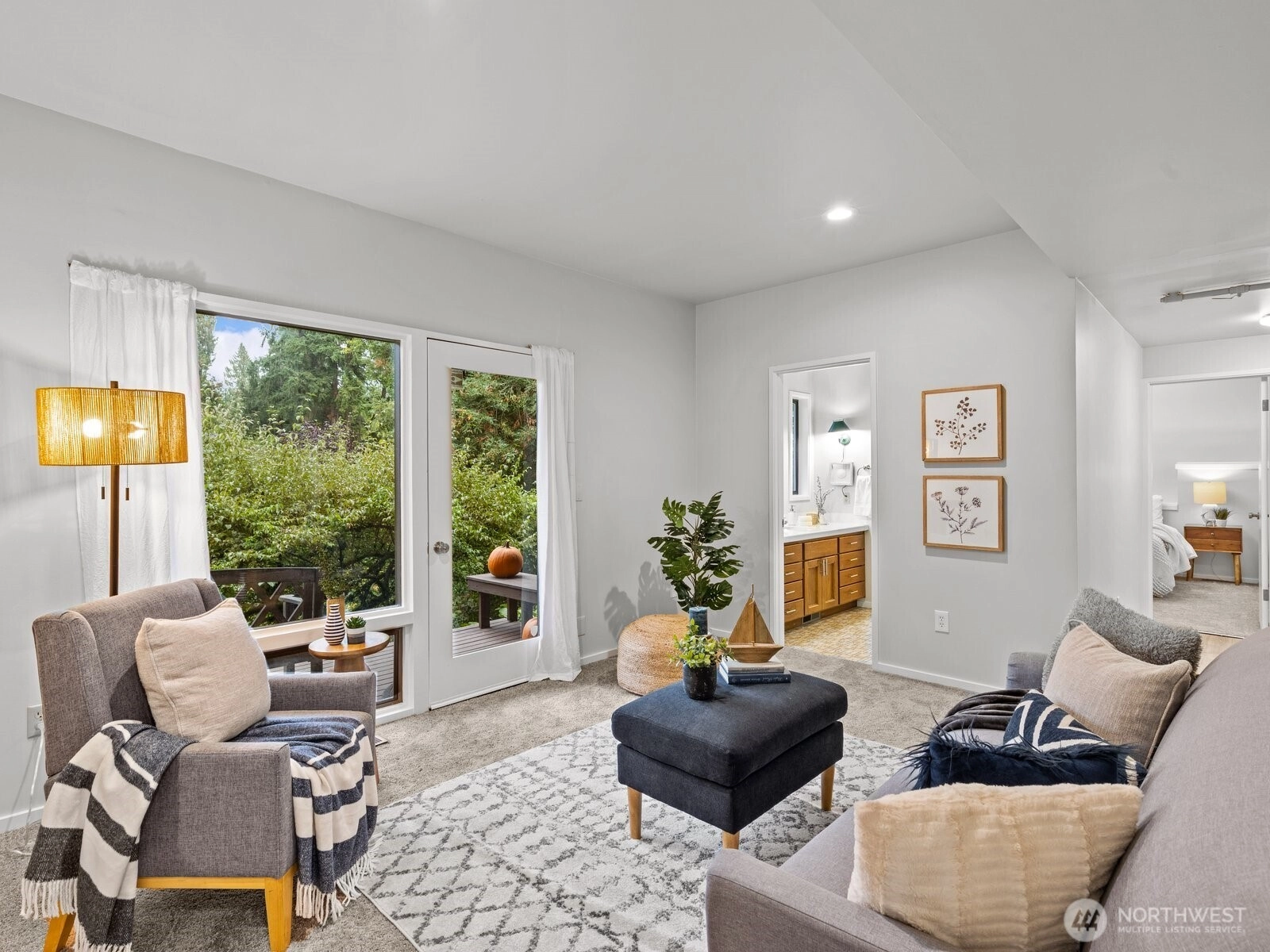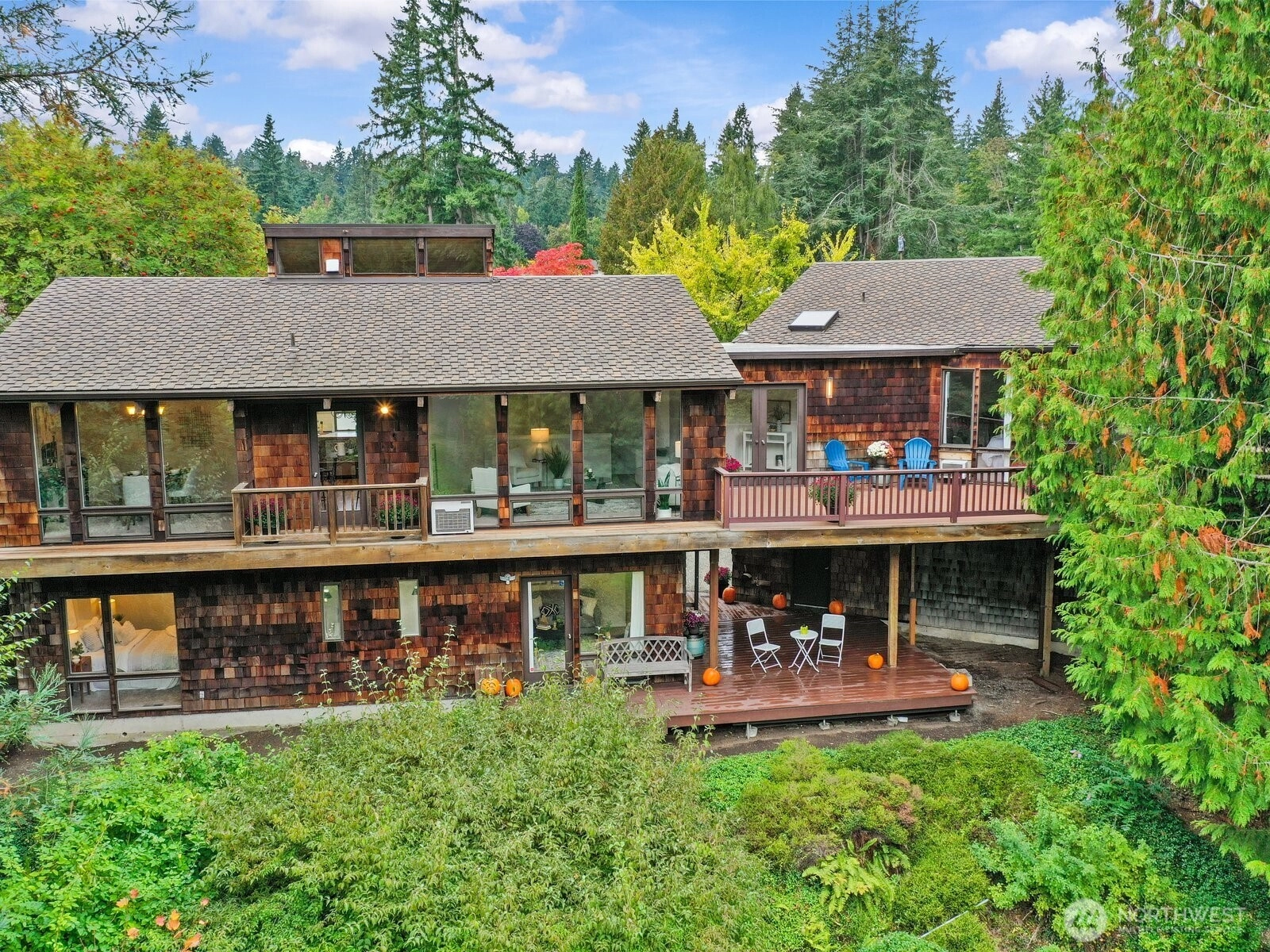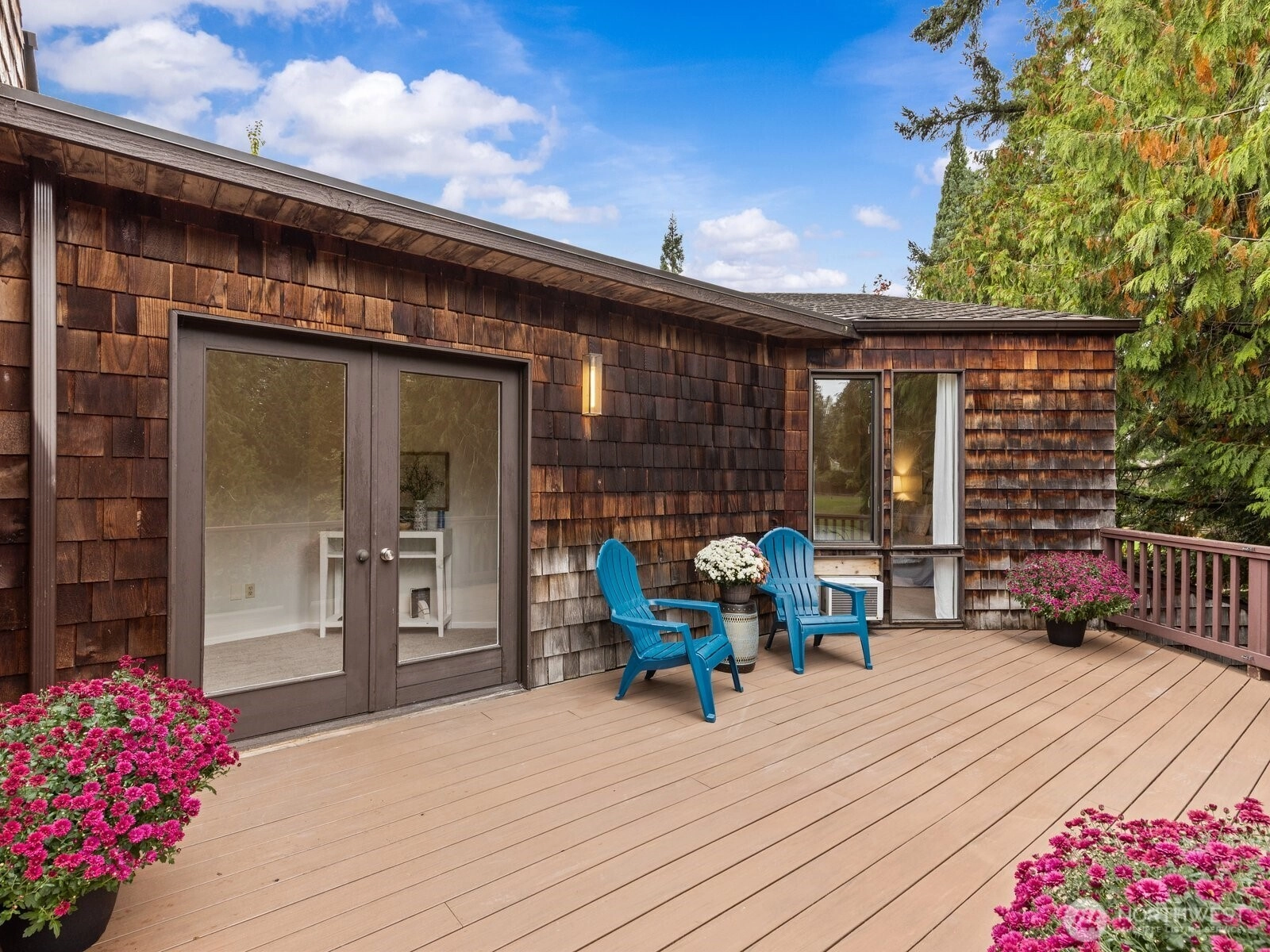 Idyllically located in the prestigious Brae Burn community, this cul-de-sac home showcases views of the 5th hole green. Large windows throughout provide ample light, while the plush carpet gives warmth to the space. Ideal for multigenerational living, both levels feature a spacious kitchen and separate laundry. Upstairs, the kitchen is flanked by 2 living areas and down the hall leads you to the bathroom and bedroom with great walk-in closet. Downstairs, a pass-through bathroom separates the large living room and bedroom. Multiple decks allow you to connect with nature or take in a round of golf. A detached garage with tons of storage space, and easy access to Bellevue, Redmond and 405 round out this great opportunity. Come make it yours!