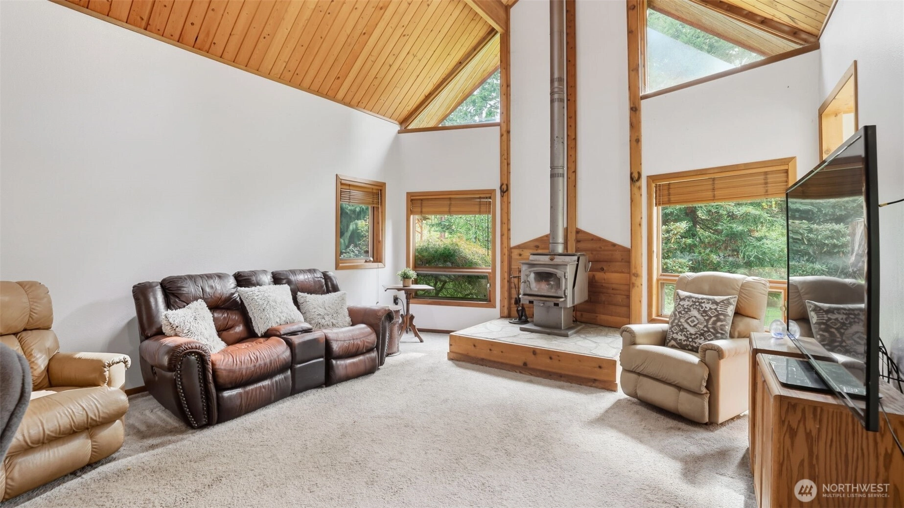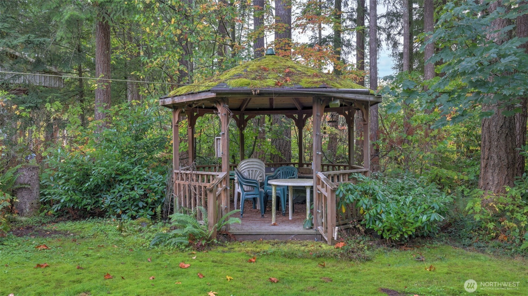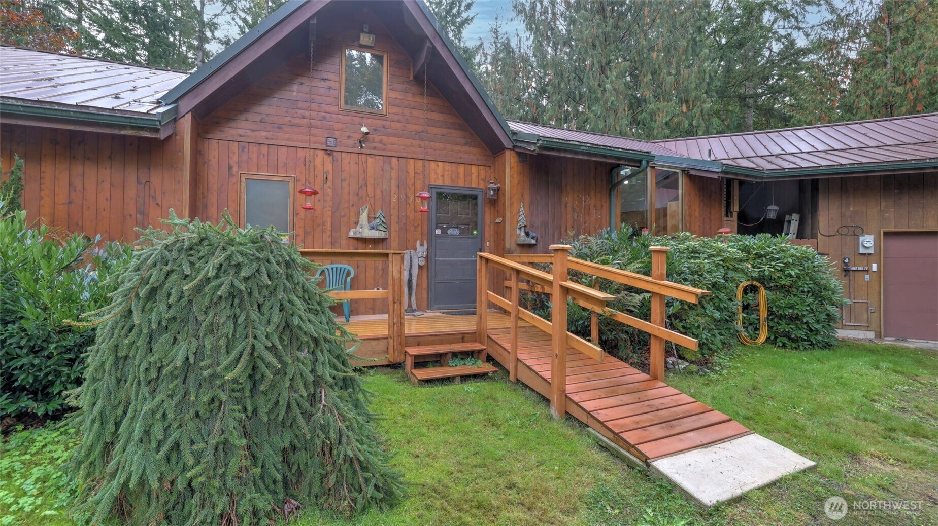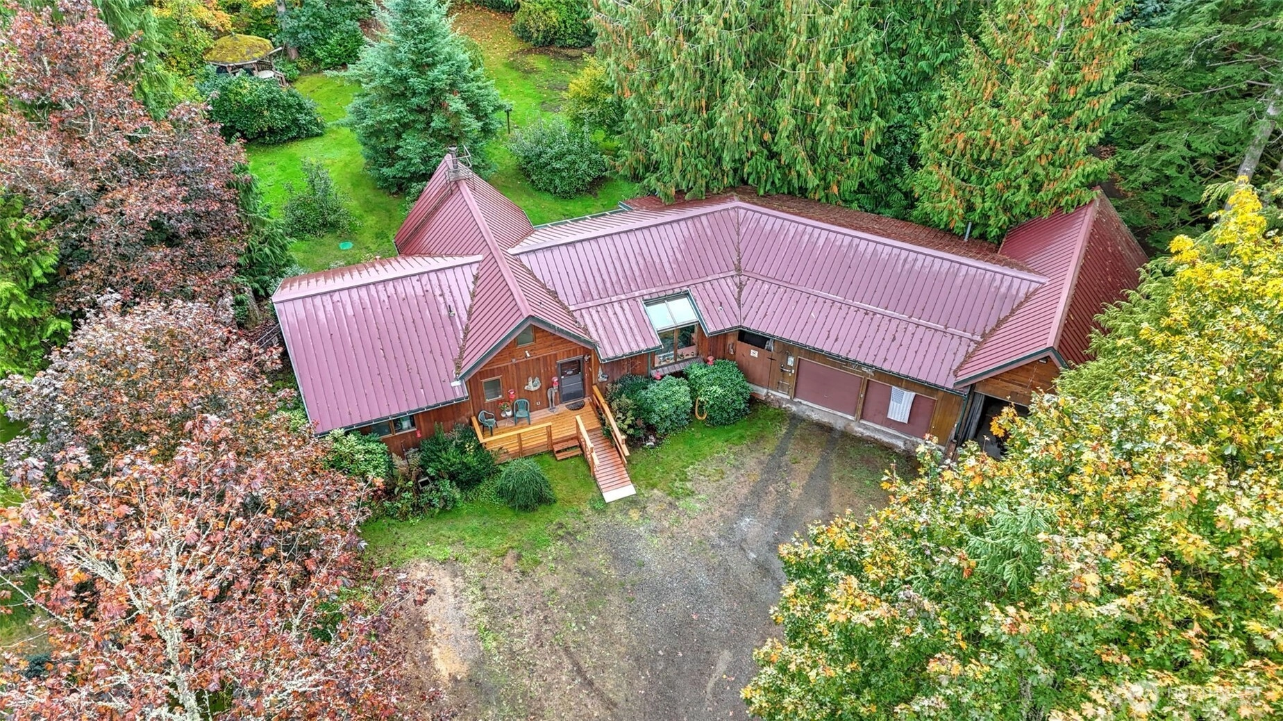 Welcome to Enumclaw! This cozy two-bedroom, one-bath (1/2 bath in garage) Lindal Cedar Home is situated on a spacious 37,796 sq ft level lot. Enjoy an enormous, covered party deck, perfect for entertaining, & a spacious 3 car garage with RV Bay & huge storage room above garage. Vaulted wood ceilings throughout with exposed beams, & a cozy wood-burning fireplace that heats the entire home. Solarium overlooking backyard, built-in desk and buffet. Outbuildings w/potting shed that has running water & bunkhouse/playhouse. Cold room w/heater for canned goods. Metal roof. New carpet prior to closing. Minutes to downtown Enumclaw & walk to Nolte State Park & Fish Lake. Adjacent property listing #2392300 for income potential.