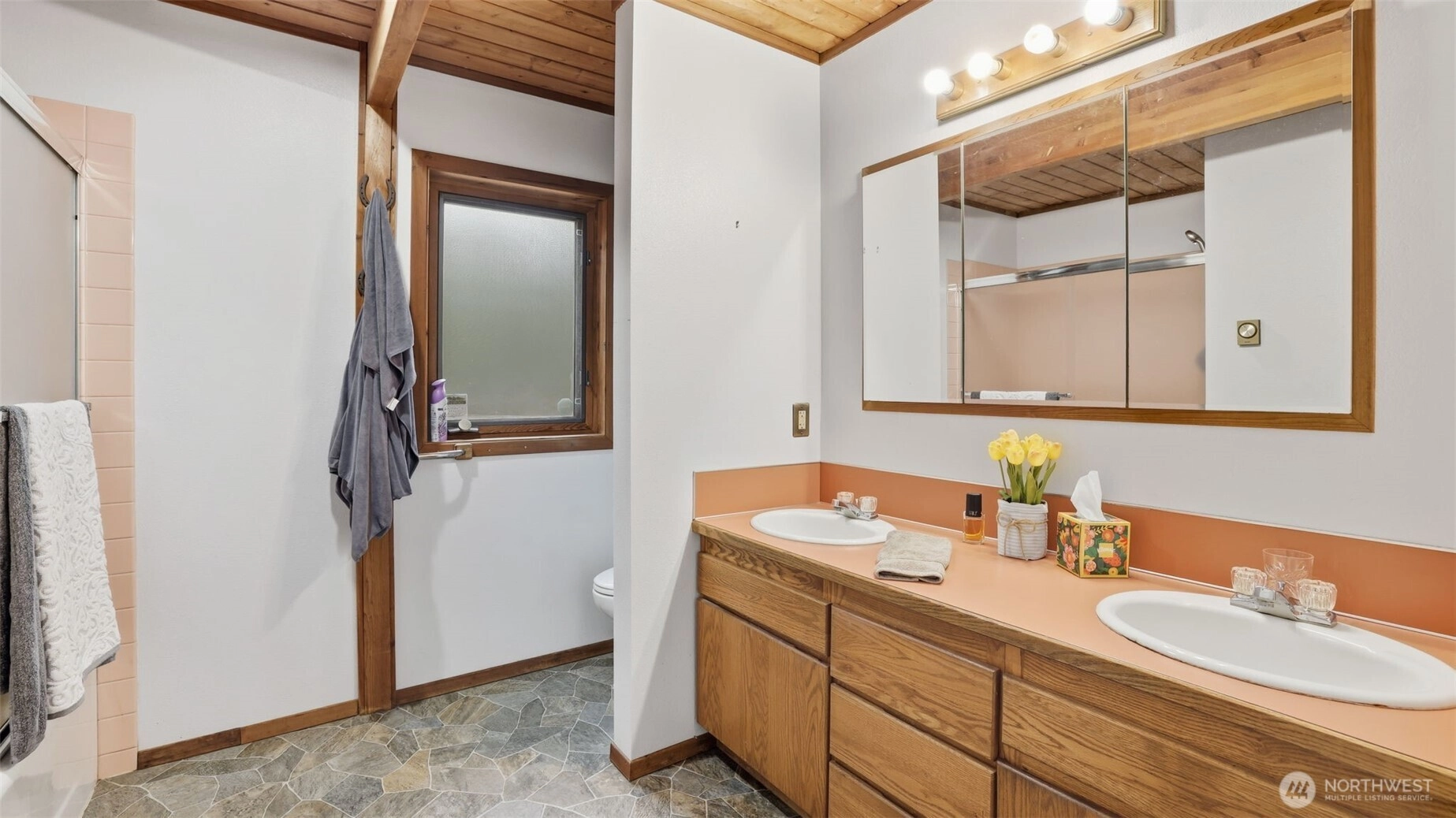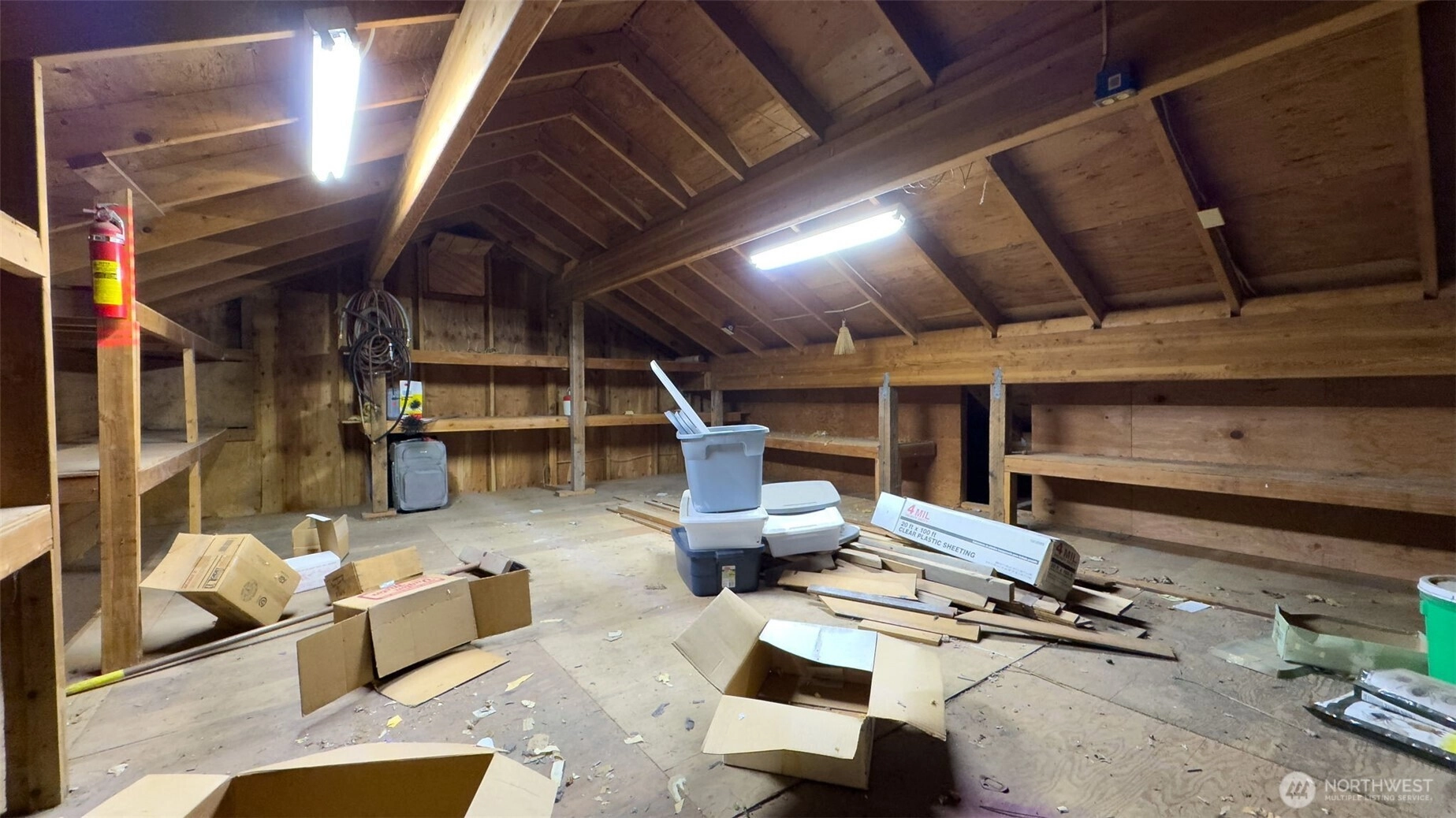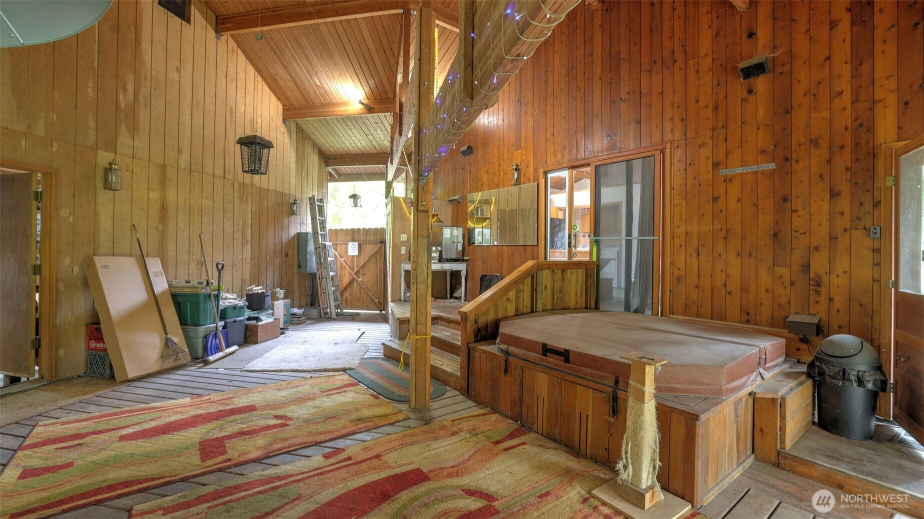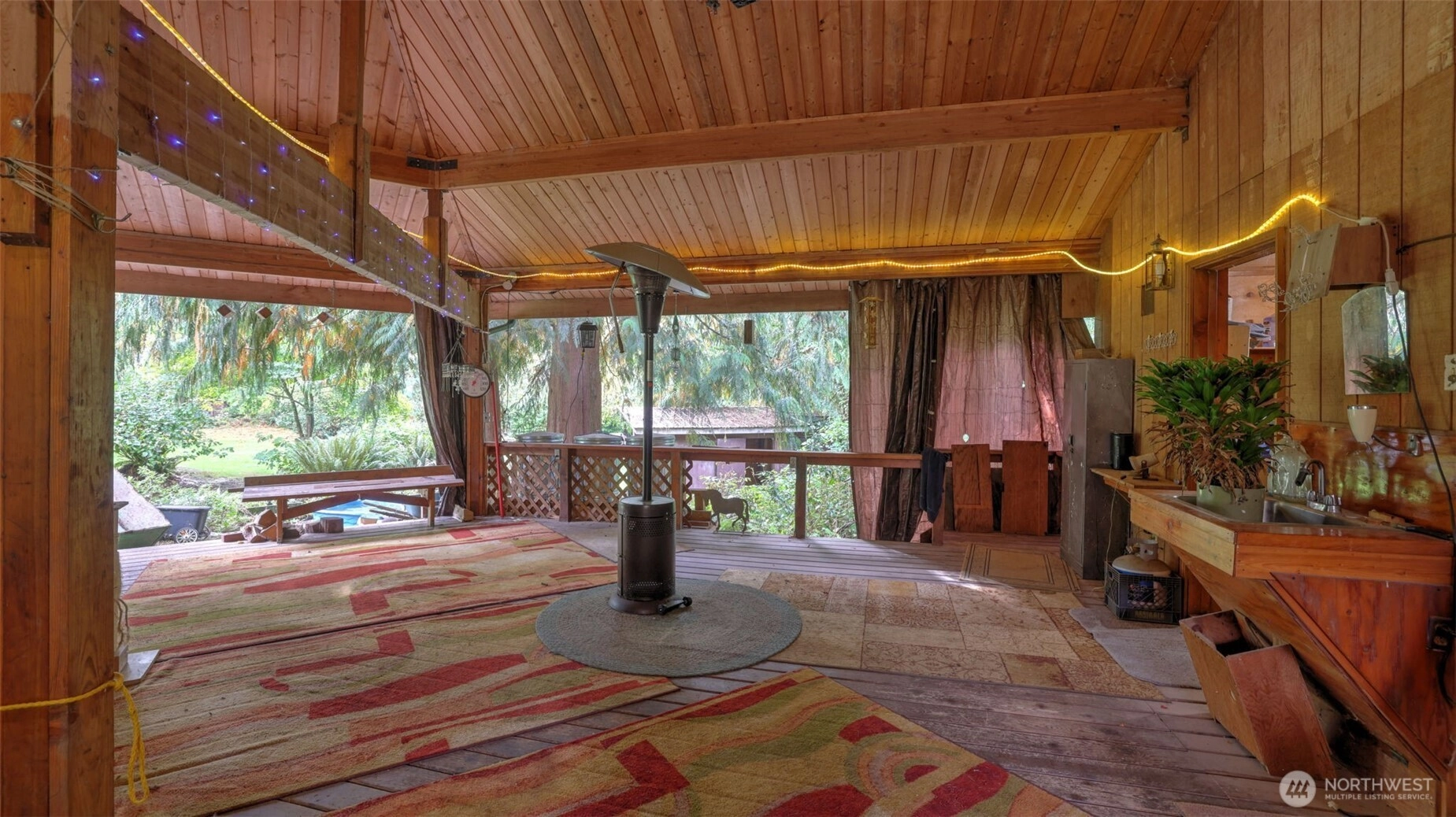 Welcome to Enumclaw! This cozy two-bedroom, one-bath (1/2 bath in garage) Lindal Cedar Home is situated on a spacious 37,796 sq ft level lot. Enjoy an enormous, covered party deck, perfect for entertaining, & a spacious 3 car garage with RV Bay & huge storage room above garage. Vaulted wood ceilings throughout with exposed beams, & a cozy wood-burning fireplace that heats the entire home. Solarium overlooking backyard, built-in desk and buffet. Outbuildings w/potting shed that has running water & bunkhouse/playhouse. Cold room w/heater for canned goods. Metal roof. New carpet prior to closing. Minutes to downtown Enumclaw & walk to Nolte State Park & Fish Lake. Adjacent property listing #2392300 for income potential.