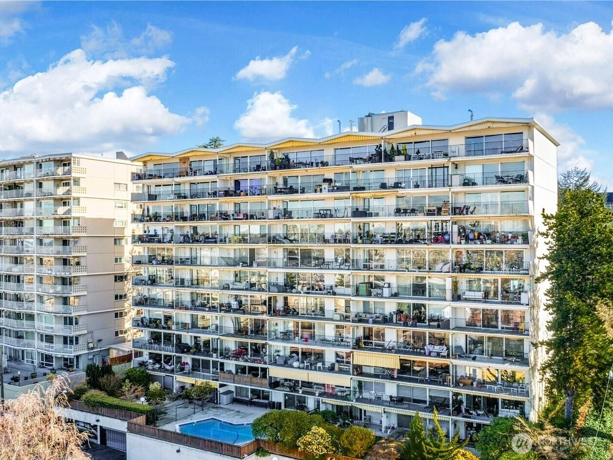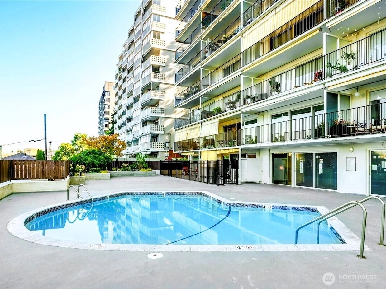 Picture Perfect View, It's the frame that needs updating!! 2Bedroom 2 Bath high-rise view condo on Capitol Hill just off Broadway. The 1042 sf unit, originally updated in 1990, is in need of cosmetic updates like new floors, paint, and bathroom improvements. Wall of picture windows showcase views of the Space Needle, Olympics, Elliot Bay, and Lake Union. Covered deck, Selling AS-IS HOA is paid through Jan, so you can watch NYE @the Needle without owing HOA fees! AVM 658K. Lamplighter Building features an 11-story structure with a pool, BBQ deck, laundry, 2 elevators, and off-street secure parking (#51). Walk everywhere! Live here and design/build your own equity while soaking in the sunset over Elliot Bay.