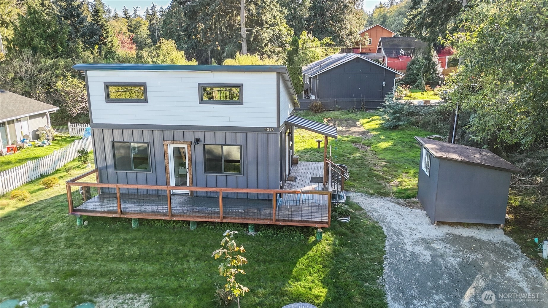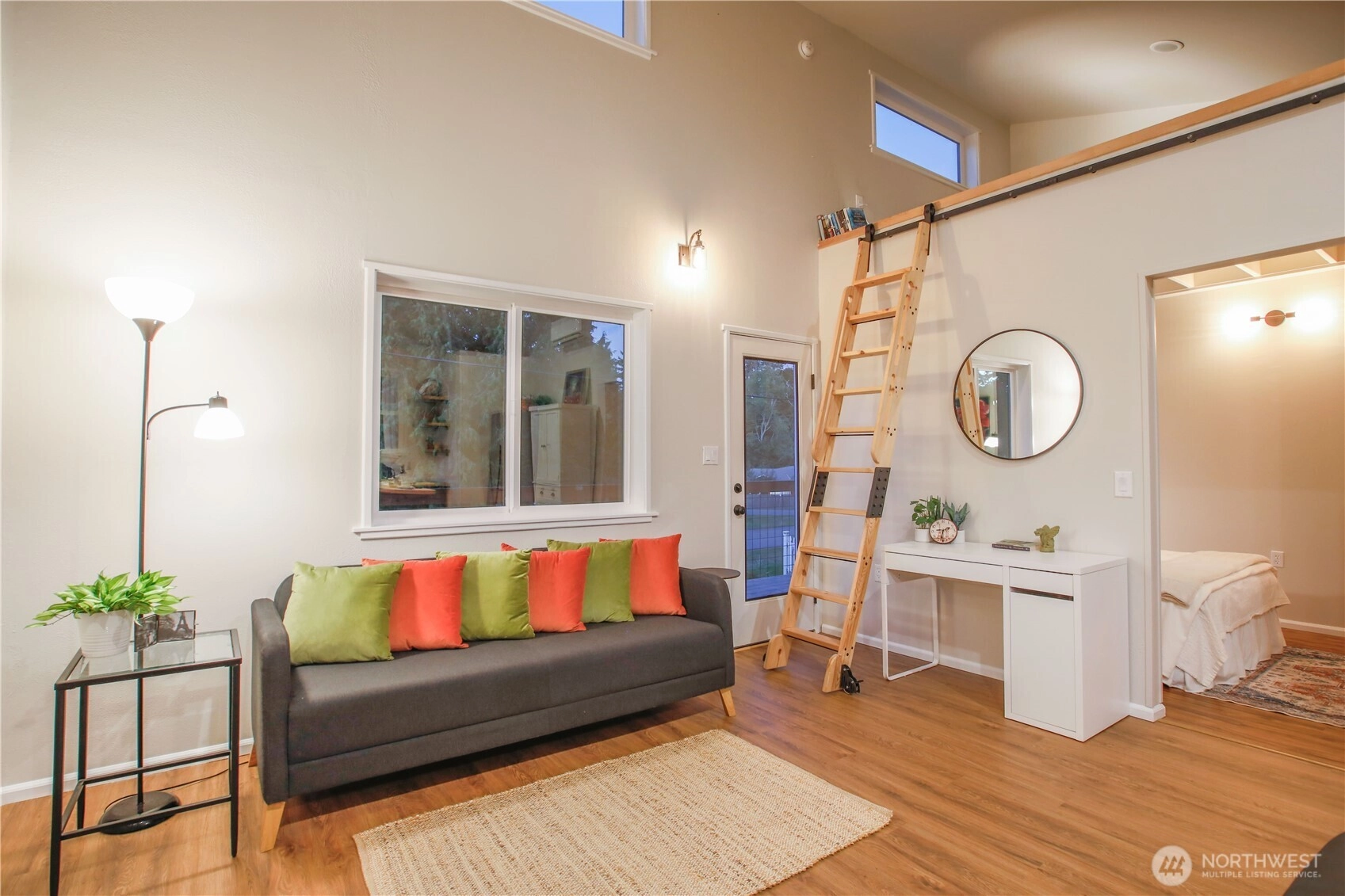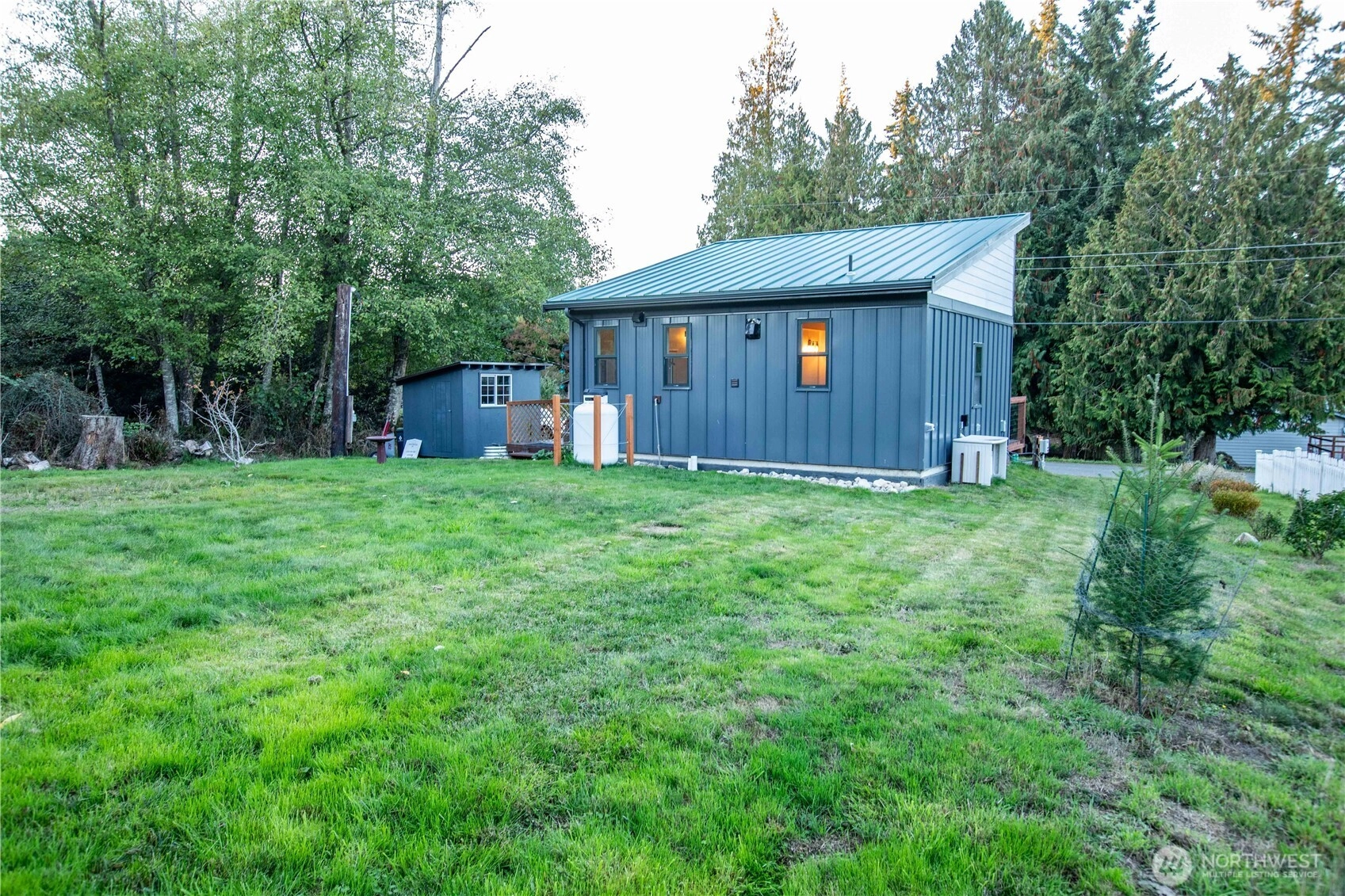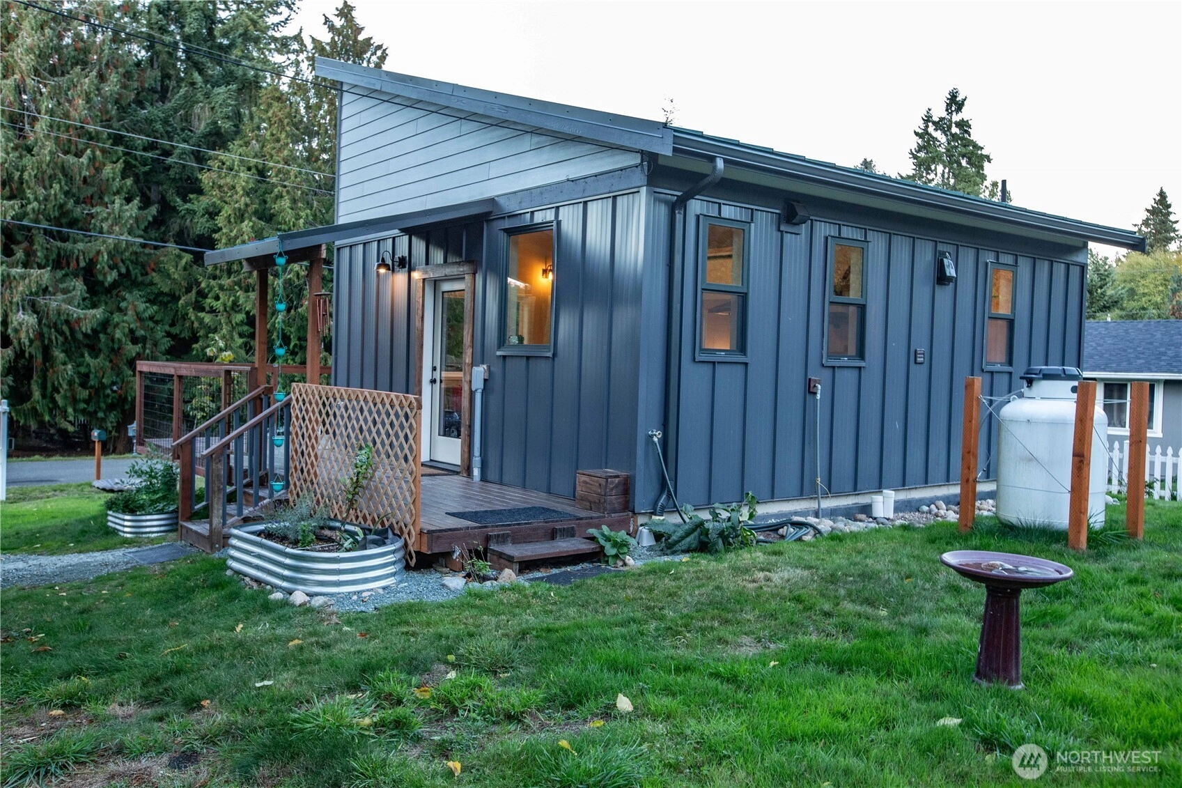 A sweet little home that lives large! This one-bedroom, 660 s.f. home has 480 s.f. on the main plus a 180 s.f. sleeping loft. It was lovingly custom-designed to let in the light and live comfortably and efficiently with a heat pump, metal roof, instant hot water, large shower, stacking washer/dryer, built-in shelves, library ladder, and a kitchen for those who love to cook. Built for ease of accessibility (add'l info avail.) Year built is 2023, but finishing touches were just completed, so it feels brand new. Owner's plans changed, so it's ready for its next owner to move right in. 2-bedroom septic. Storage shed, plenty of room to garden. Only 2 miles from the heart of Langley. Private community beach access.
