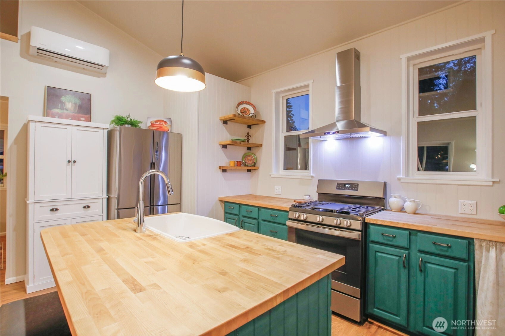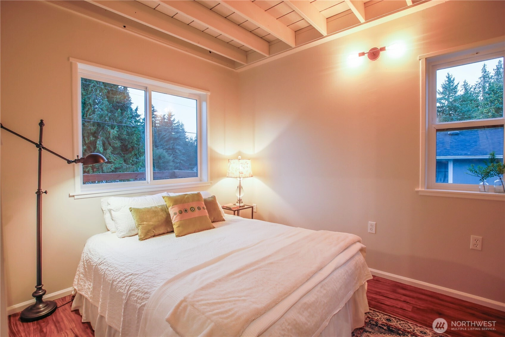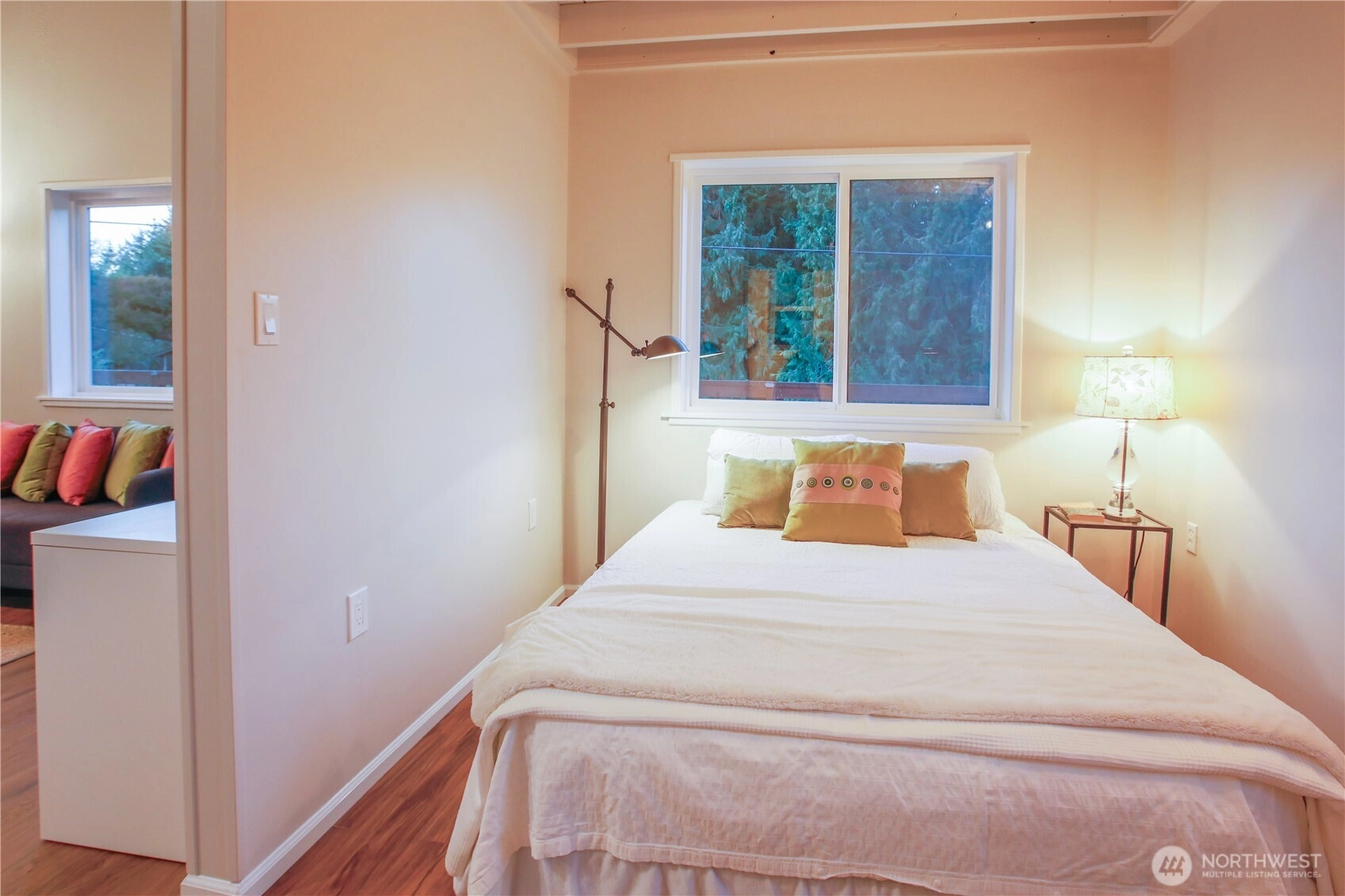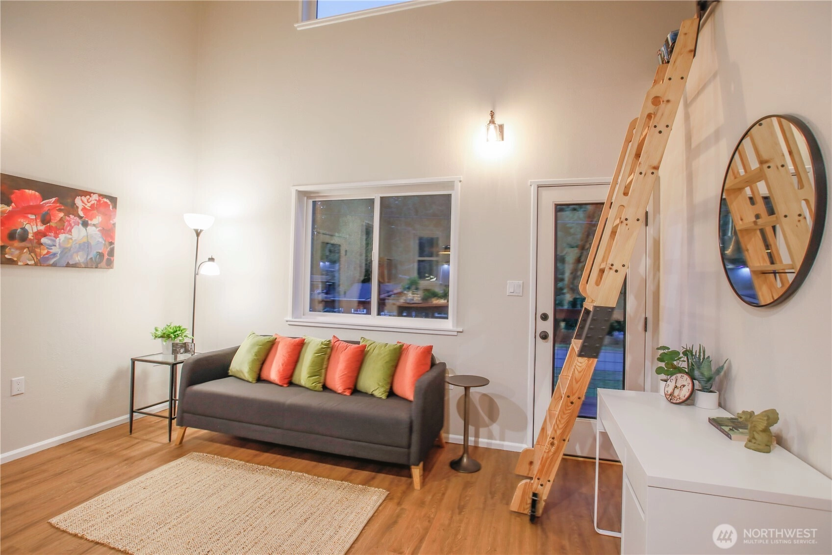 A sweet little home that lives large! This one-bedroom, 660 s.f. home has 480 s.f. on the main plus a 180 s.f. sleeping loft. It was lovingly custom-designed to let in the light and live comfortably and efficiently with a heat pump, metal roof, instant hot water, large shower, stacking washer/dryer, built-in shelves, library ladder, and a kitchen for those who love to cook. Built for ease of accessibility (add'l info avail.) Year built is 2023, but finishing touches were just completed, so it feels brand new. Owner's plans changed, so it's ready for its next owner to move right in. 2-bedroom septic. Storage shed, plenty of room to garden. Only 2 miles from the heart of Langley. Private community beach access.