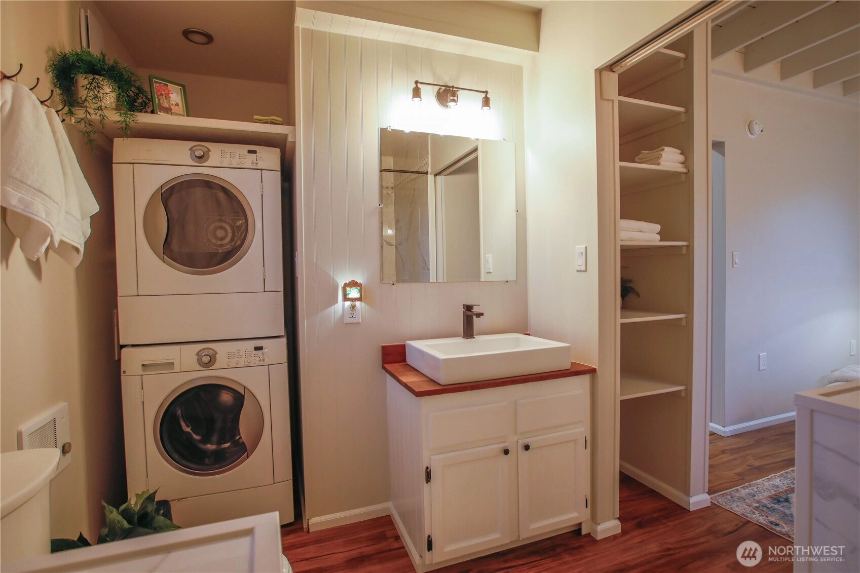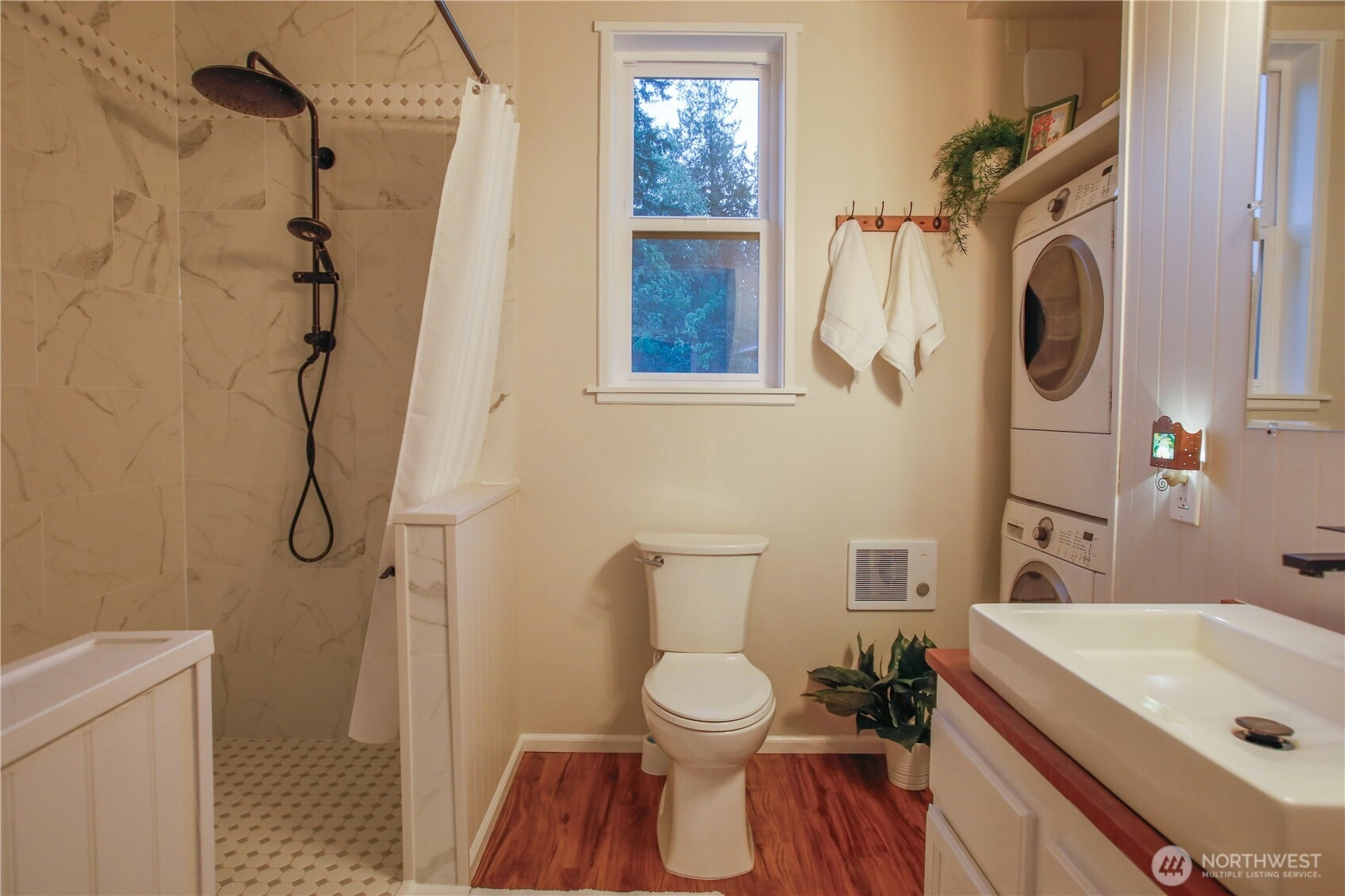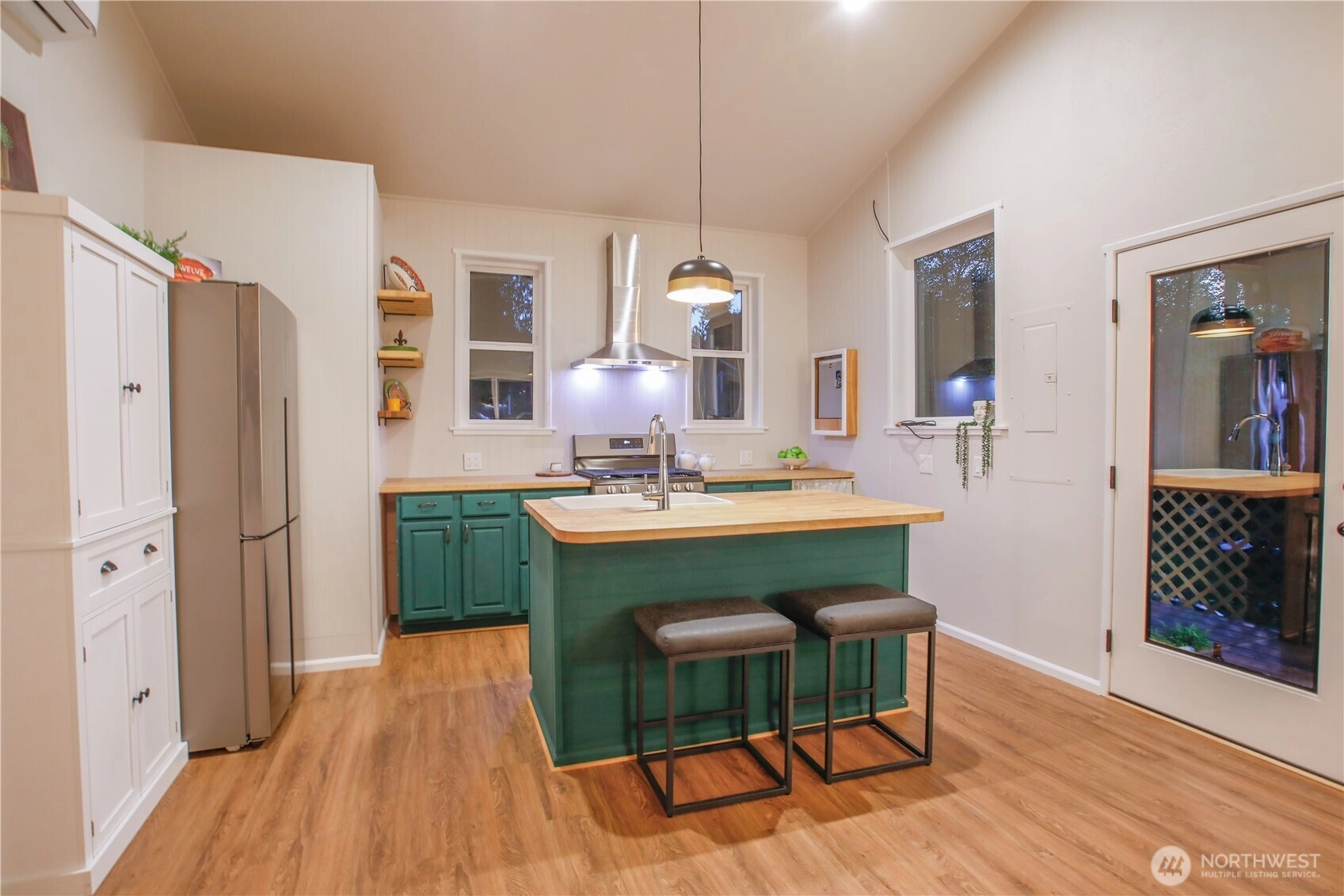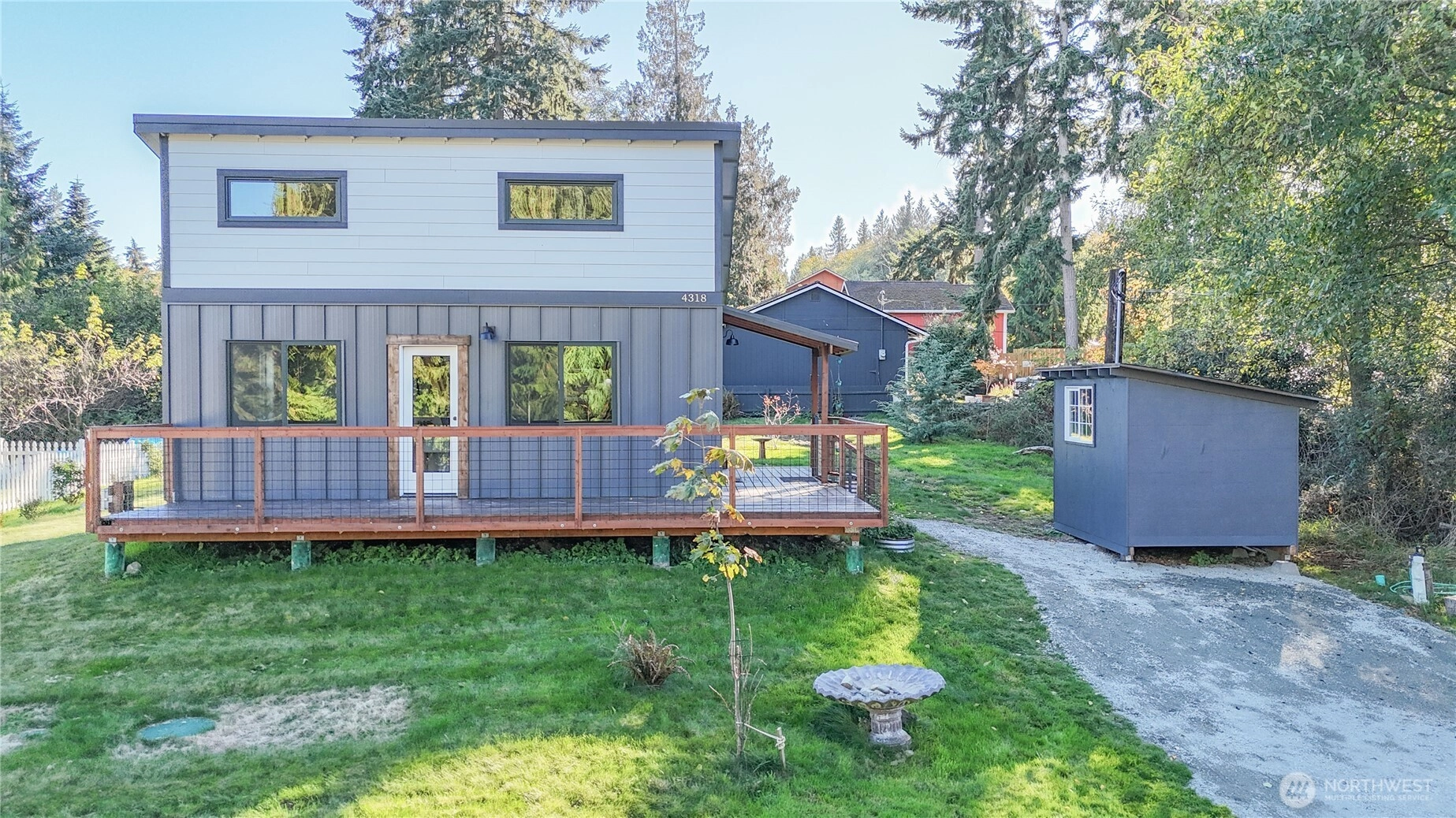 A sweet little home that lives large! This one-bedroom, 660 s.f. home has 480 s.f. on the main plus a 180 s.f. sleeping loft. It was lovingly custom-designed to let in the light and live comfortably and efficiently with a heat pump, metal roof, instant hot water, large shower, stacking washer/dryer, built-in shelves, library ladder, and a kitchen for those who love to cook. Built for ease of accessibility (add'l info avail.) Year built is 2023, but finishing touches were just completed, so it feels brand new. Owner's plans changed, so it's ready for its next owner to move right in. 2-bedroom septic. Storage shed, plenty of room to garden. Only 2 miles from the heart of Langley. Private community beach access.