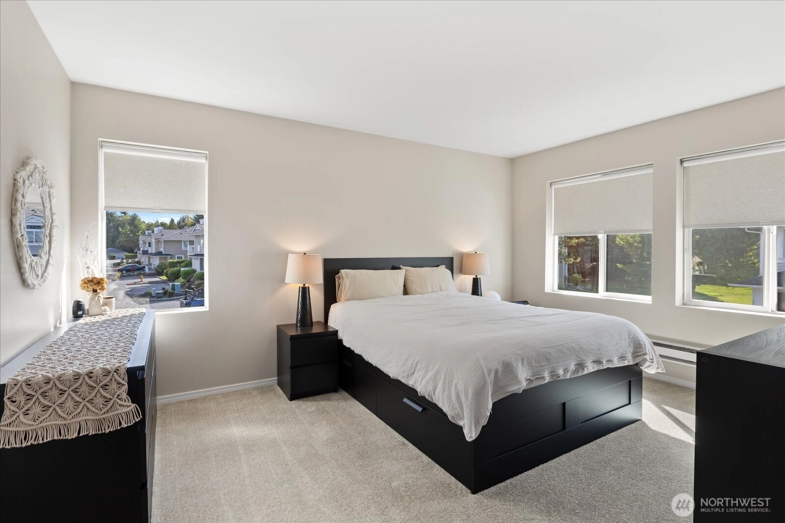 Updated 2 bed/1 bath townhouse. Light & bright S facing unit w/great natural light. Kitchen boasts quartz counters, refreshed cabinets/hardware, new appliances & sensor lighting. Open to dining & living rm w/vaulted ceilings, cozy wood burning fireplace & built in shelves. Xtra pantry + new W/D across from kitchen. Bathroom features new flooring, new vanity, new fixtures & reglazed tub. Generous primary w/walk in closet. New LVP flooring, new thermostat, new H2O heater, updated pex pipe + updated light fixtures & window treatments. The garage...huge bonus! 48 amp EV charging w/load balancer on 100 amp panel. Finished out & painted, w/shelving, workbench & loft storage. A standout unit! NO RENTAL CAP! Close to parks/shopping/commuter routes.