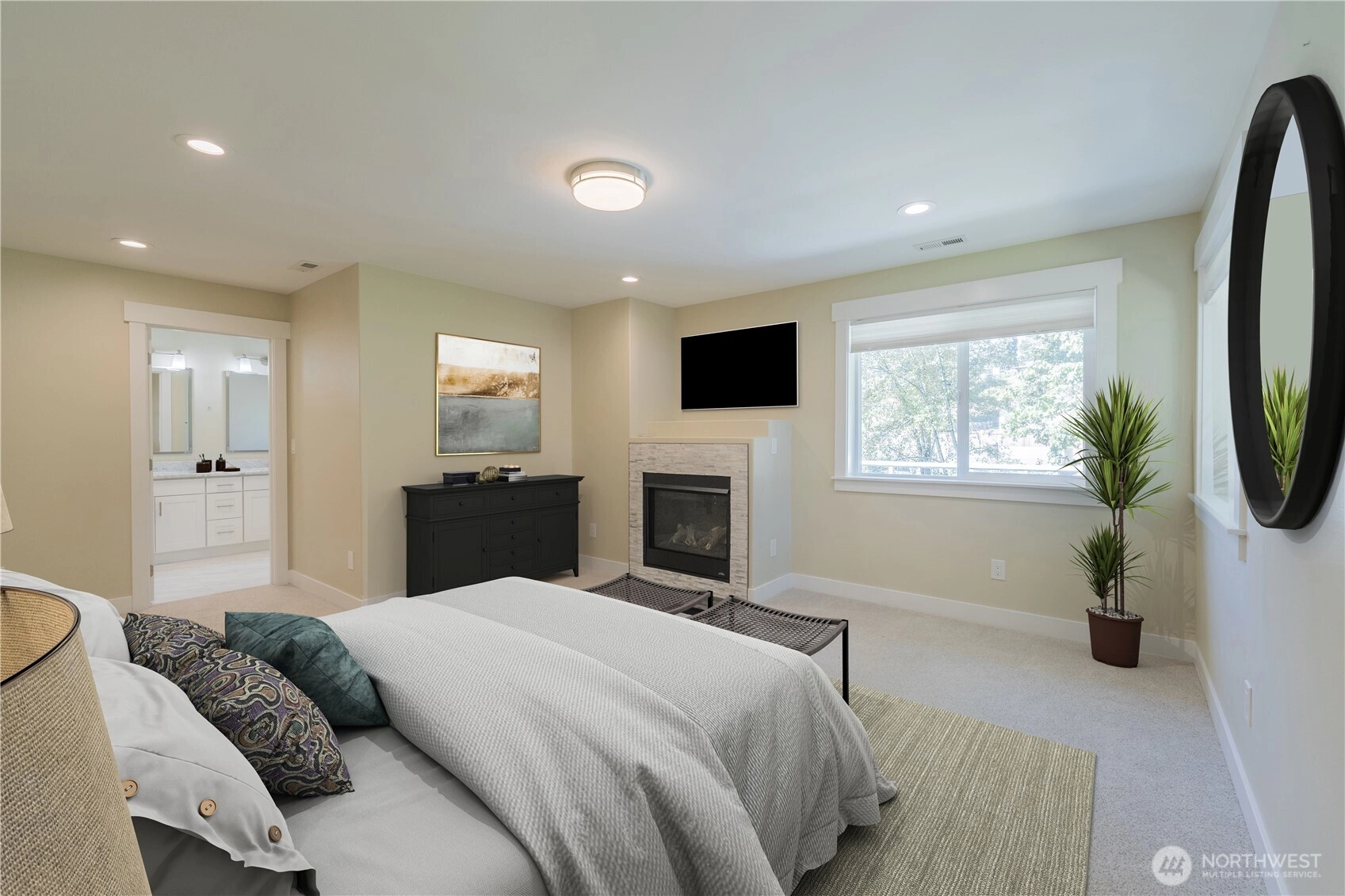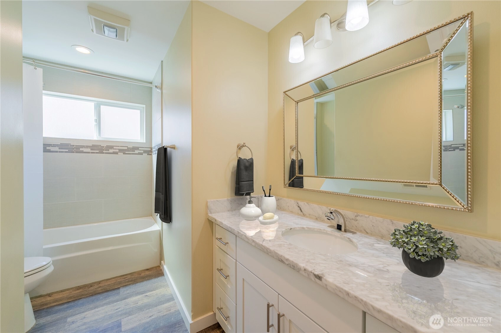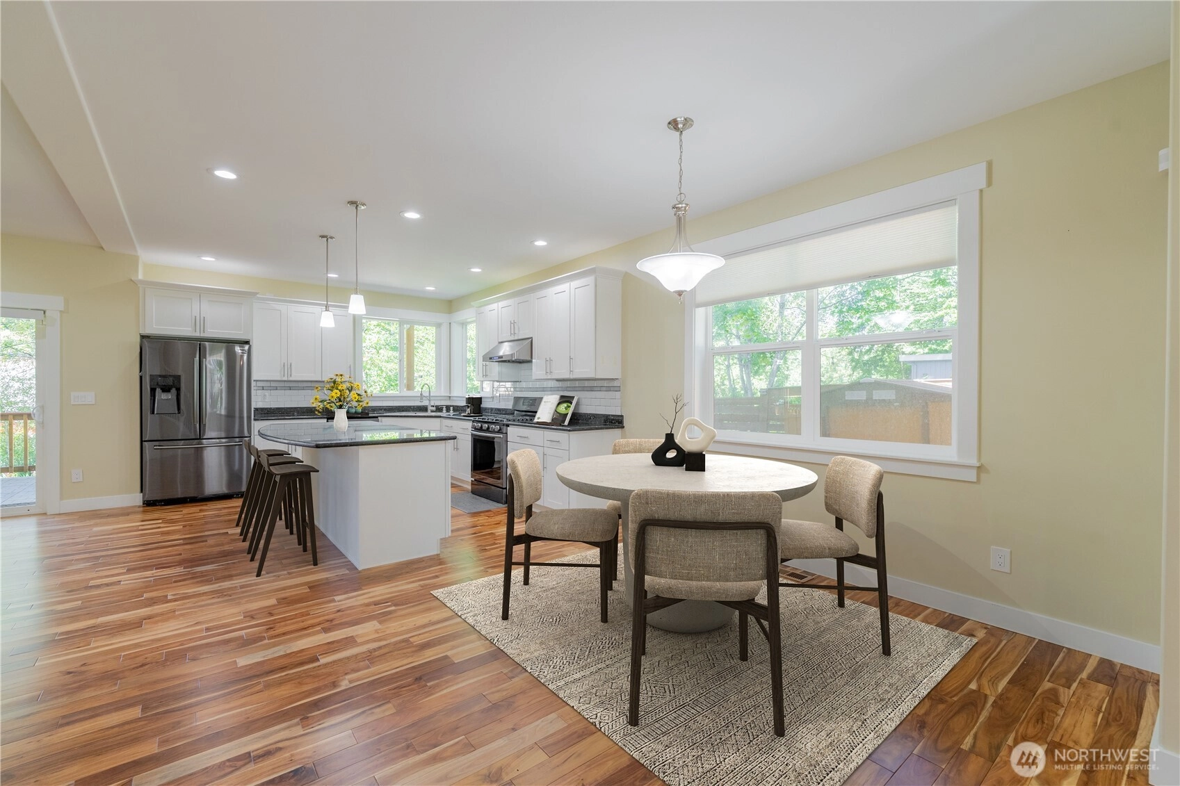 Welcome HOME to this modern, comfort, spacious 5BR, 2.75BA 3,200 sq ft home in a gated enclave of only 4 houses. So NO HOA :). Enjoy an open-concept living w/vaulted ceiling, hardwood floor, a chef's kitchen with SS appliances & a rare main-level bedroom. A huge covered deck for year-round dining/BBQs. Upstair are 4 bedrooms, the bonus den/family room w/balcony acces to another big, long deck. The primary suite features 5-piece bath w/jetted tub, a romantic fireplace and a huge walk-in closet. Fenced yard backing to a greenbelt for an ideal outdoor oasis. Home comes with A/C, tankless hot water heater & 2-car garage. Prime location less than 5 minutes to SeaTac Airport, Southcenter, light rail station. Hurry, this one won't last long!