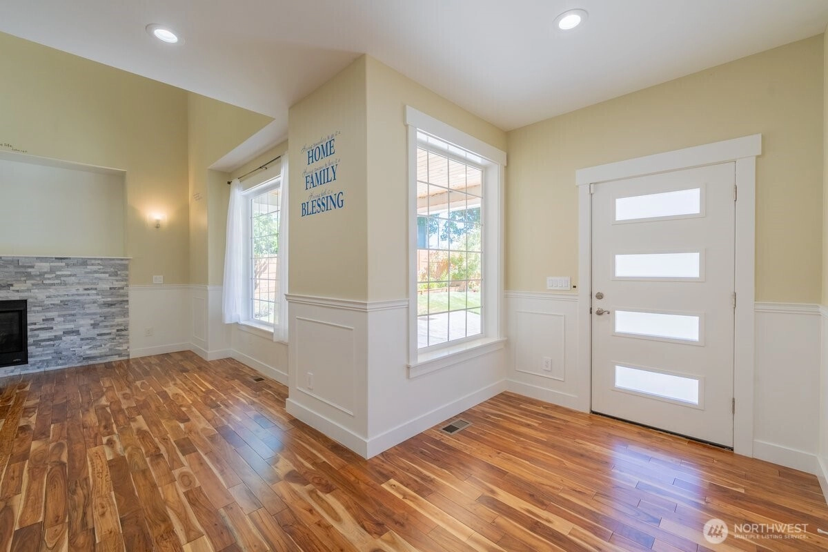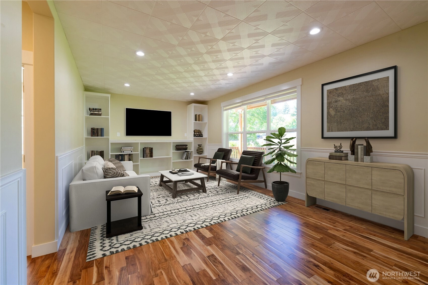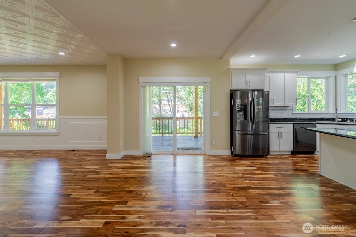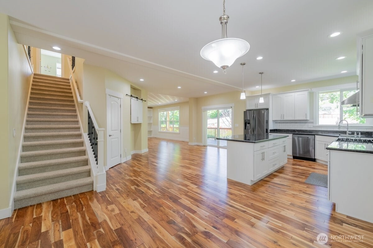 Welcome HOME to this modern, comfort, spacious 5BR, 2.75BA 3,200 sq ft home in a gated enclave of only 4 houses. So NO HOA :). Enjoy an open-concept living w/vaulted ceiling, hardwood floor, a chef's kitchen with SS appliances & a rare main-level bedroom. A huge covered deck for year-round dining/BBQs. Upstair are 4 bedrooms, the bonus den/family room w/balcony acces to another big, long deck. The primary suite features 5-piece bath w/jetted tub, a romantic fireplace and a huge walk-in closet. Fenced yard backing to a greenbelt for an ideal outdoor oasis. Home comes with A/C, tankless hot water heater & 2-car garage. Prime location less than 5 minutes to SeaTac Airport, Southcenter, light rail station. Hurry, this one won't last long!