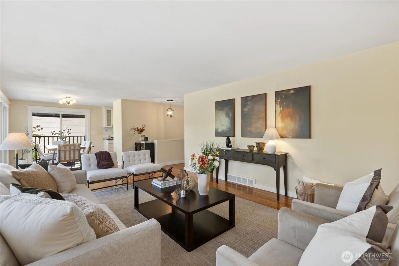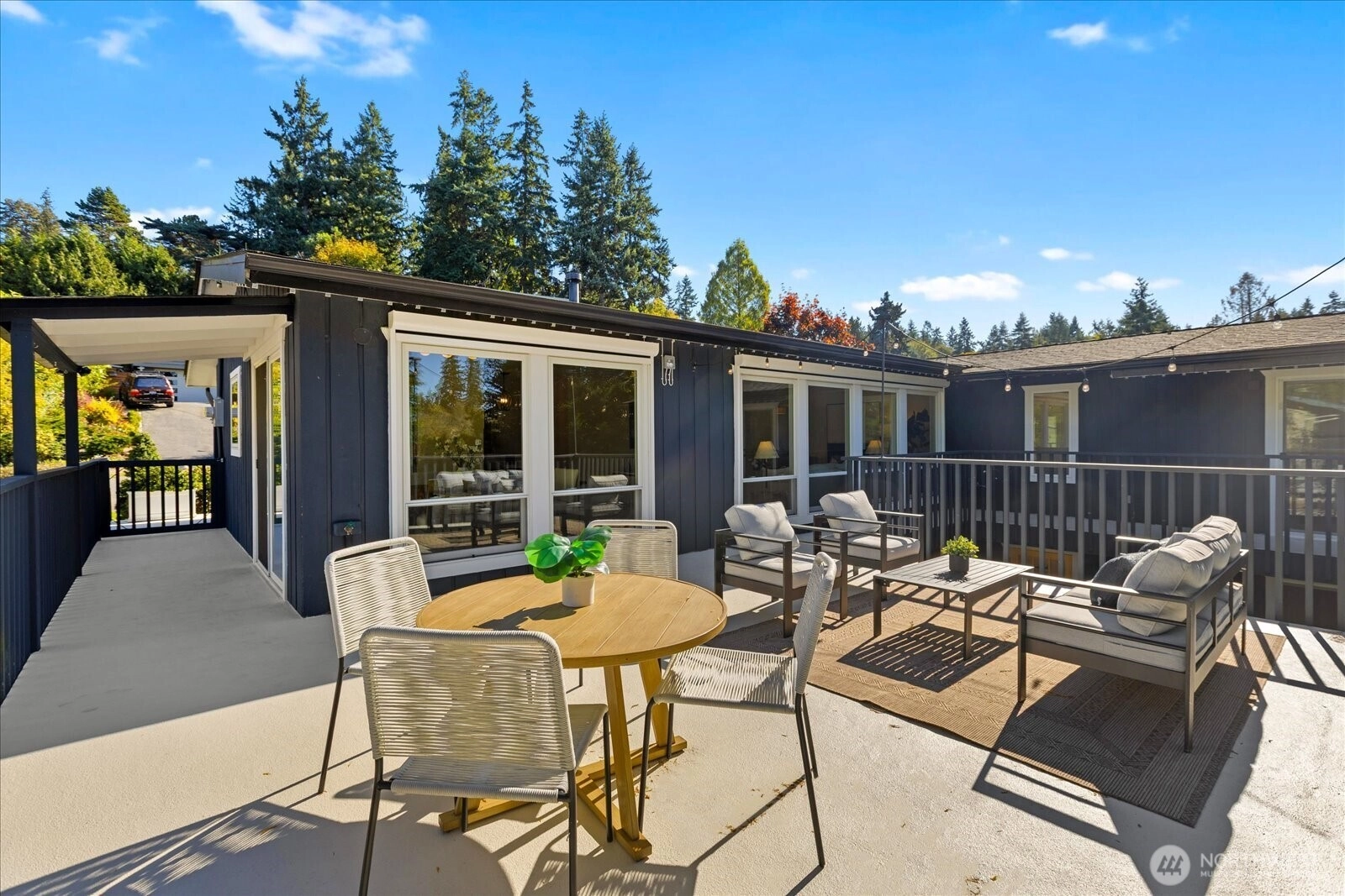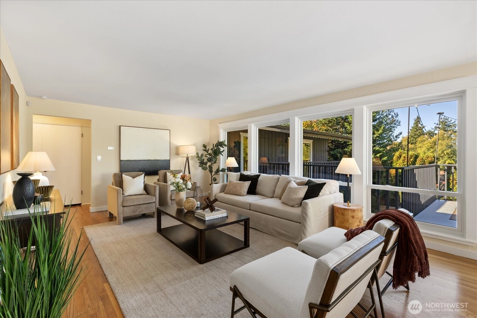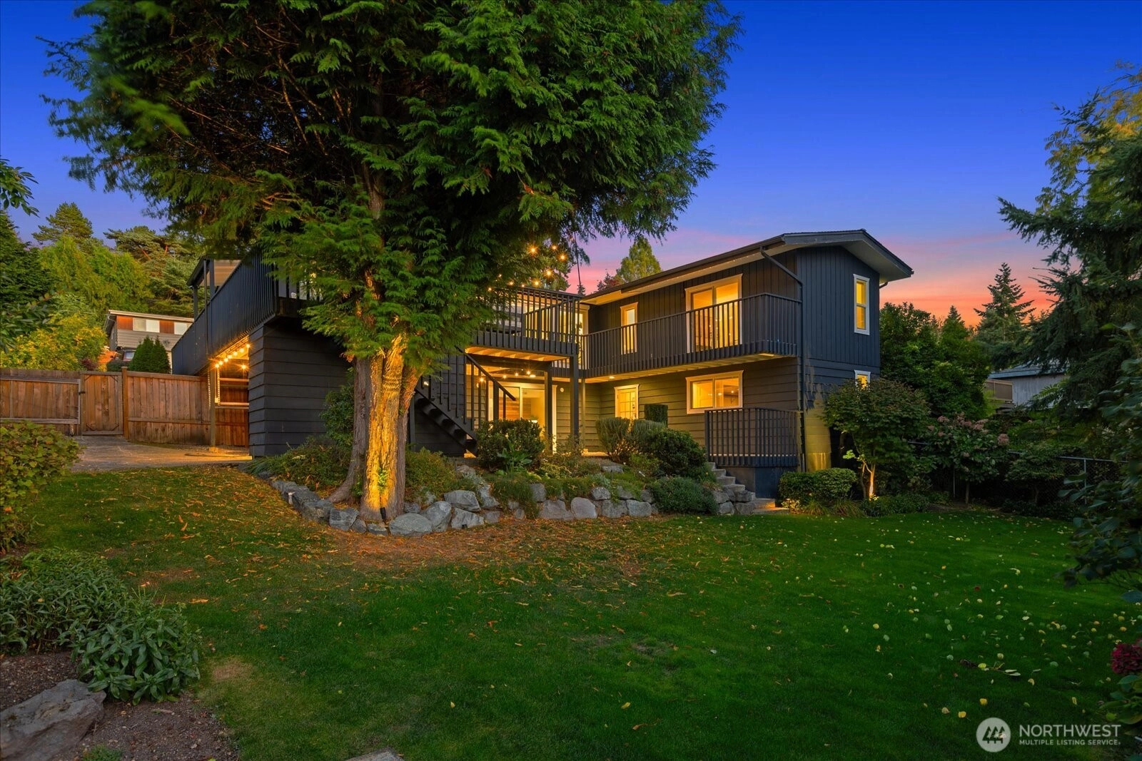 Remodeled and move in ready rambler with basement on a quiet street in Richmond Beach. This 5 bed home features modern kitchen with quartz counters, hardwoods on most of main floor and open dining/living areas. Amazing light/wall of western facing windows with wrap around deck. Main floor primary suite with double closet/walk in, large walk in shower and laundry chute. 2 more beds and remodeled main floor bath. Downstairs is a great family room, tons of storage, 2 more beds and a remodeled bath with cedar sauna! Access to back patio, shed/gardening area, fully fenced/private and beautifully landscaped yard with sprinklers and lighting. Tons of indoor/outdoor entertaining spaces. Minutes to beaches, parks, schools and restaurants.