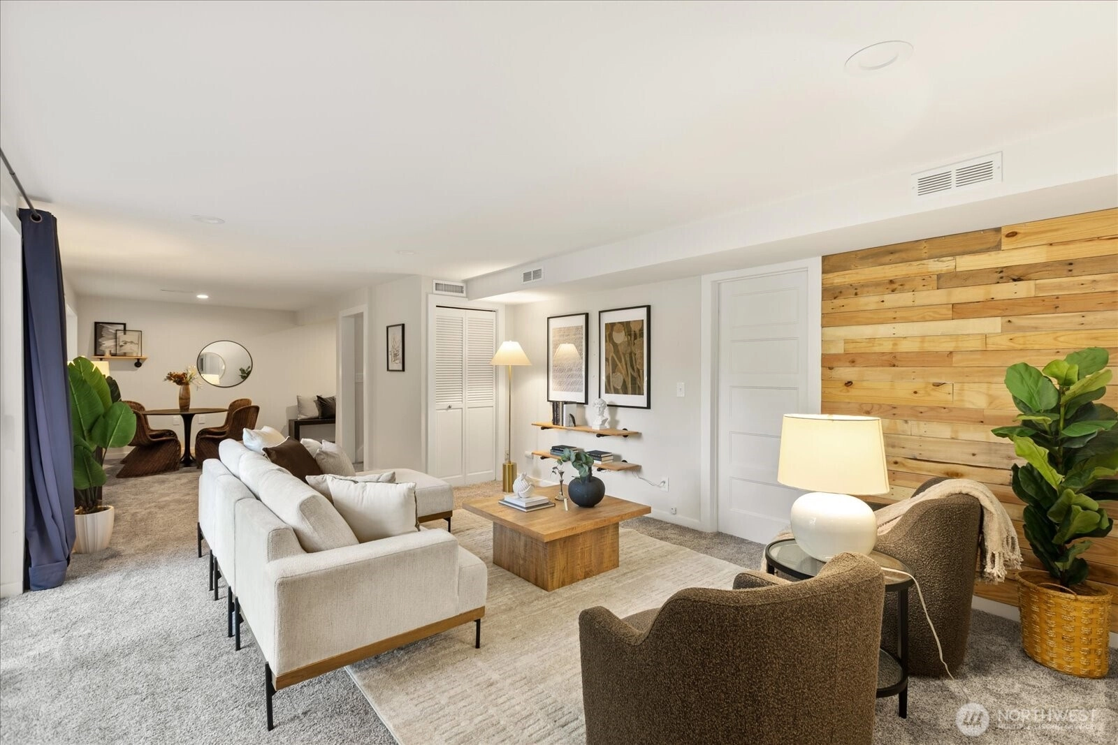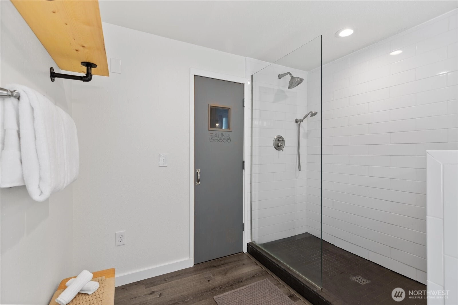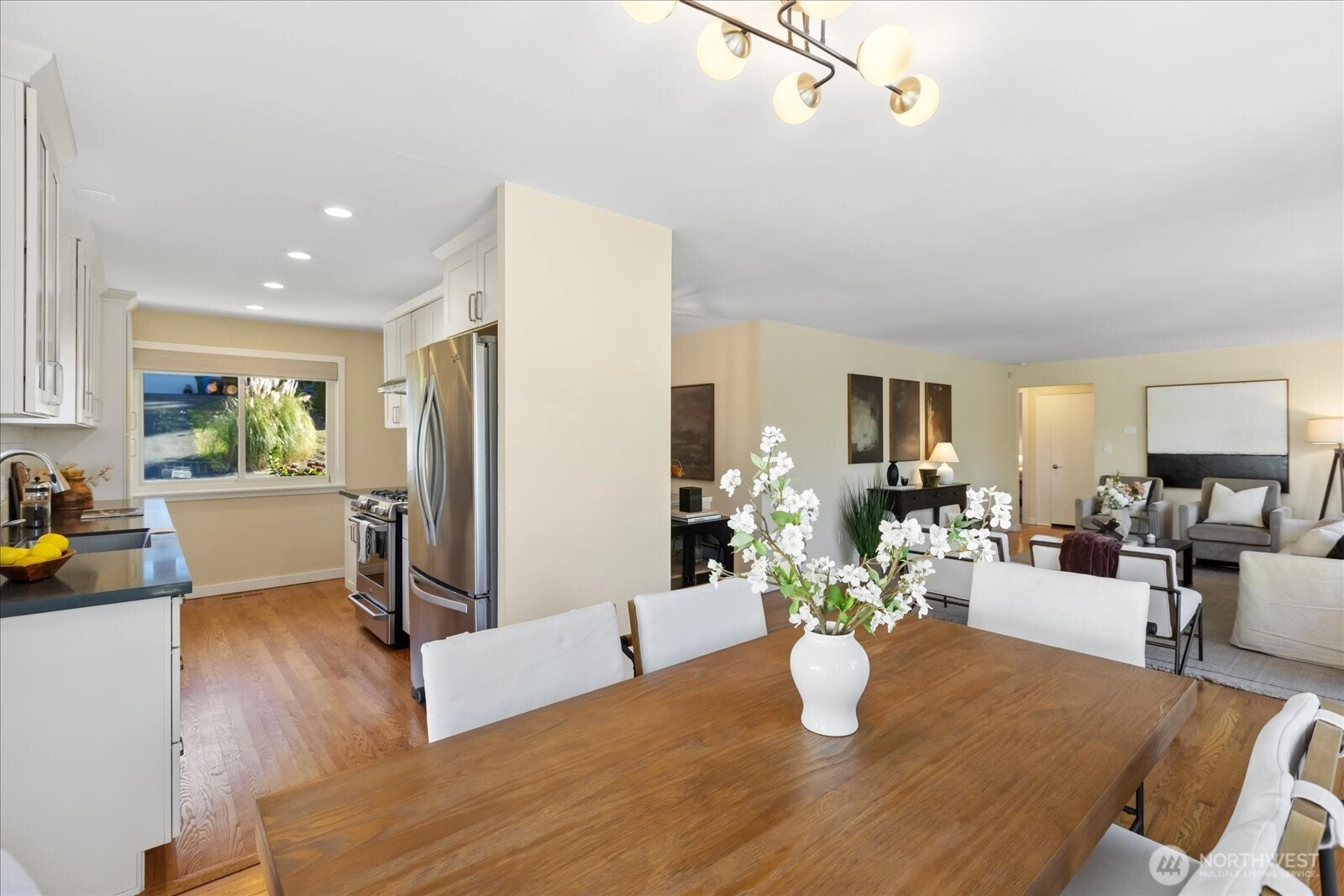 Remodeled and move in ready rambler with basement on a quiet street in Richmond Beach. This 5 bed home features modern kitchen with quartz counters, hardwoods on most of main floor and open dining/living areas. Amazing light/wall of western facing windows with wrap around deck. Main floor primary suite with double closet/walk in, large walk in shower and laundry chute. 2 more beds and remodeled main floor bath. Downstairs is a great family room, tons of storage, 2 more beds and a remodeled bath with cedar sauna! Access to back patio, shed/gardening area, fully fenced/private and beautifully landscaped yard with sprinklers and lighting. Tons of indoor/outdoor entertaining spaces. Minutes to beaches, parks, schools and restaurants.