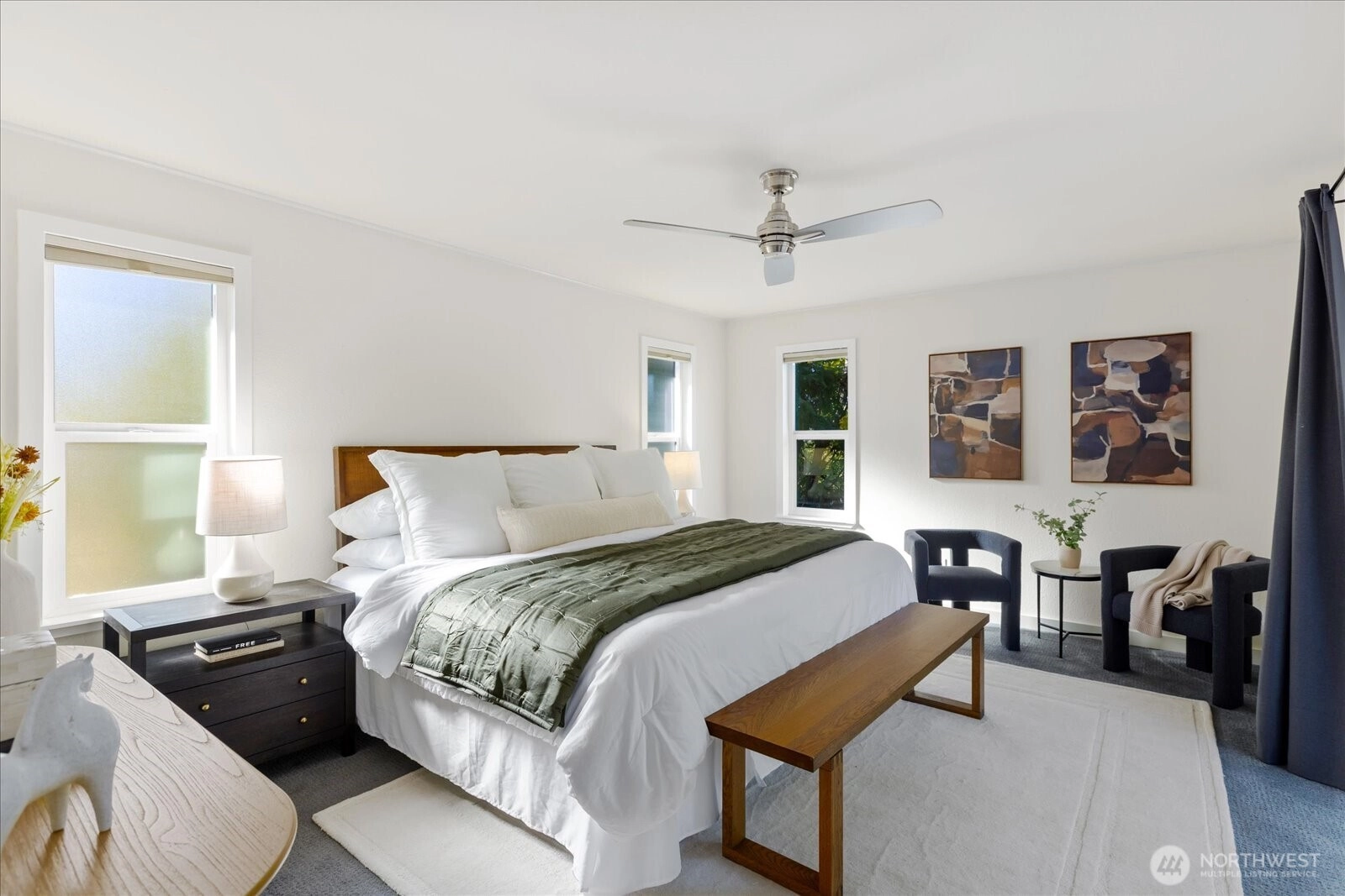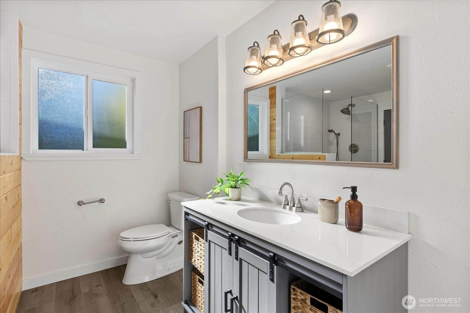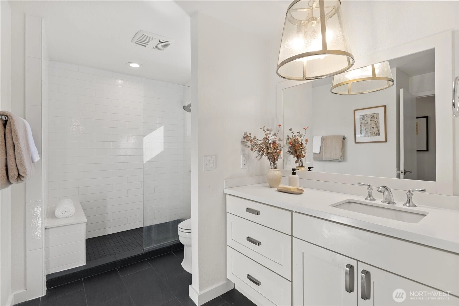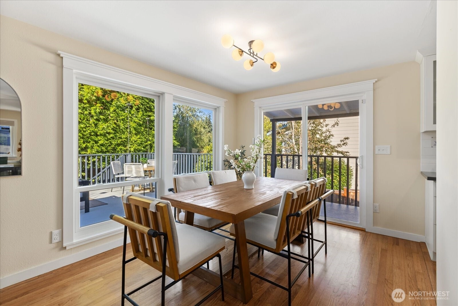 Remodeled and move in ready rambler with basement on a quiet street in Richmond Beach. This 5 bed home features modern kitchen with quartz counters, hardwoods on most of main floor and open dining/living areas. Amazing light/wall of western facing windows with wrap around deck. Main floor primary suite with double closet/walk in, large walk in shower and laundry chute. 2 more beds and remodeled main floor bath. Downstairs is a great family room, tons of storage, 2 more beds and a remodeled bath with cedar sauna! Access to back patio, shed/gardening area, fully fenced/private and beautifully landscaped yard with sprinklers and lighting. Tons of indoor/outdoor entertaining spaces. Minutes to beaches, parks, schools and restaurants.