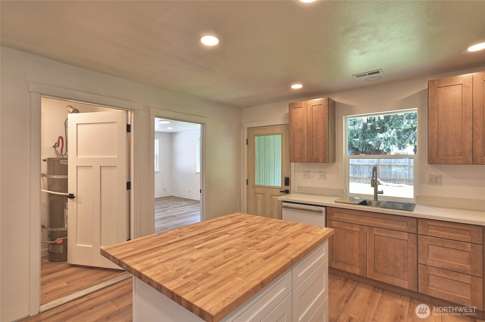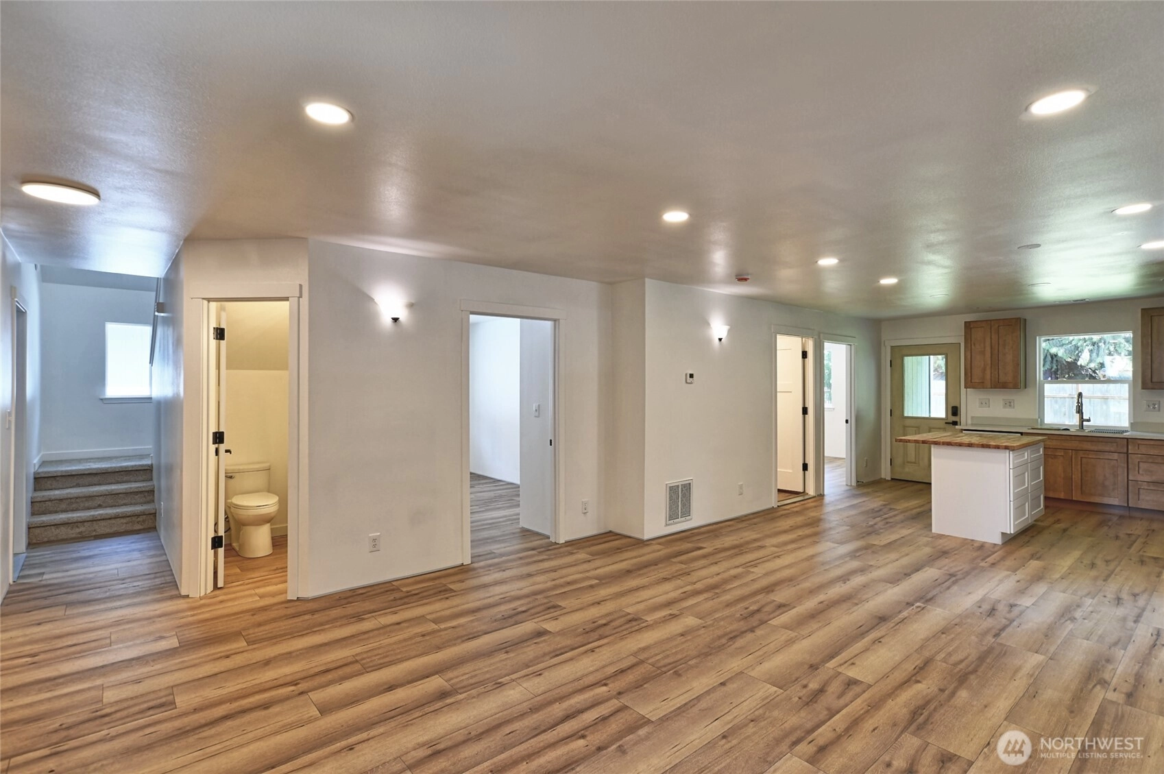 Gorgeous top to bottom remodel with high quality finishes and master workmanship, absolutely better than new. Terrific floorplan w/ 4 large bedrooms, 2.5 baths & a big family room upstairs w/ vaulted ceilings & skylights. Completely new kitchen w/ solid wood cabinets, quartz counters, island w/ butcher block top, beautiful high end appliances. LVP flooring entire main floor, plush carpets upstairs, tasteful decorator paint, all new craftsman doors, white millwork, all new fixtures & hardware. Remodeled baths, new water heater, efficient gas heat. Nice level yard, plenty of parking, large attached garage, all on a quiet dead-end street. Check out the virtual tour for floorplan and room by room pictures! O down USDA loan available!