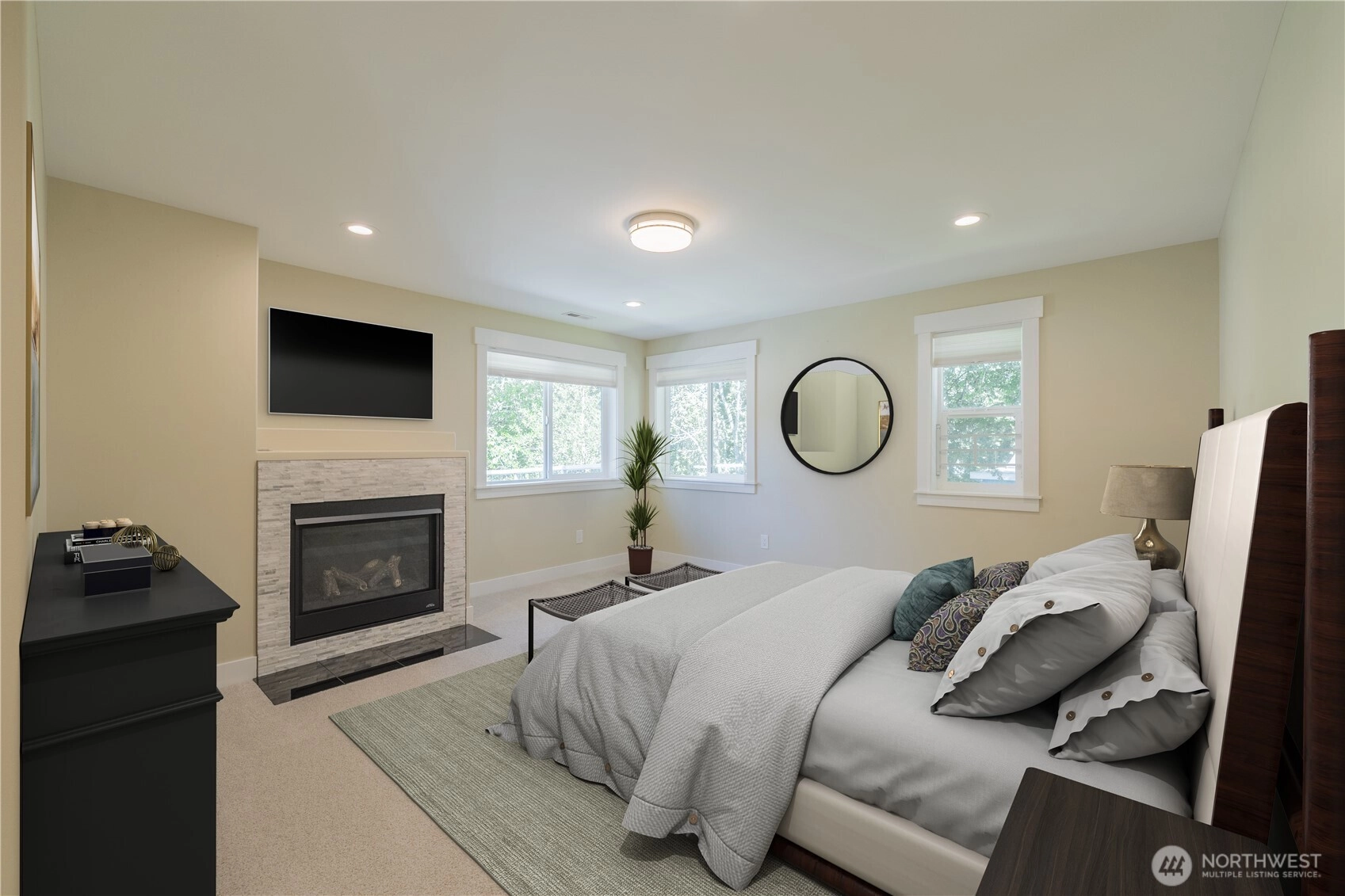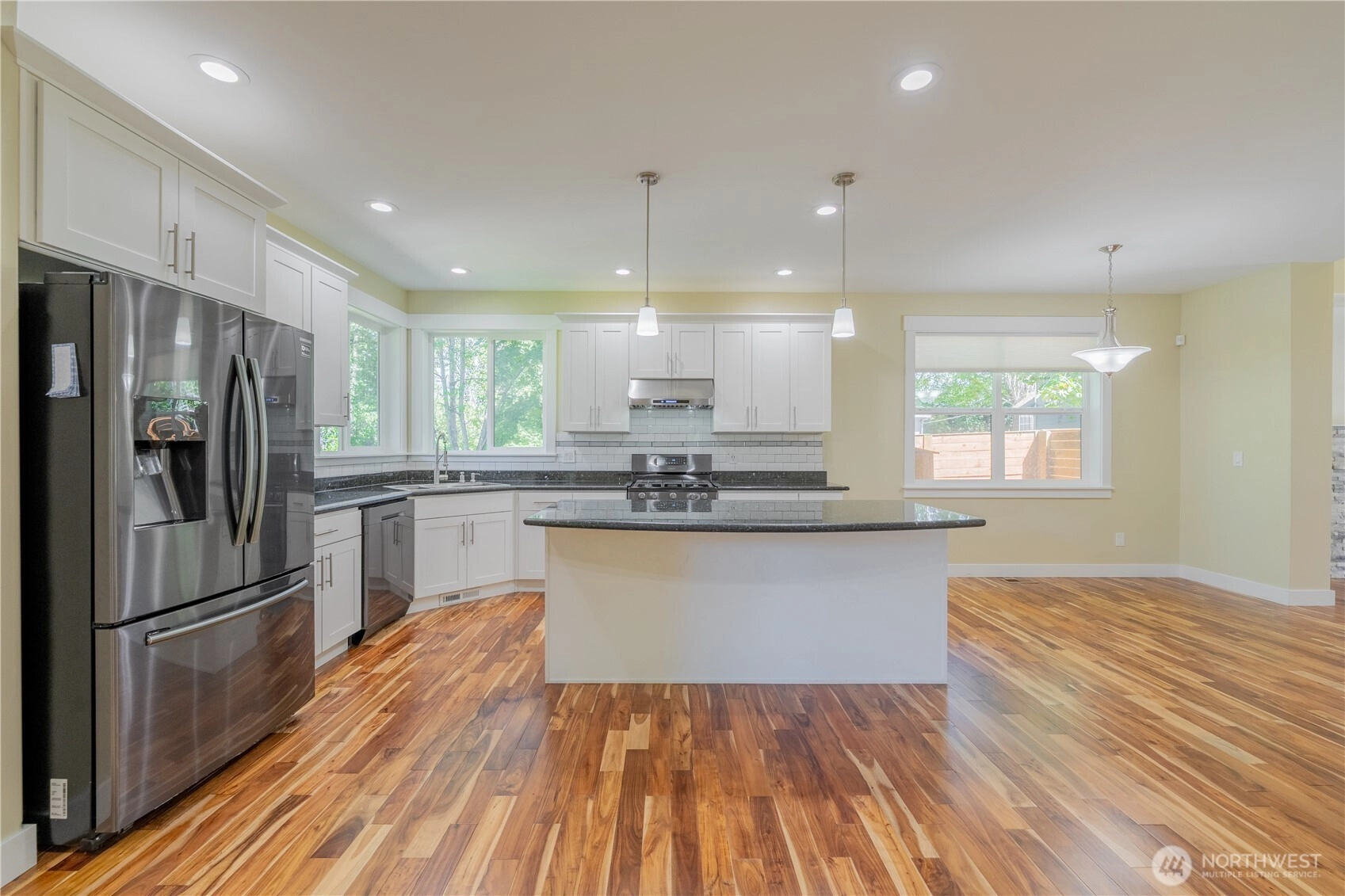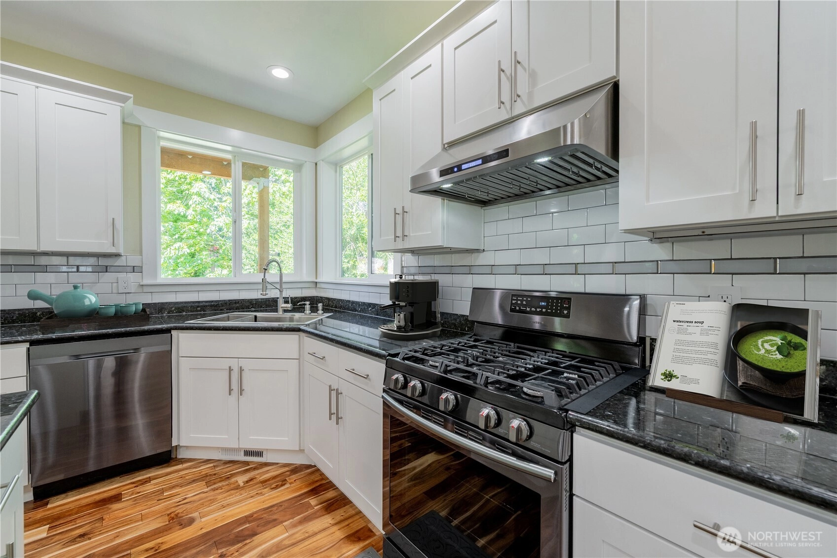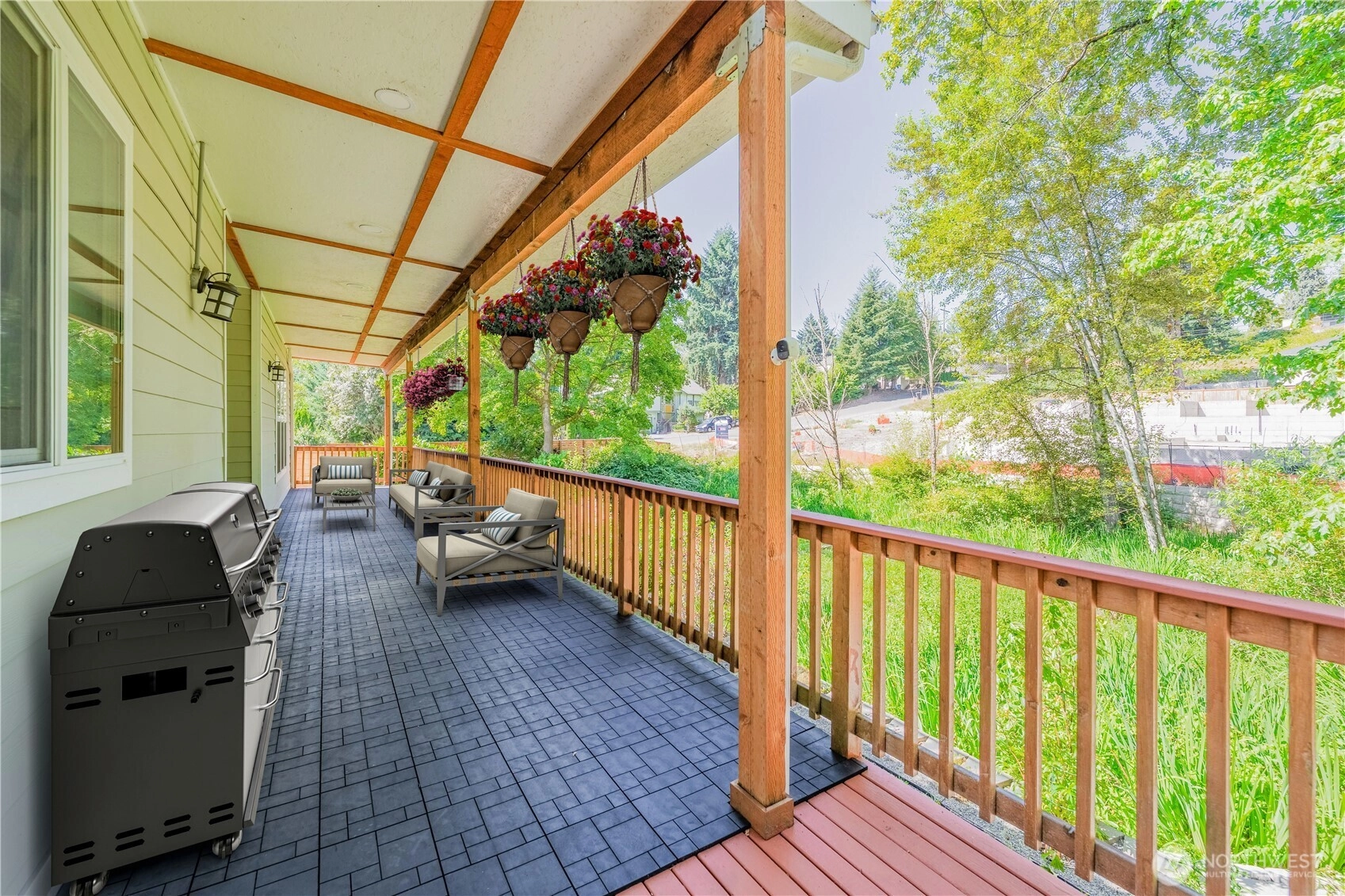 Welcome HOME to this modern, comfort, spacious 5BR, 2.75BA 3,200 sq ft home in a gated enclave of only 4 houses. So NO HOA :). Enjoy an open-concept living w/vaulted ceiling, hardwood floor, a chef's kitchen with SS appliances & a rare main-level bedroom. A huge covered deck for year-round dining/BBQs. Upstair are 4 bedrooms, the bonus den/family room w/balcony acces to another big, long deck. The primary suite features 5-piece bath w/jetted tub, a romantic fireplace and a huge walk-in closet. Fenced yard backing to a greenbelt for an ideal outdoor oasis. Home comes with A/C, tankless hot water heater & 2-car garage. Prime location less than 5 minutes to SeaTac Airport, Southcenter, light rail station. Hurry, this one won't last long!