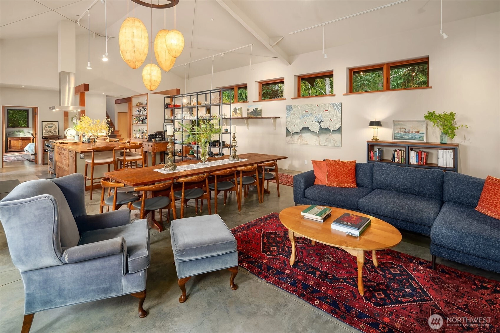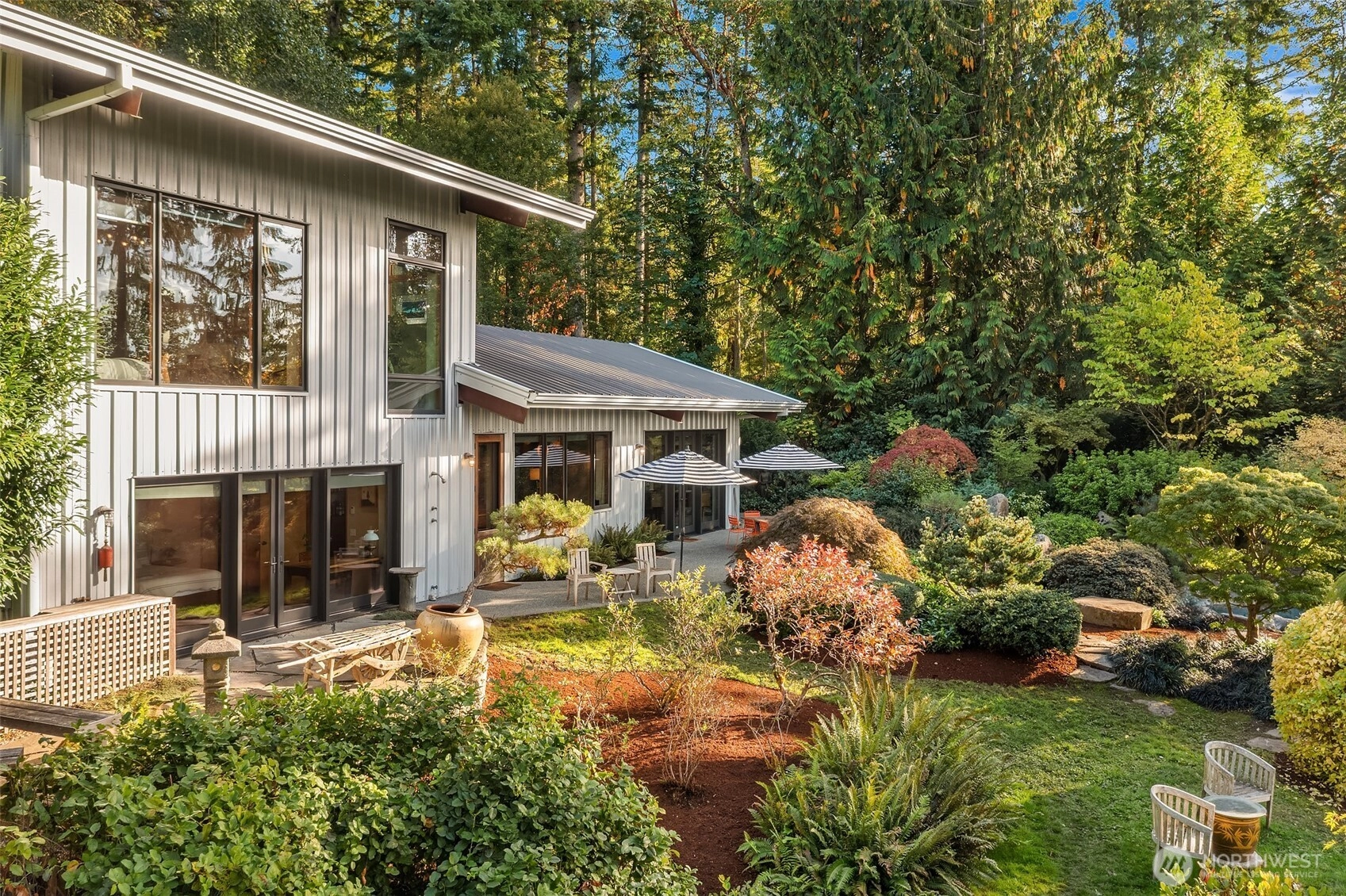 A Northwest contemporary where warmth meets modern craft, wrapped in cedar, concrete, and handmade hardwoods. Two acres unfold in lush lawns and gardens, designed by famed designer Terry Welch. Layers of Japanese maples and sculpted evergreens create extraordinary privacy and a living frame for Colvos Passage and the majestic Olympic Mountains. At the heart of it all, a maple-fringed saltwater rock pool shimmers beside generous terraces for sunlit lunches and starlit dinners. Inside, generous windows and vaulted ceilings gather the views around a true chef’s kitchen—owned by a well-known James Beard Award–winning chef—where daily cooking feels like a celebration. Available for the first time, it's a livable work of art on Colvos Passage.