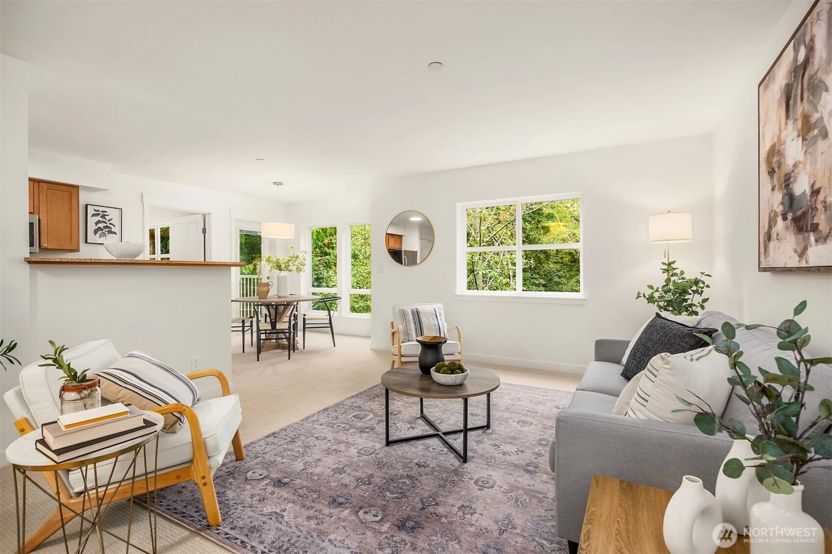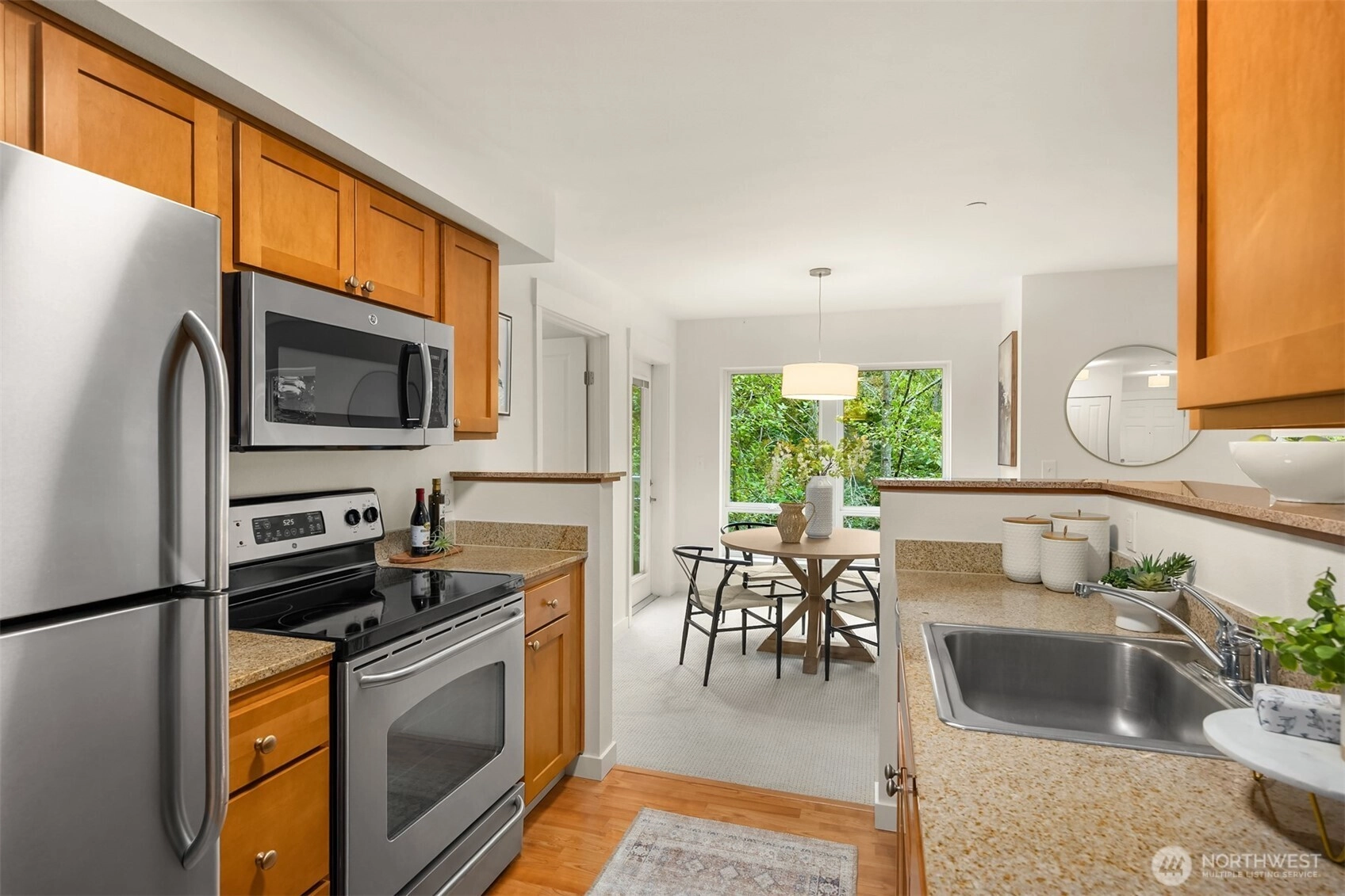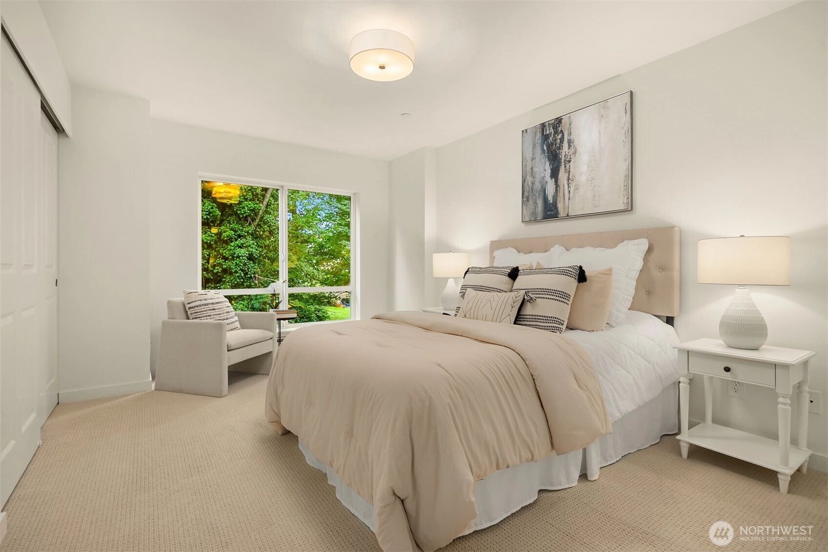 Rare 2-bedroom condo at Island Crossings! Northwest corner location brings afternoon light and peaceful views over 2+ acres of forest bordering 22-acre Sakai Park. Freshly painted with new carpet and lighting, it offers an open floor plan ideal for daily living and entertaining, plus a balcony to enjoy the tranquil outlook. The bedrooms feature double closets, and west-facing windows. Granite counters, stainless appliances, and proximity to shops, transit & island amenities complete the package.