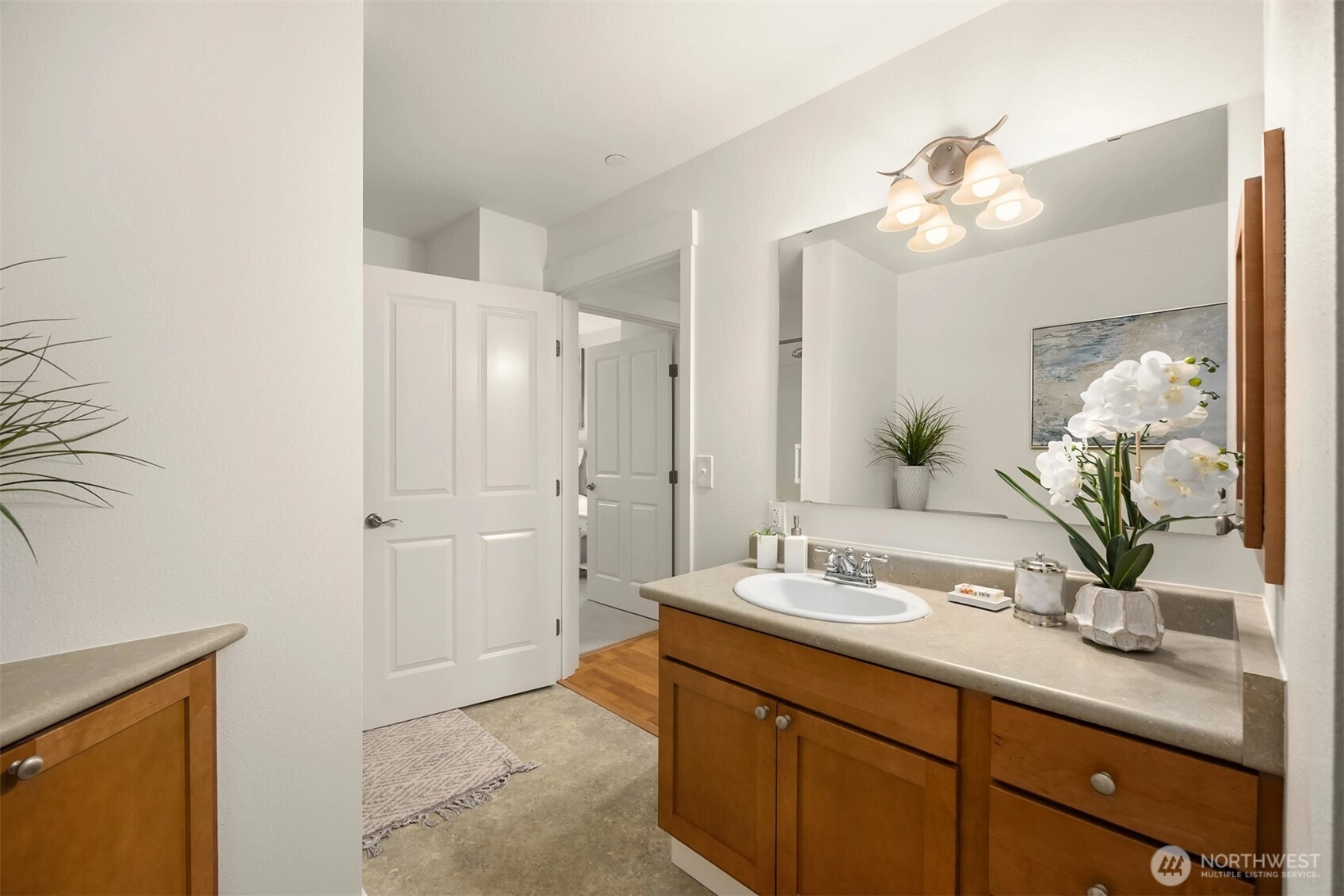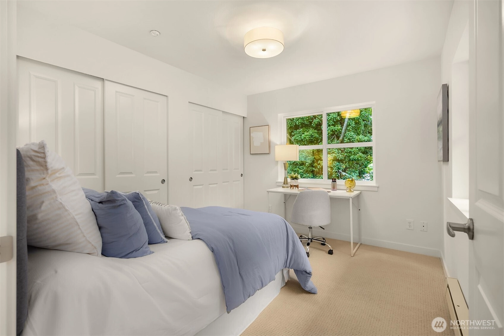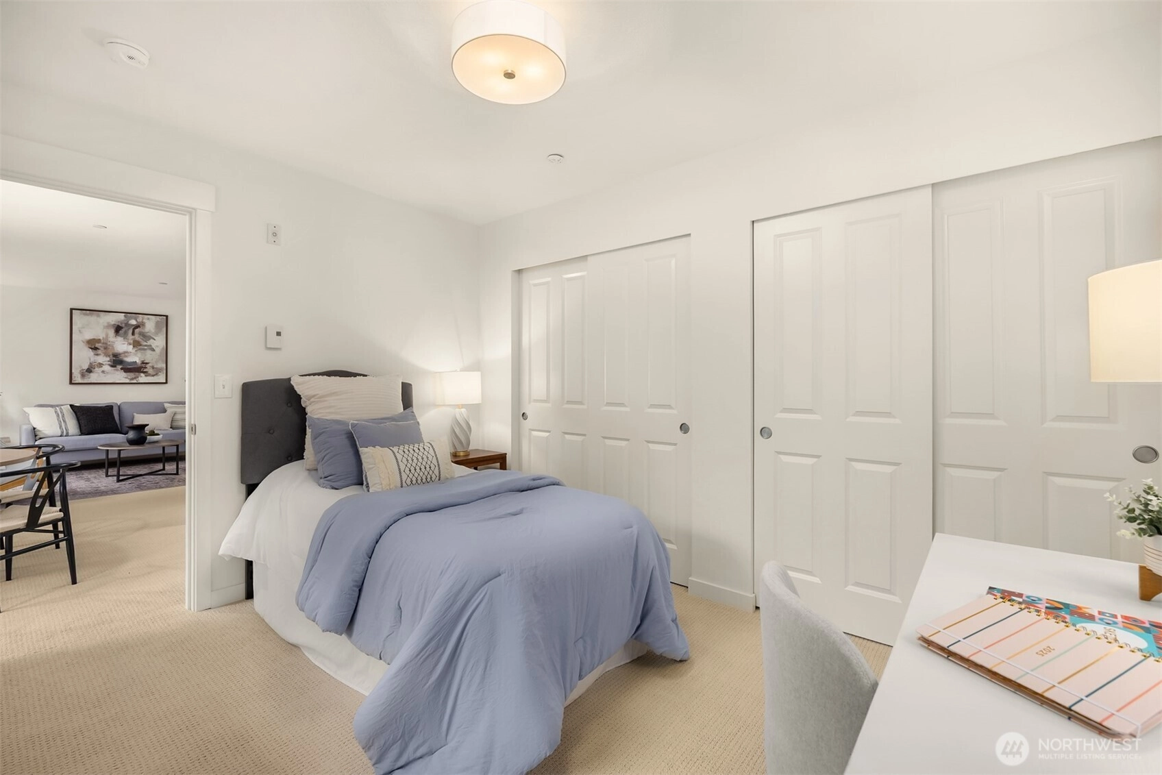 Rare 2-bedroom condo at Island Crossings! Northwest corner location brings afternoon light and peaceful views over 2+ acres of forest bordering 22-acre Sakai Park. Freshly painted with new carpet and lighting, it offers an open floor plan ideal for daily living and entertaining, plus a balcony to enjoy the tranquil outlook. The bedrooms feature double closets, and west-facing windows. Granite counters, stainless appliances, and proximity to shops, transit & island amenities complete the package.