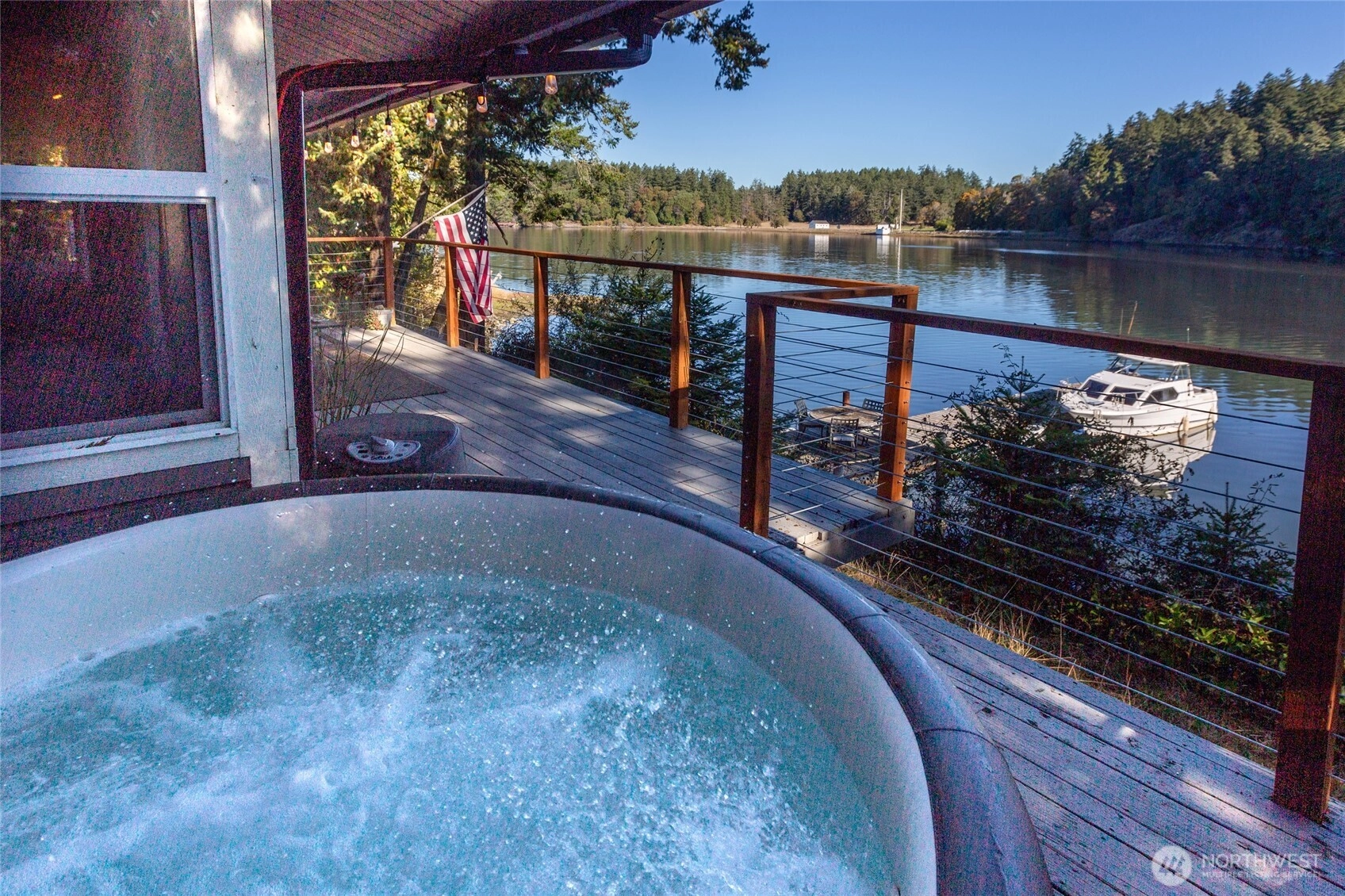 Beautifully remodeled waterfront retreat on Garrison Bay! This 1,248 sq ft home offers 2 bedrooms, 2 baths, and an office, on a private .75-acre lot with ~130 ft of low-bank water frontage with tideland rights. Enjoy your own inner harbor private dock, a sunken firepit with plenty of seating, and a deck perfect for enjoying views of the bay and English Camp. This property also features a charming detached guest quarters with a murphy bed, a greenhouse, fruit trees, chicken coop, pump house, RV parking with power hookup, and an amazing treehouse among the tall cedars. Perfect for year-round living or a peaceful island getaway surrounded by nature and bay views.