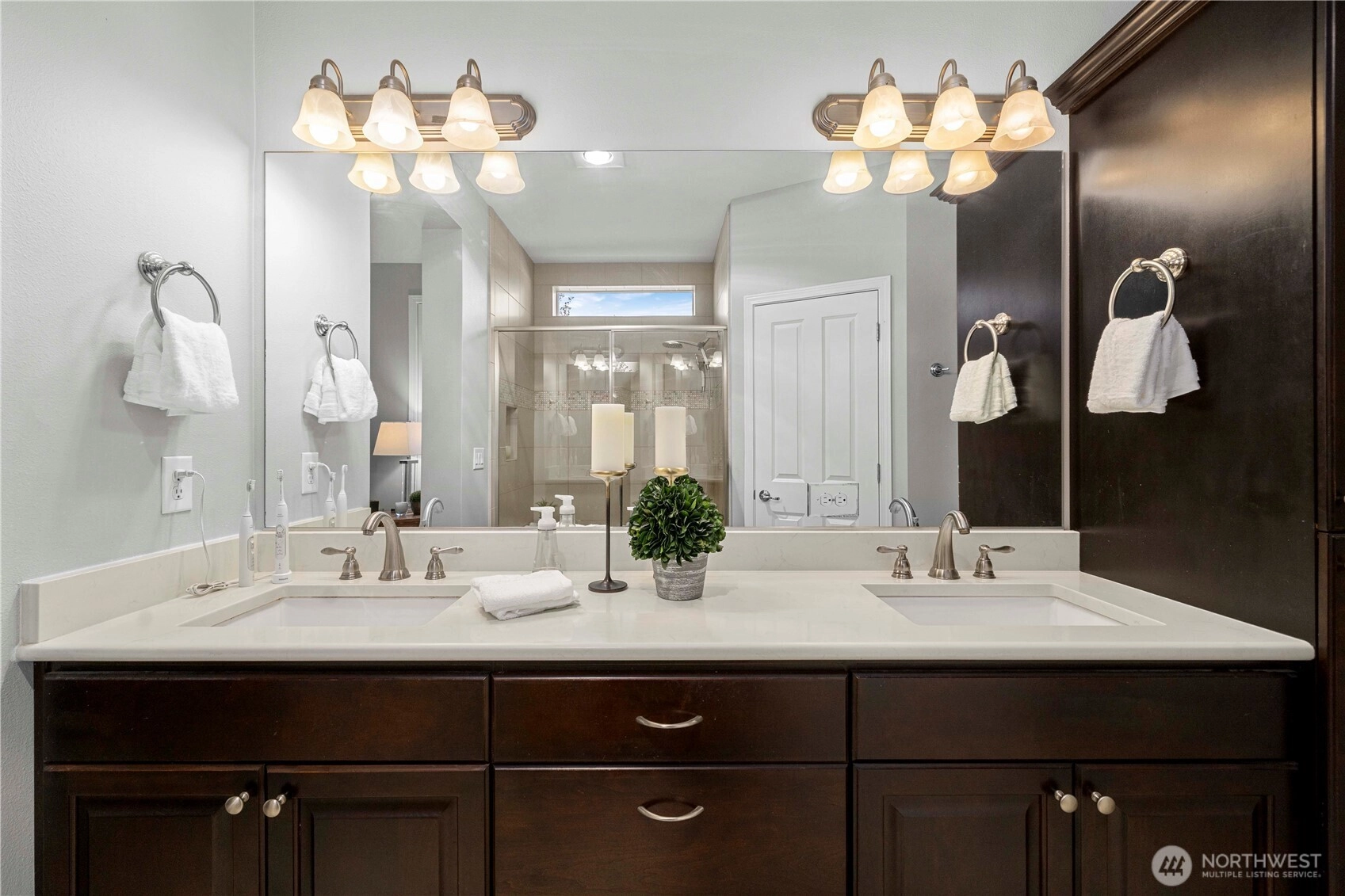 Resort 55+ living at Trilogy at Tehaleh! Stunning & beautifully upgraded "Refresh" on a premier, corner lot w/ an abundance of privacy. This meticulously maintained, turn-key home offers expansive living spaces & an abundance of windows to take advantage of the views. Timeless kitchen w/ Quartz & top tier appliances. Two statement fireplaces & high-end Plantation shutters throughout. Spacious covered Trex deck w/ stone fireplace & Shoji privacy screens overlooks the tranquil & low maintenance backyard featuring a water feature, extensive hardscape & an idyllic seating area to bask in your own private sanctuary! Short walk to the Lodge/pool/fitness/restaurant/bar/Pickleball/trails/Post & Pour Bistro/retail/trails. $9500 Club fee is waived!