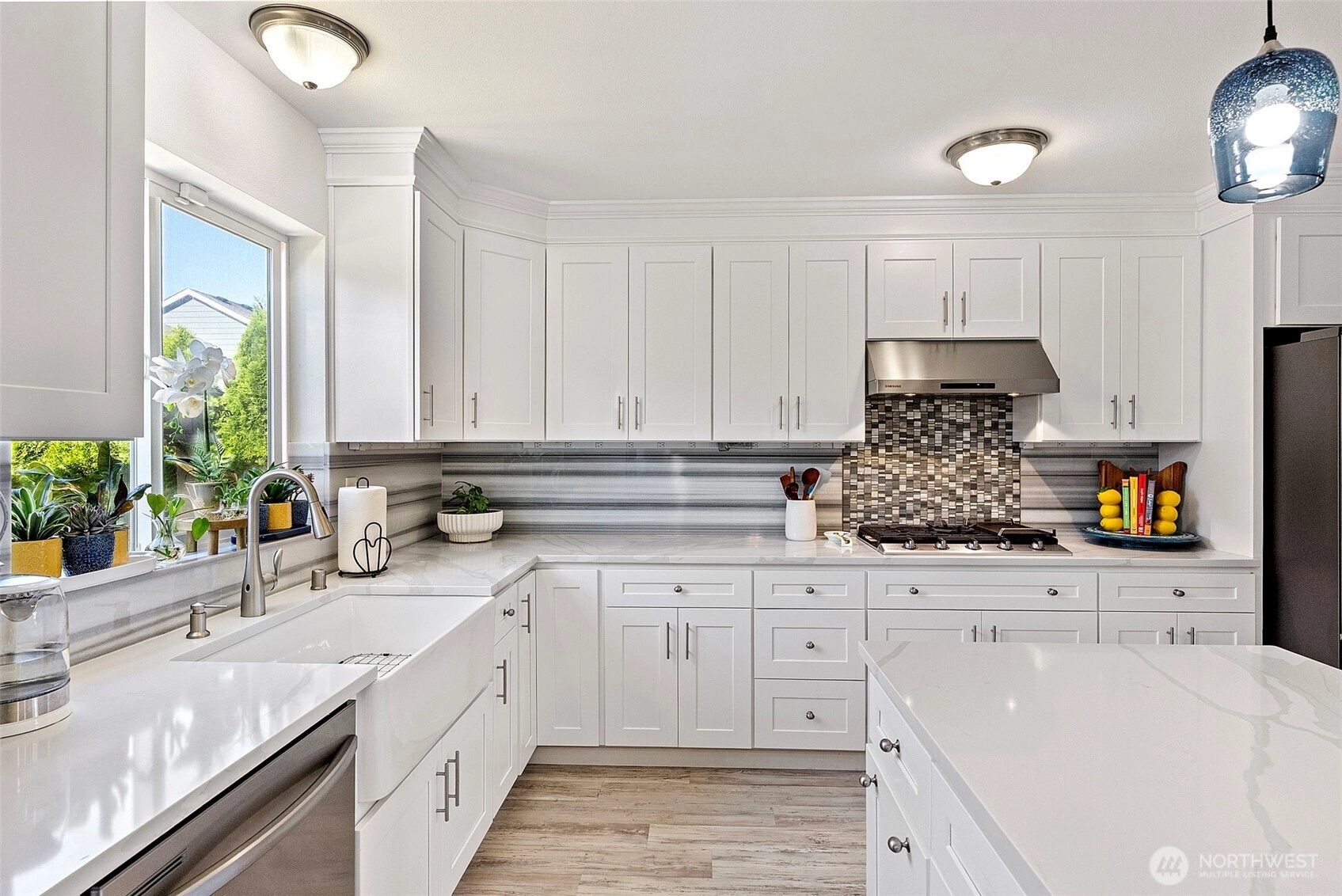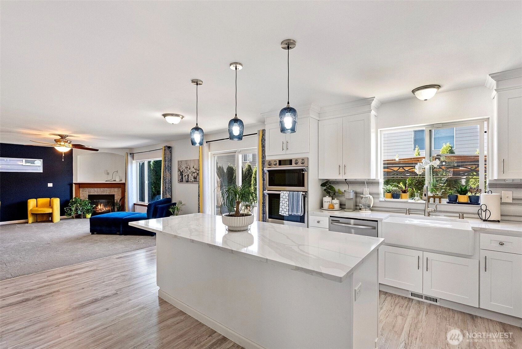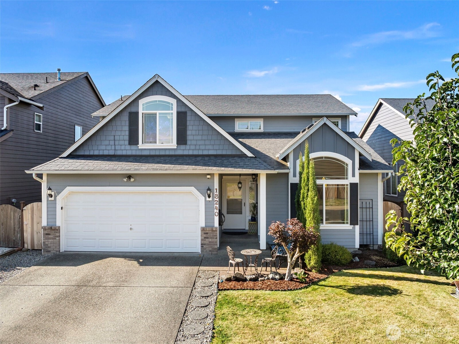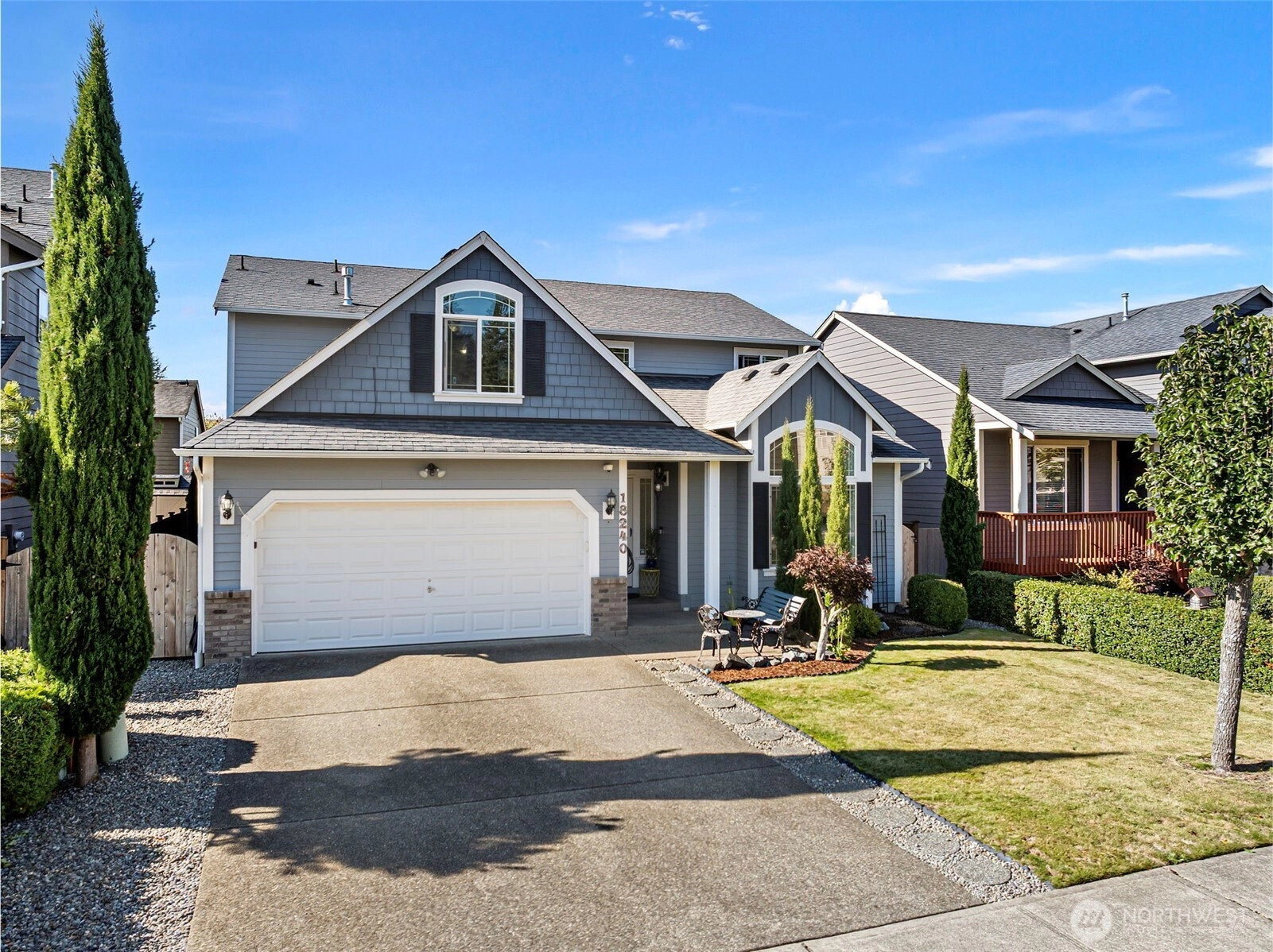 Come home to this beautifully laid-out Frederickson Estates charmer. Arches and vaulted ceilings greet you in the entry and living/dining rooms. The upscale and updated kitchen is a stunner, from the apron-front sink to the quartz countertops, and with room at the island for every culinary need. The kitchen flows through to a comfortable family room with gas fireplace. Upstairs the primary suite enjoys an en suite bath and walk-in closet. Three additional bedrooms and a full bath ensure room for everyone. A spacious upstairs landing and bonus room provide ample options for work-from-home or entertainment. Don't miss the fully-fenced back patio. As fall chill sets in, remember summers get hot, and you'll love our AC! Come see yourself here.
