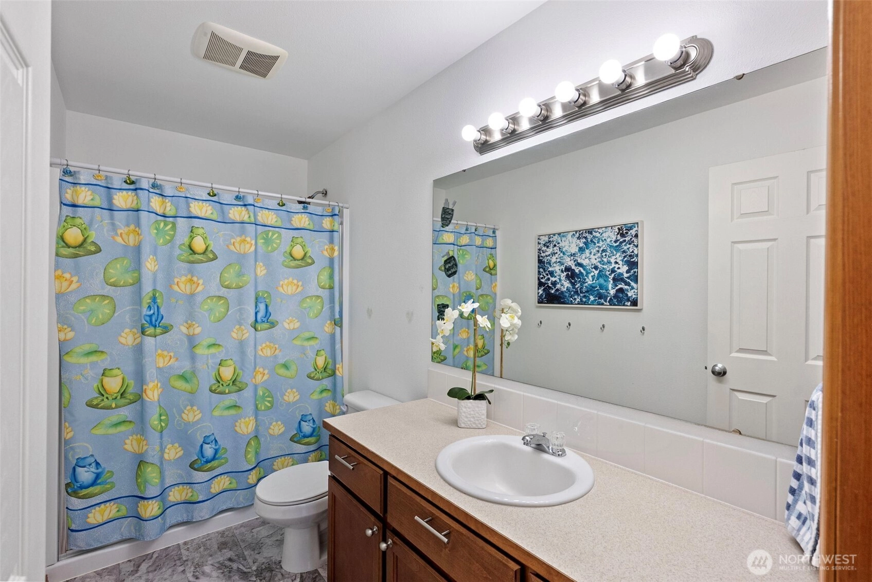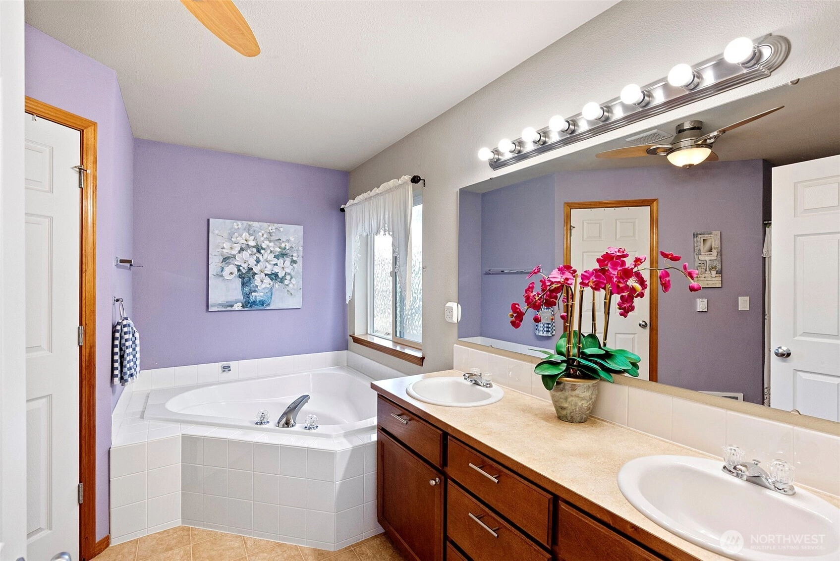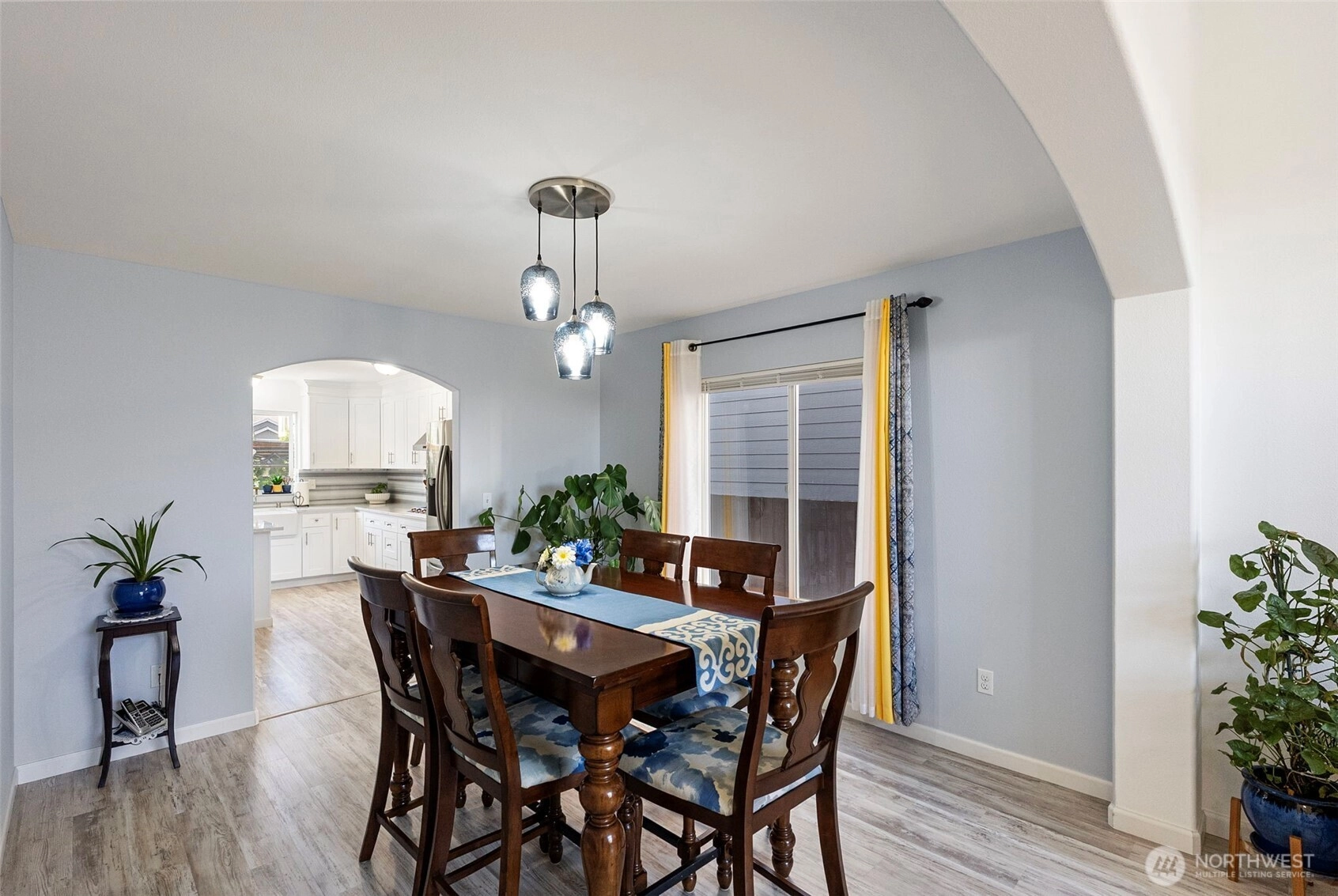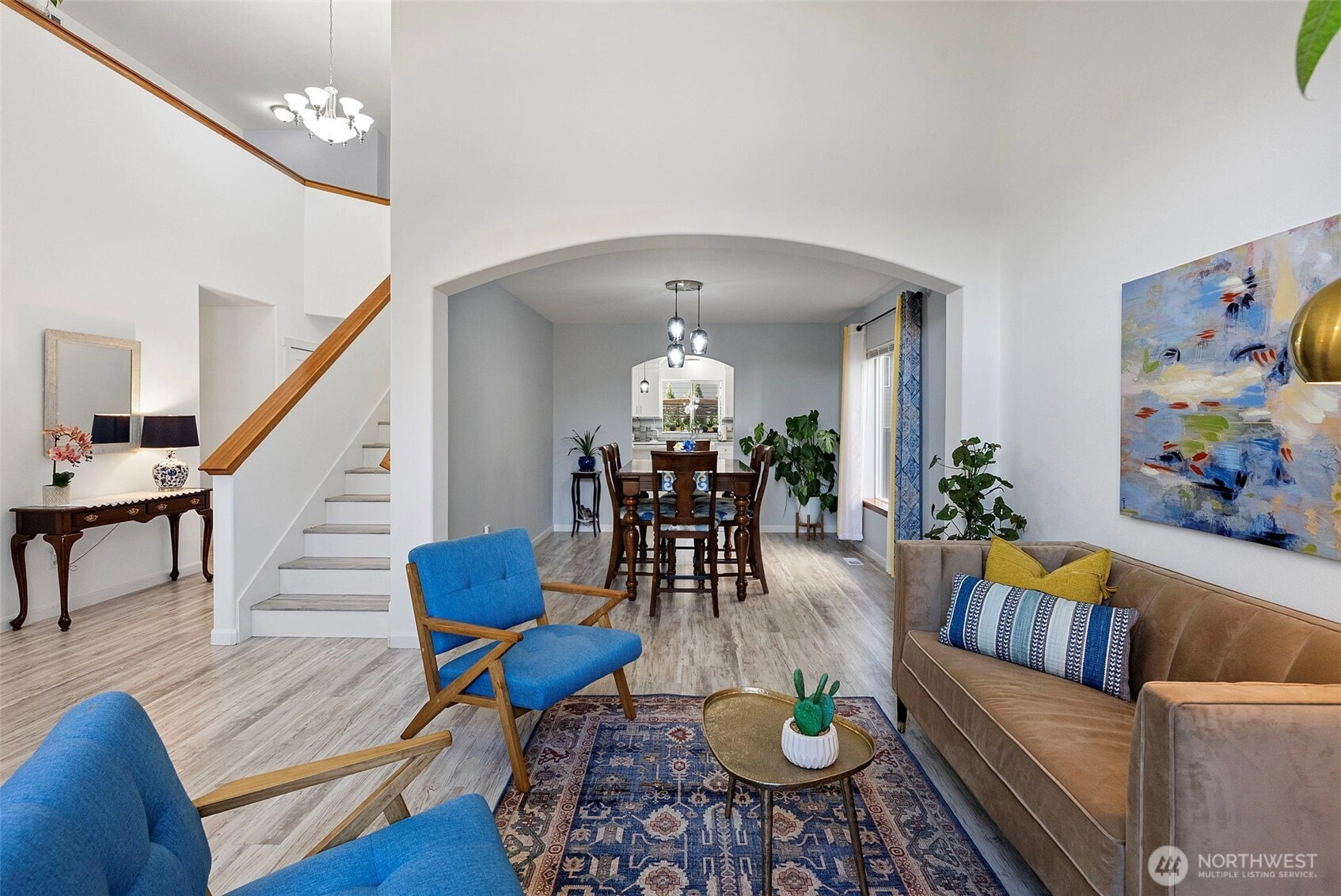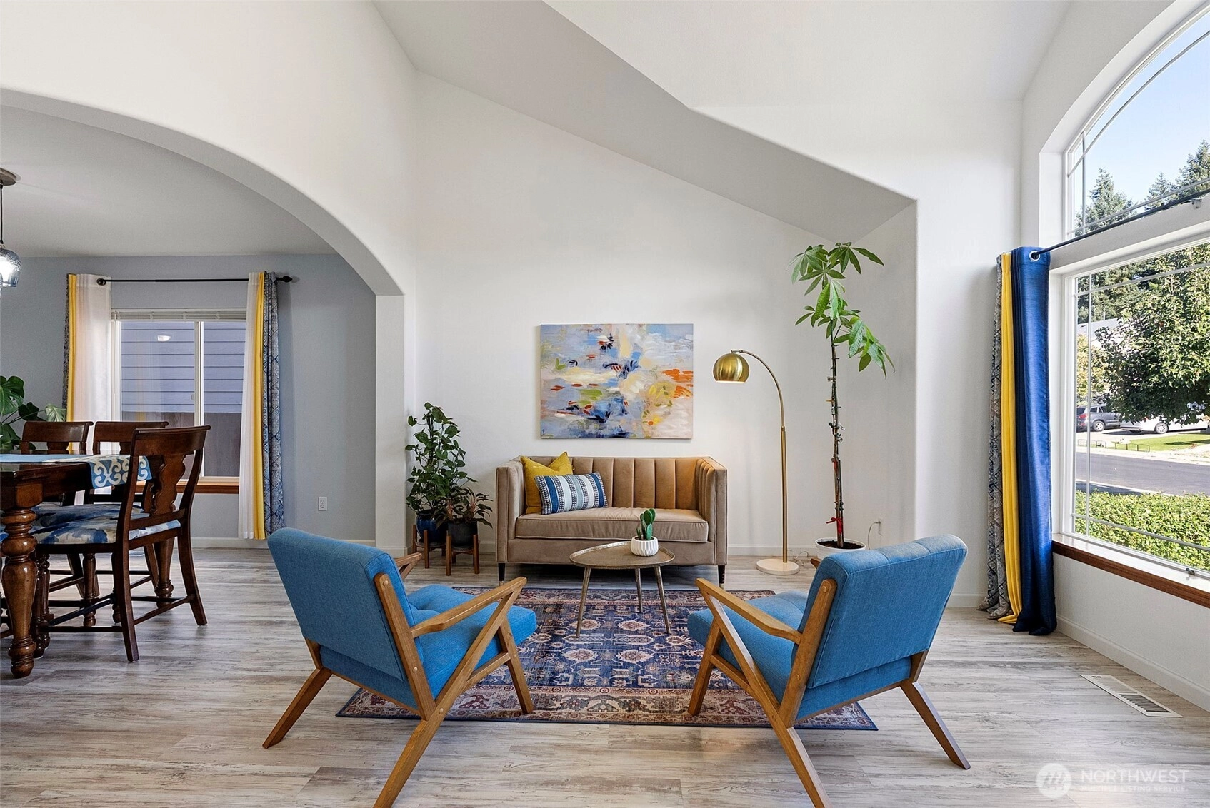 Come home to this beautifully laid-out Frederickson Estates charmer. Arches and vaulted ceilings greet you in the entry and living/dining rooms. The upscale and updated kitchen is a stunner, from the apron-front sink to the quartz countertops, and with room at the island for every culinary need. The kitchen flows through to a comfortable family room with gas fireplace. Upstairs the primary suite enjoys an en suite bath and walk-in closet. Three additional bedrooms and a full bath ensure room for everyone. A spacious upstairs landing and bonus room provide ample options for work-from-home or entertainment. Don't miss the fully-fenced back patio. As fall chill sets in, remember summers get hot, and you'll love our AC! Come see yourself here.