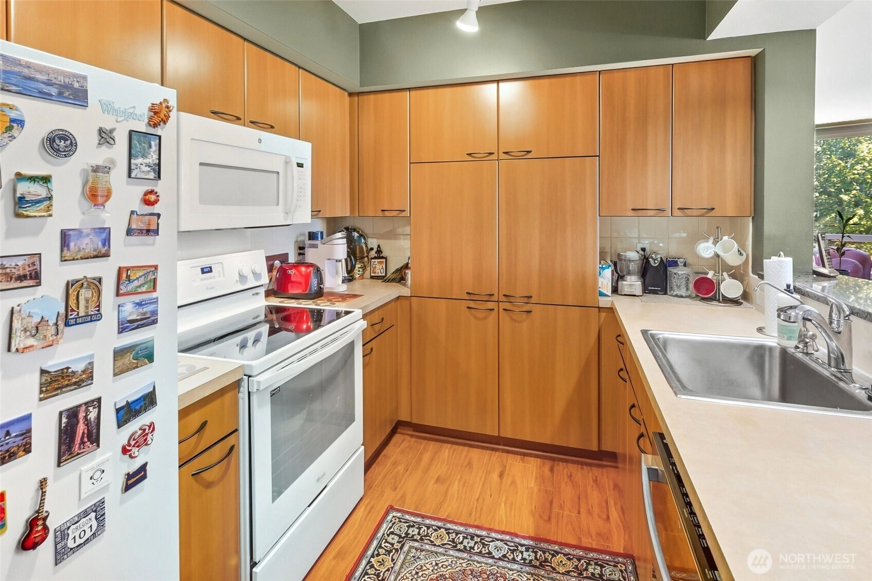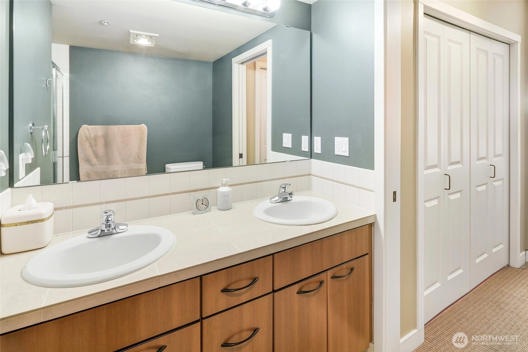 Beautiful and well maintained unit at the sought after Adelaide Condominiums. This light-filled, Southeast corner condo offers an impressive 1,200+ square feet! Lots of living space, featuring large two bedrooms, including a primary with an ensuite bath! Updated kitchen with large pantry and cabinet space. Private deck with water views, perfect for entertaining or enjoying the sunsets! Situated on the fifth floor of a desirable West Seattle building, this home combines urban convenience with a tranquil feel. Lots of storage in this unit! Tandem two parking spaces dedicated for this unit. Complex features gym, sauna, recreation room, and an amazing roof top deck with gorgeous Puget Sound Views! Do not miss this one!