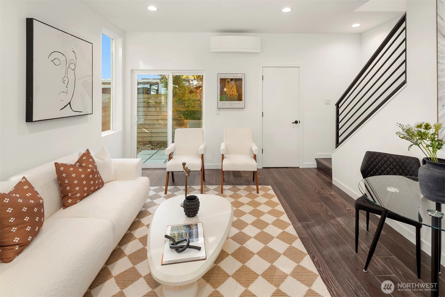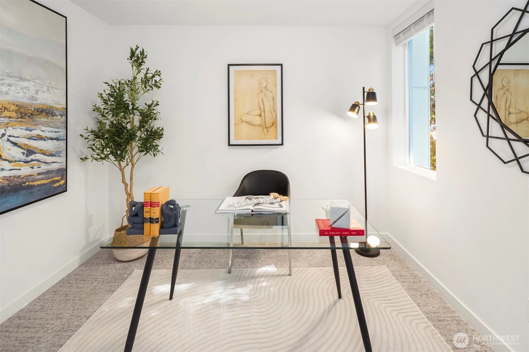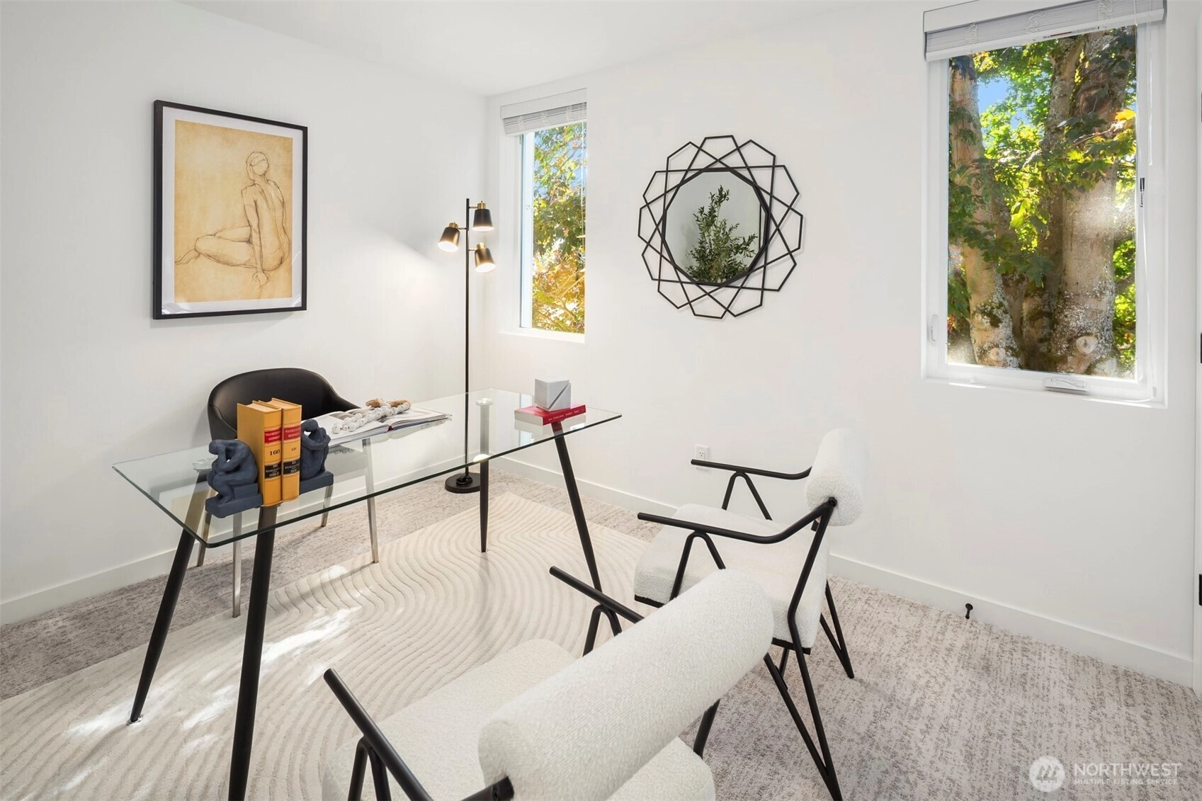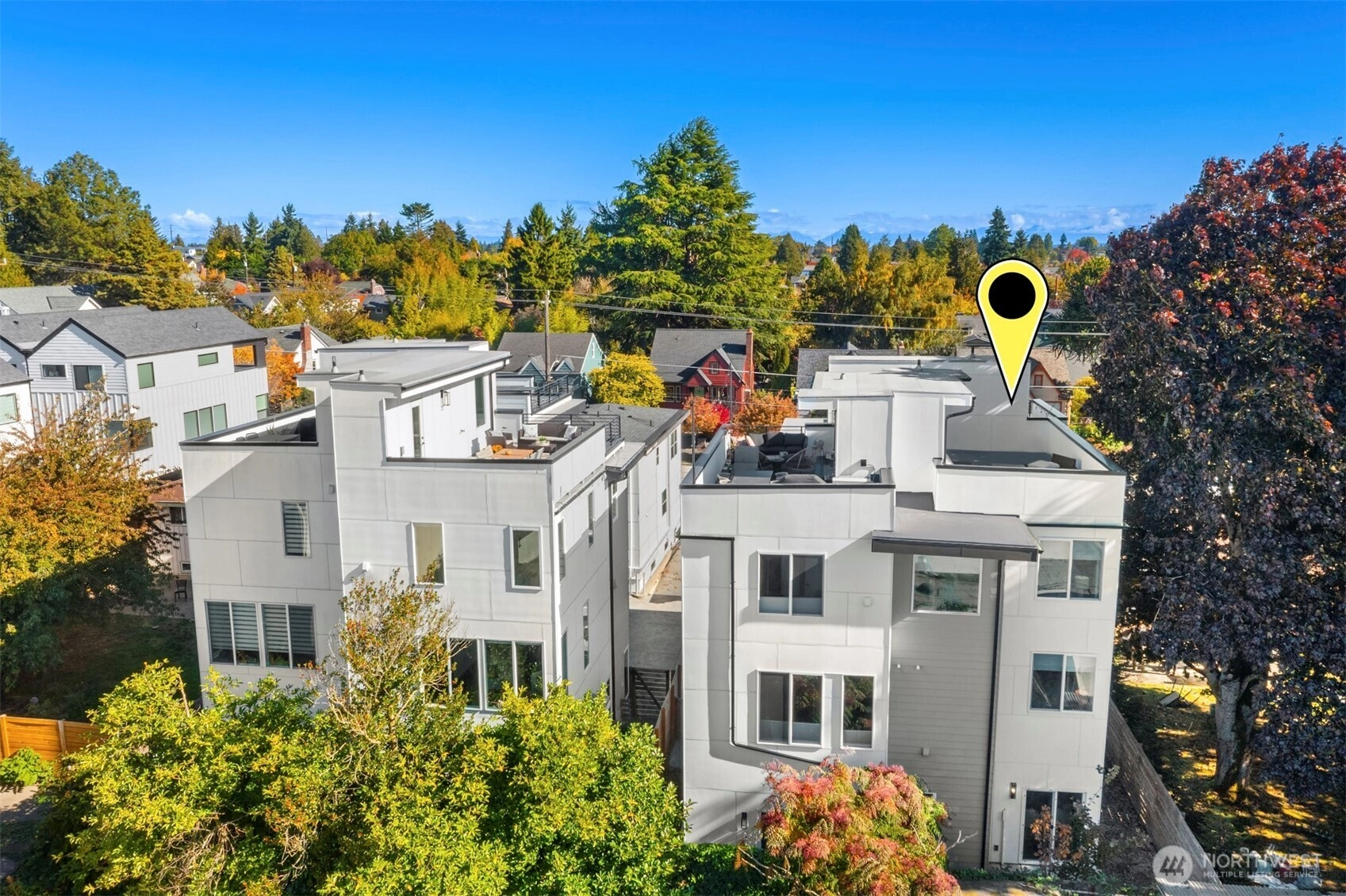 This stylish, modern townhome perfectly combines elegance and practicality. Entrance invites into an open floor plan featuring tall ceilings and abundant natural light. The kitchen boasts updated stainless steel appliances, a gas range stove, and a large island ideal for cooking and entertaining. Ample dining opens into a fenced yard. The second floor features a full bathroom and two bedrooms, either of which can easily be designated as a home office too. The primary bedroom on the third floor is spacious, featuring a walk-in closet and its own ensuite. Private rooftop deck for BBQ evenings, plenty of storage on every floor, a designated parking spot, and the benefit of no HOA fees.