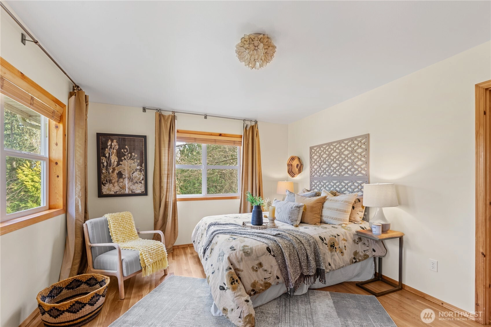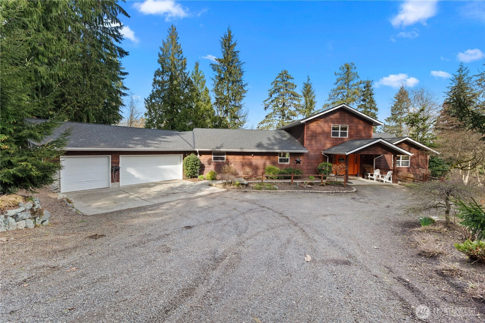 Set on nearly five private acres, this residence strikes a rare balance of elegance, style, and livable comfort. Soaring ceilings and walls of glass bathe the interiors in natural light, while expansive living spaces flow seamlessly across the main level. Enjoy over 5,000 square feet of flexible design, featuring primary suites on both floors, an airy artist loft or office, a home gym, and multiple bonus spaces, including a lower-level workshop or creative studio. Outside, meandering stone paths lead through lush gardens filled with fragrant blooms and mature trees. More than a home, this is a peaceful retreat crafted for living fully, creating freely, and gathering beautifully.
