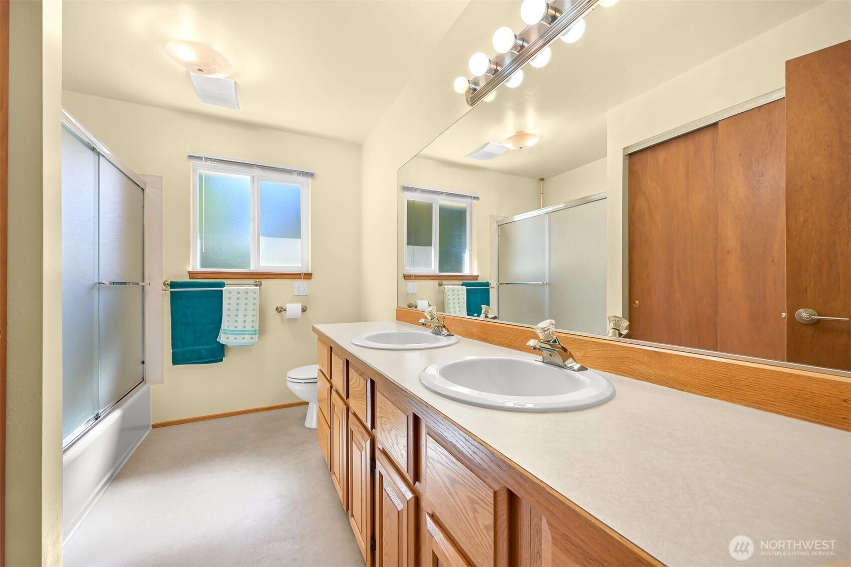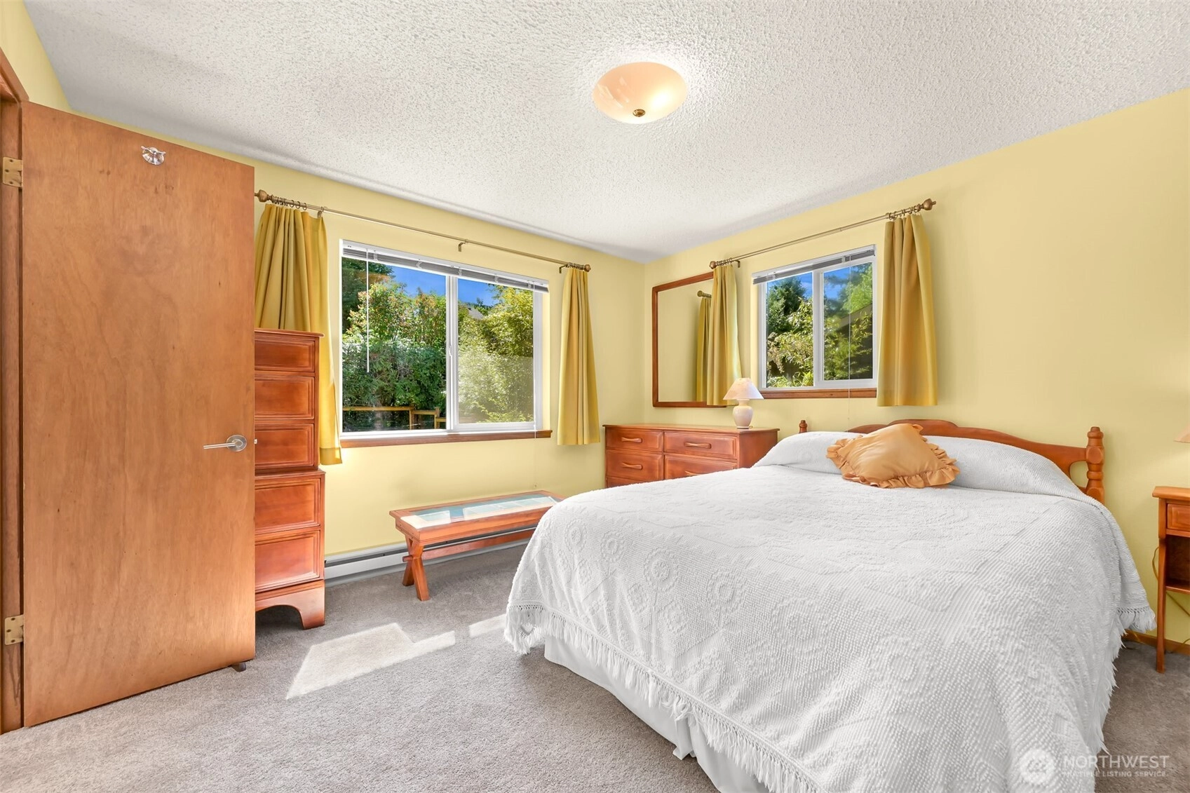 Charming split-level 5 bed, 2.5-bath home in the heart of Edgemoor! Located on a quiet street near Fairhaven Park, trails & Chuckanut Dr. Off market for 37 years! Kitchen has been updated into an open-concept, SS appliances, custom backsplash & induction range. Living room has cozy gas fireplace & plenty of light. 3 beds upstairs w/wood floors + primary ensuite & full bath. Downstairs has large primary suite, a bedroom, 3/4 bath, bonus computer room & family room w/gas fireplace. Private, low-maintenance fully fenced backyard w/large Trex patio. French drains in front yard. Storage in garage & under deck. Convenient access to shopping, medical & I-5. Move-in ready! Entire property is beautifully landscaped—plus solar panels!