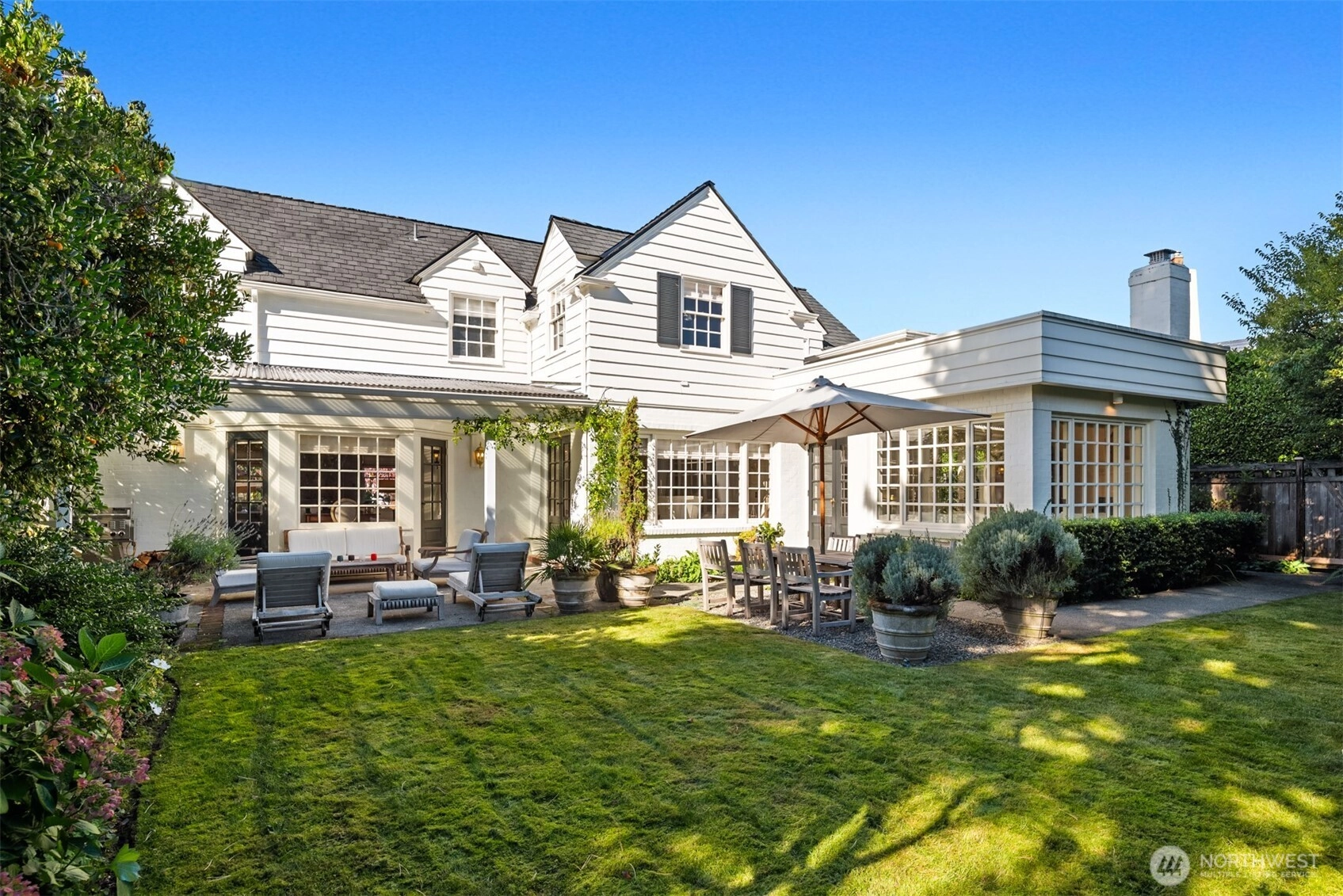 Broadmoor traditional by William Bain exudes timeless elegance. Circular floorplan creates seamless connection w/ gracious living room & stylish dining room opening outdoors. French doors lead to a partially covered patio framed by manicured gardens—a serene setting for relaxation or entertaining. Graceful millwork & oak floors set a sophisticated tone. Kitchen blends charm & function w/ adjoining family room. Upstairs, 4 character filled bedrooms. Primary suite w/ dual vanities, deep soaking tub & exquisite wardrobes. Lower level offers stylish lounge w/ fireplace & wet bar, bedroom, 3/4 bath & spacious laundry/gift-wrap room. Broadmoor offers privacy, security & easy access to charming shops, restaurants & scenic parks.