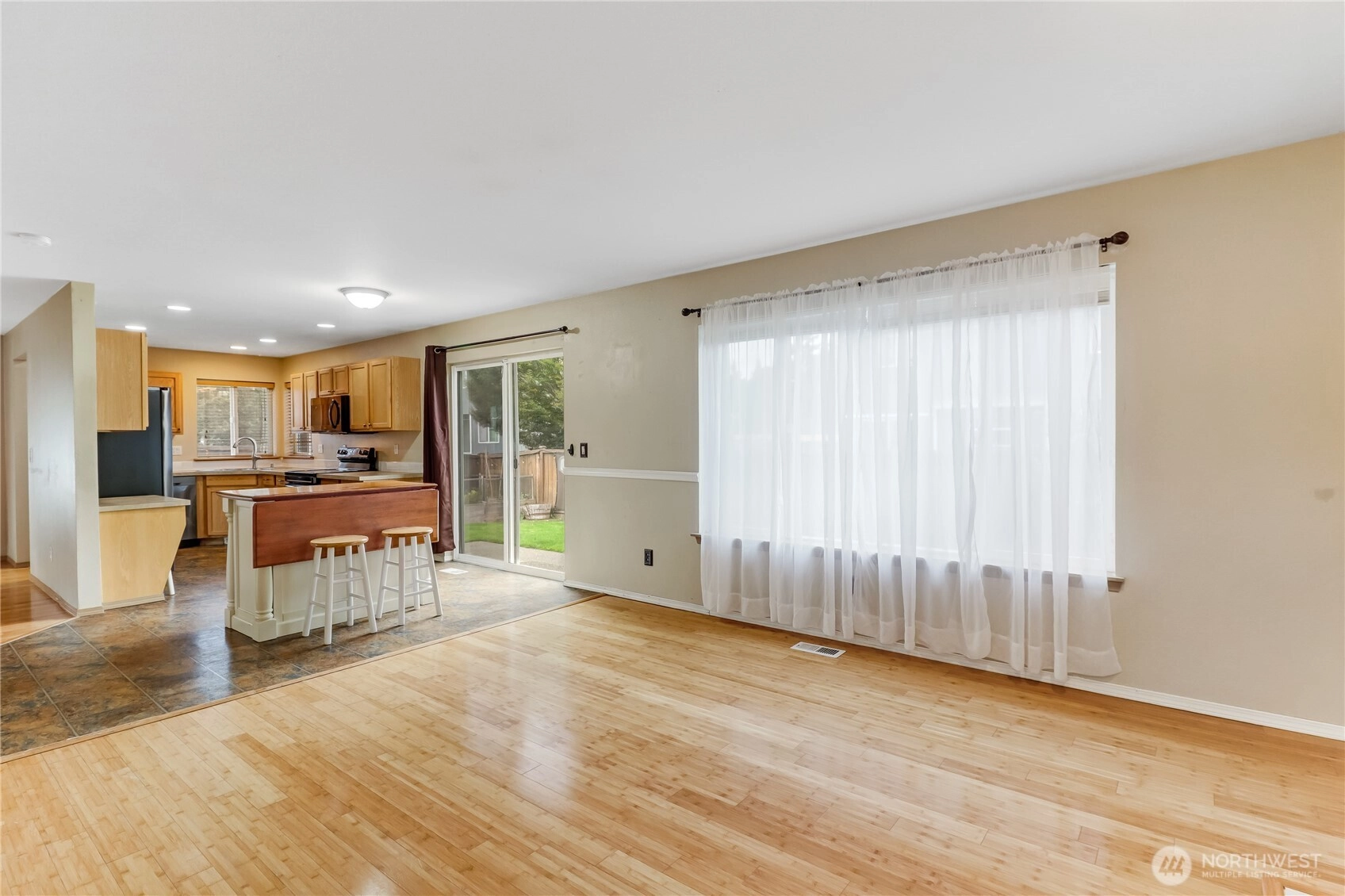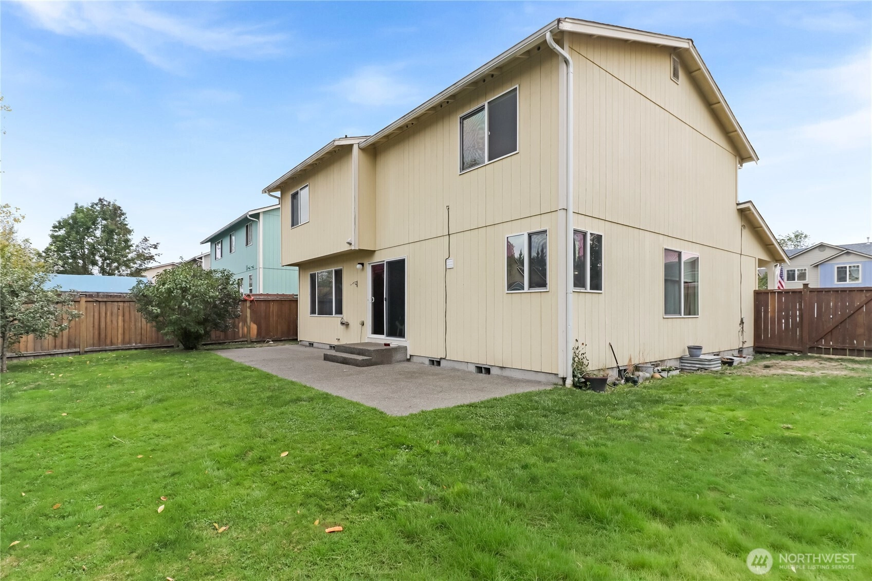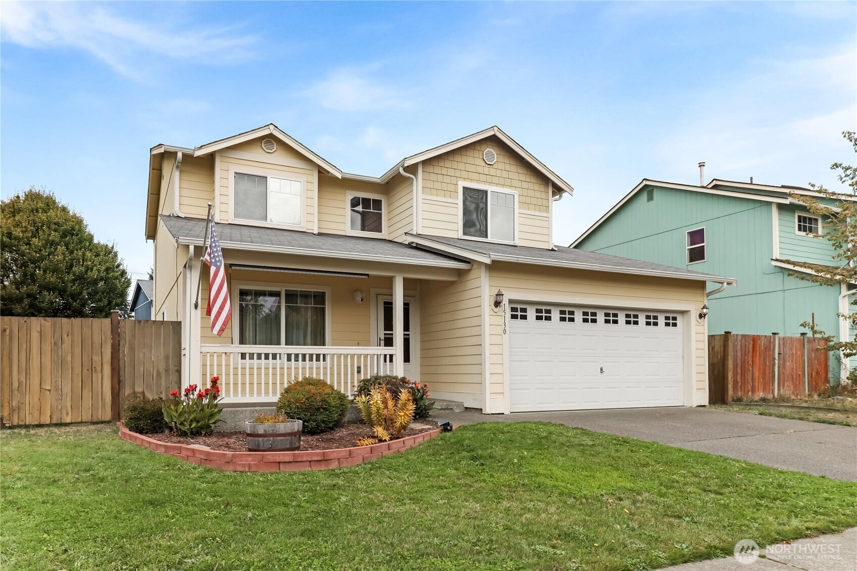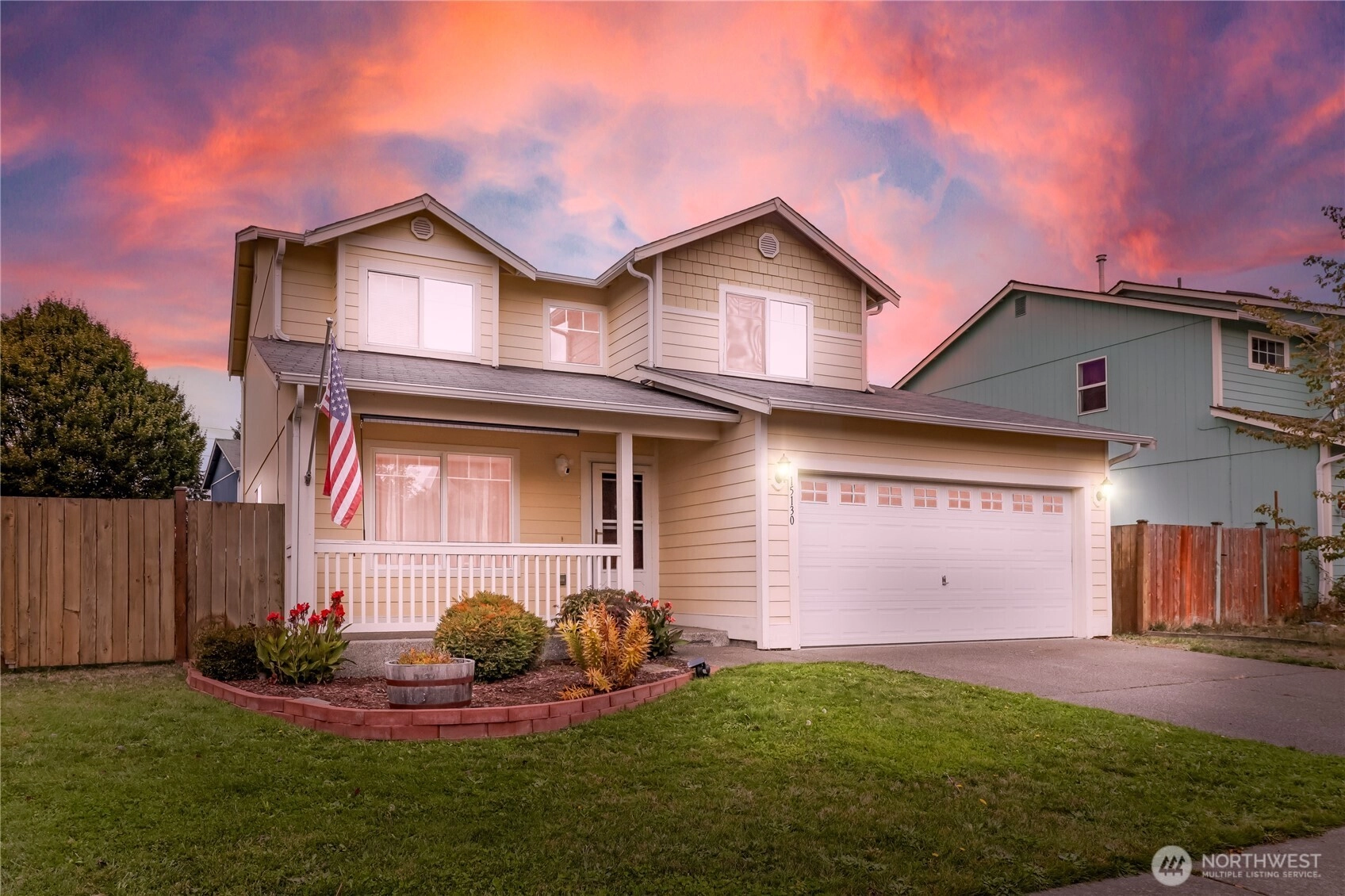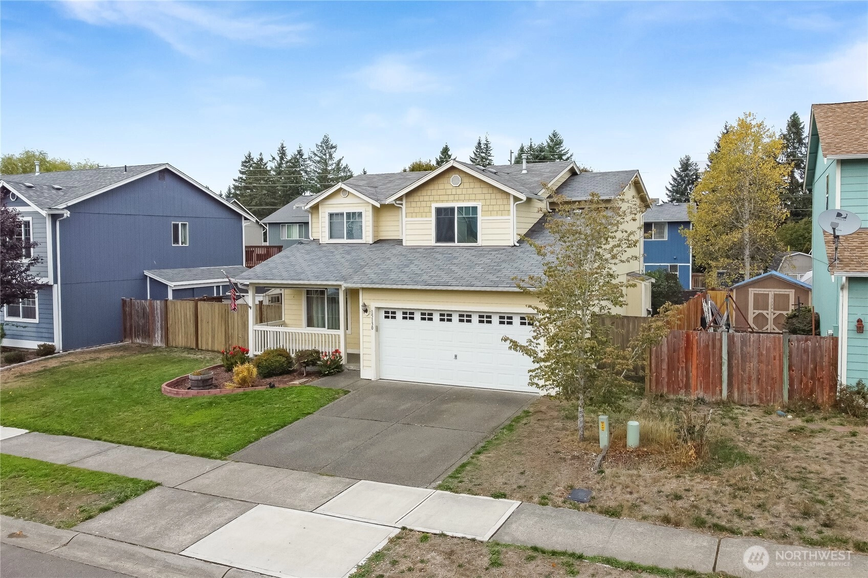 Discover the perfect blend of comfort, style, and space in this beautifully maintained home, ideally located in the heart of Yelm. The landscaped entry welcomes you into an inviting open floor plan with generous living and dining areas. The kitchen offers a walk-in pantry, corner sink, and dining nook—ideal for daily living or entertaining. The primary suite features vaulted ceilings and a private bath, while three additional bedrooms and a full bath complete the upstairs. Stay comfortable year-round with a heat pump and gas fireplace. Step outside to a fully fenced backyard with an extended patio—perfect for summer barbecues, playtime, or relaxing evenings. Close to schools, parks, entertainment and shopping. Easy commute to JBLM!